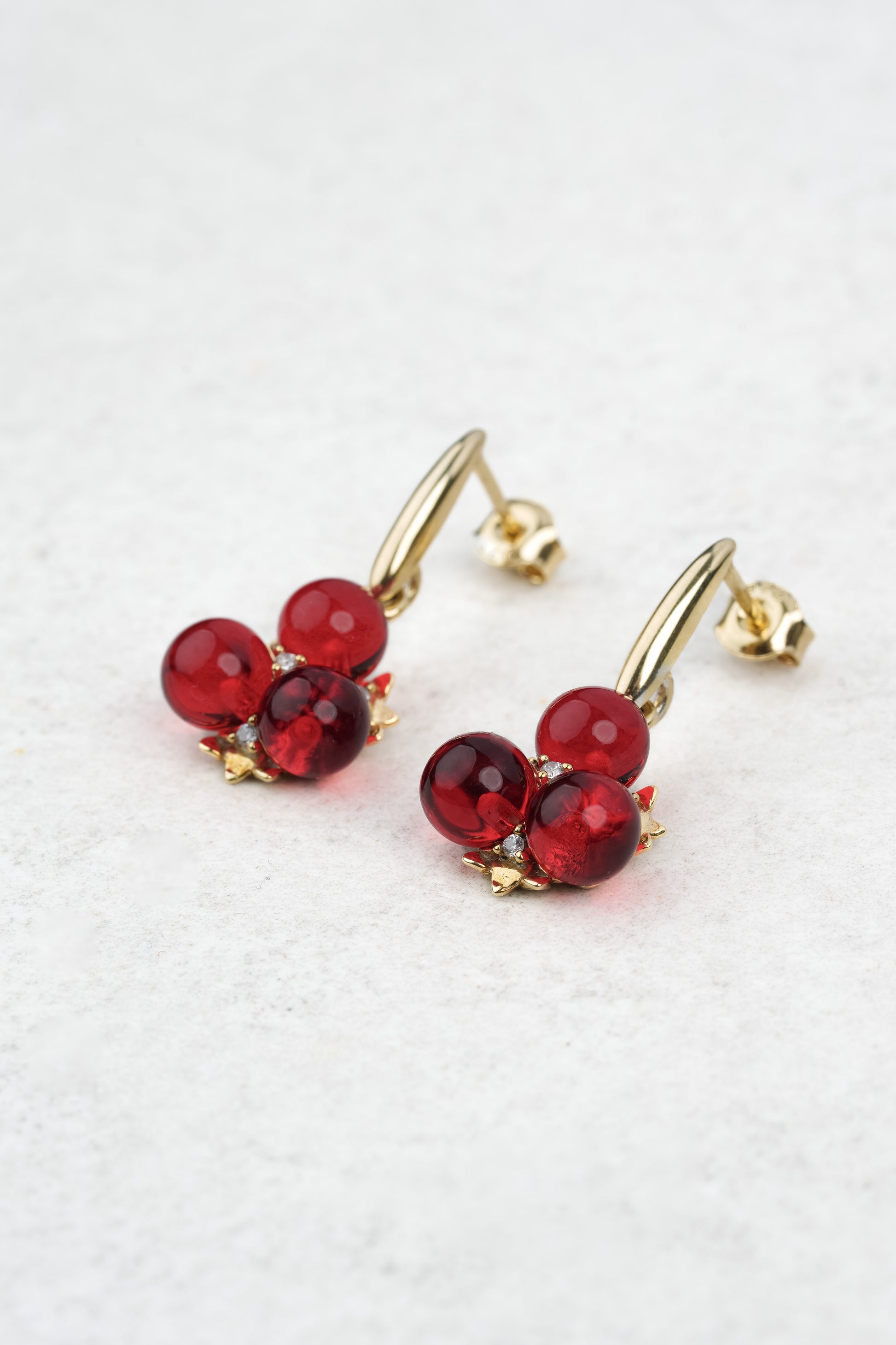 Gold-Plated Earrings with Natural Red Amber "Peccatum Dulce – Cerasa"