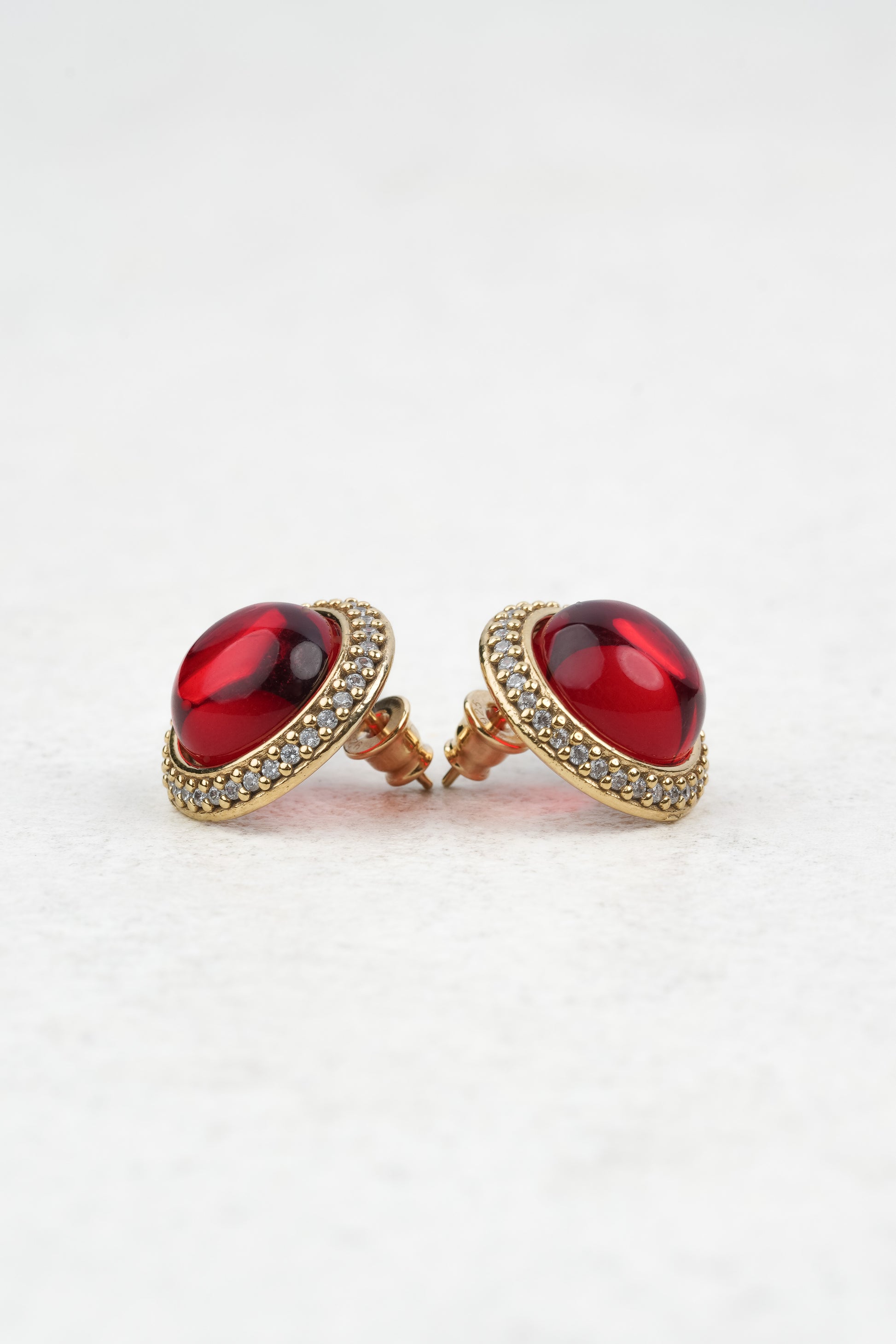 Gold-Plated Earrings with Natural Red Amber "Peccatum Dulce – Nexus"