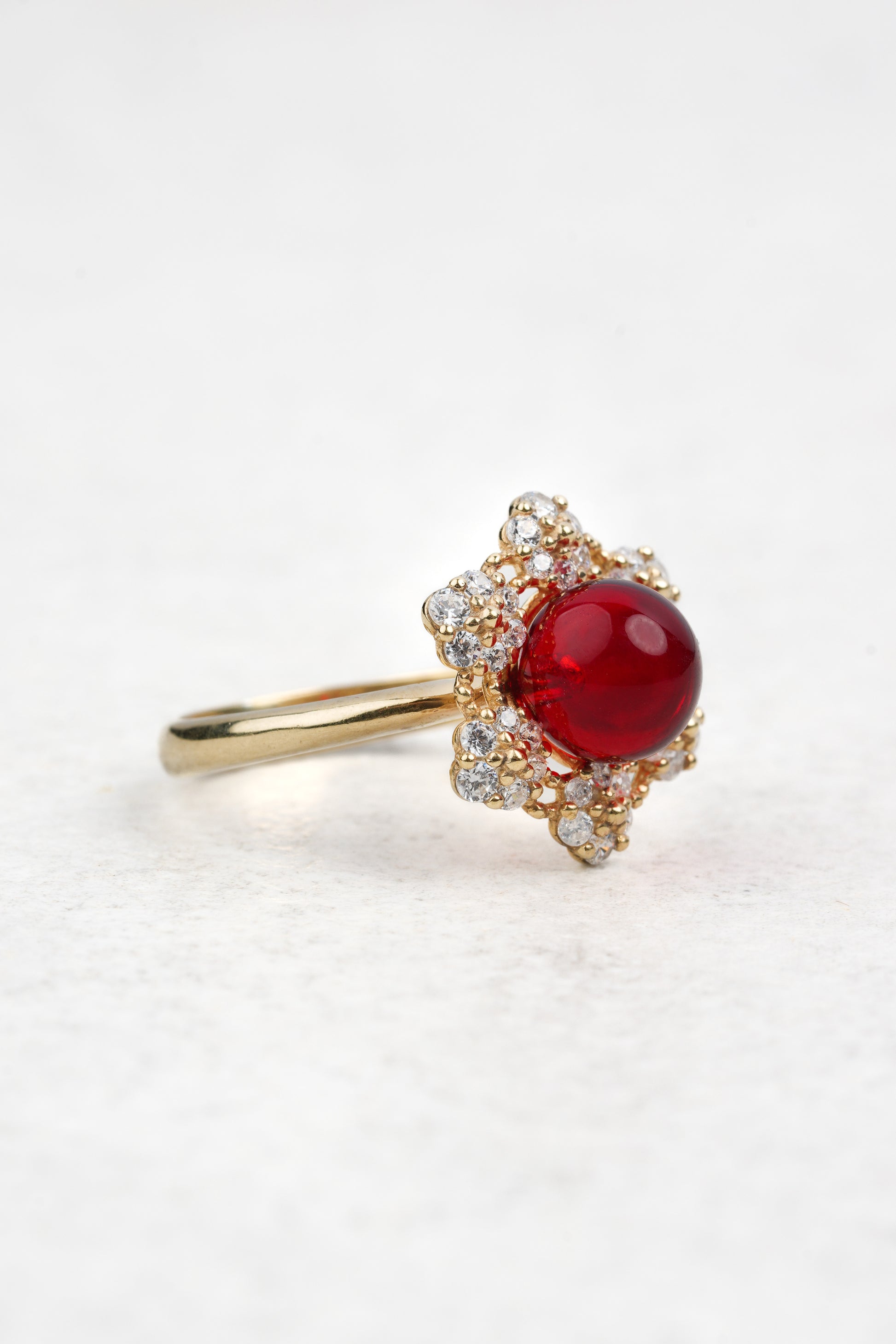 Gold-Plated Ring with Natural Red Amber "Peccatum Dulce – Halo"