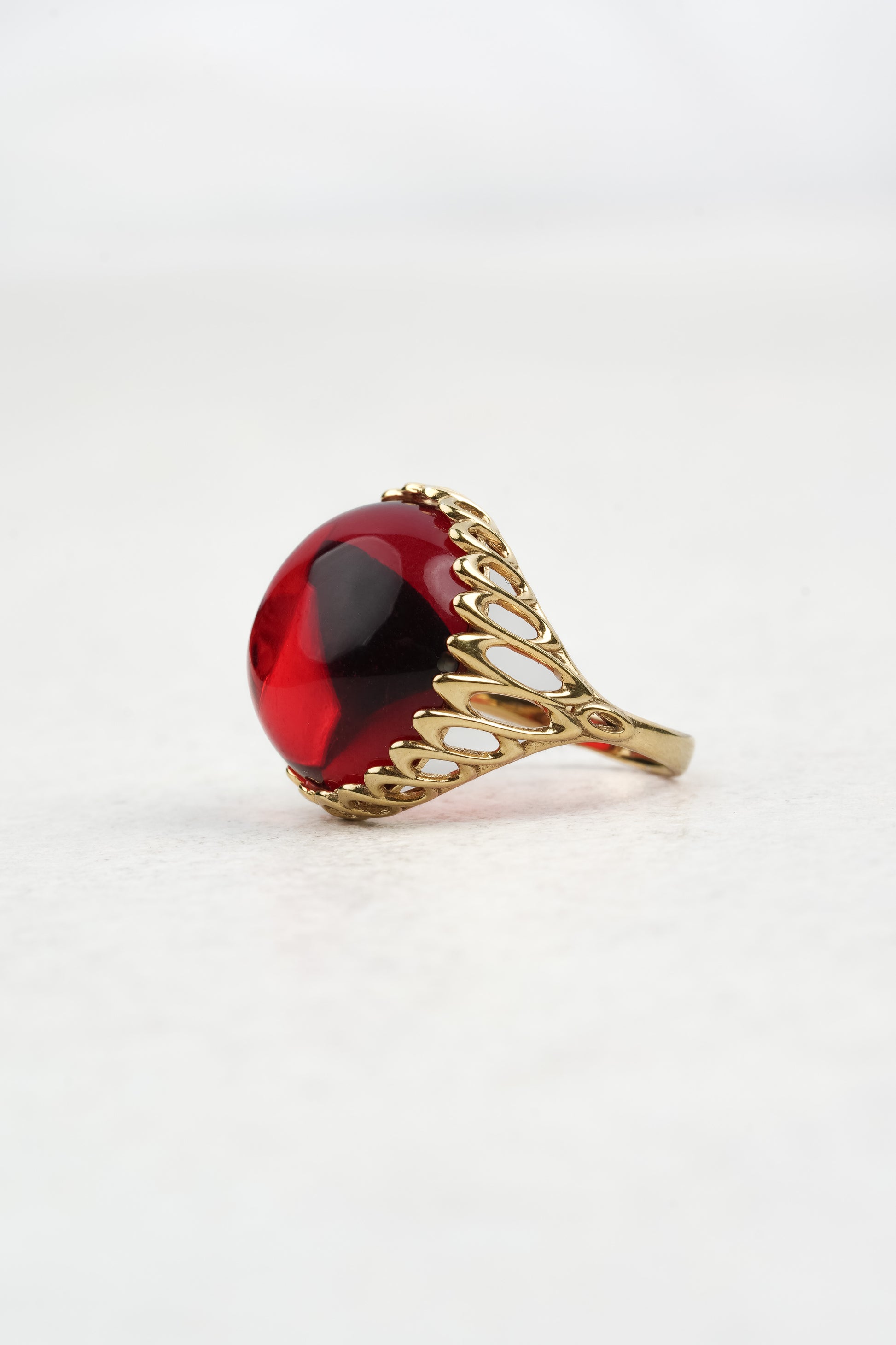 Gold-Plated Ring with Natural Red Amber "Peccatum Dulce – Regalia"