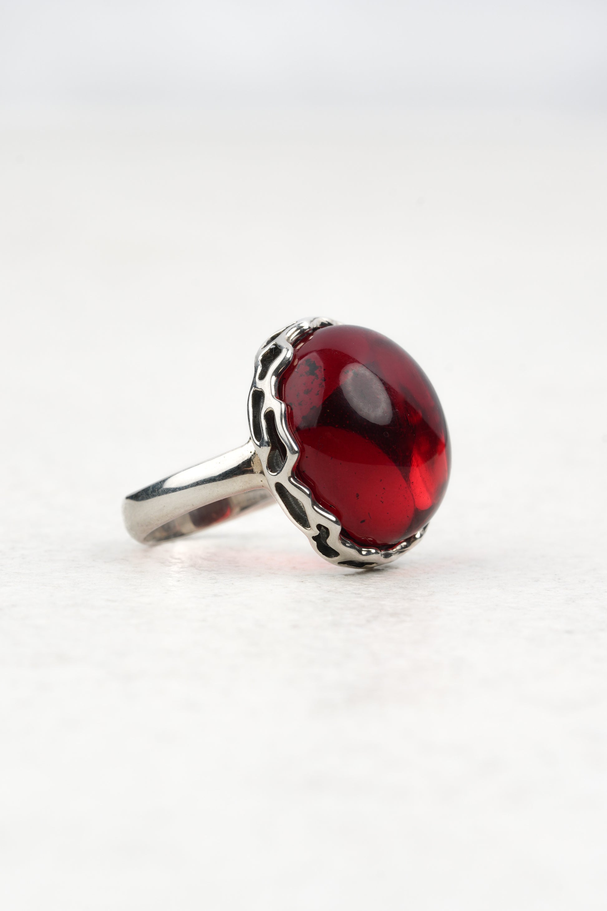 SIlver Ring with Natural Red Amber "Peccatum Dulce – Gelu"