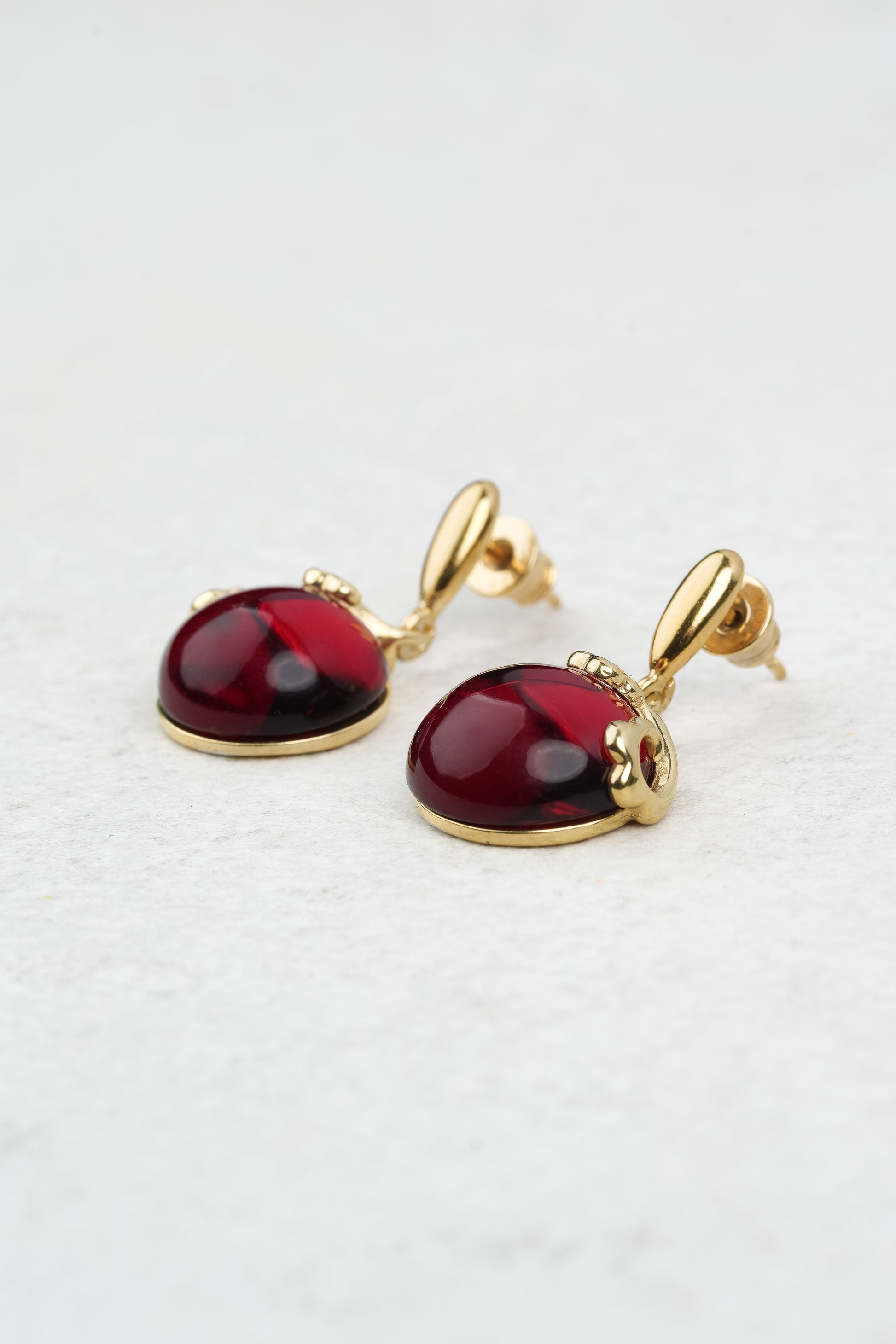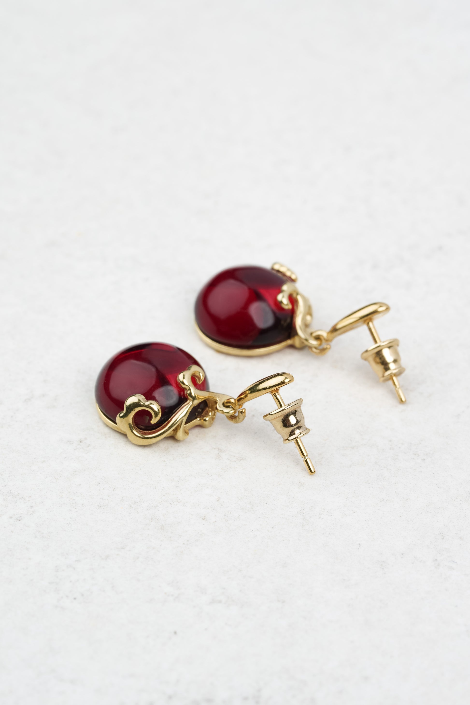 Gold-Plated Earrings with Natural Red Amber "Peccatum Dulce – Cochlea"