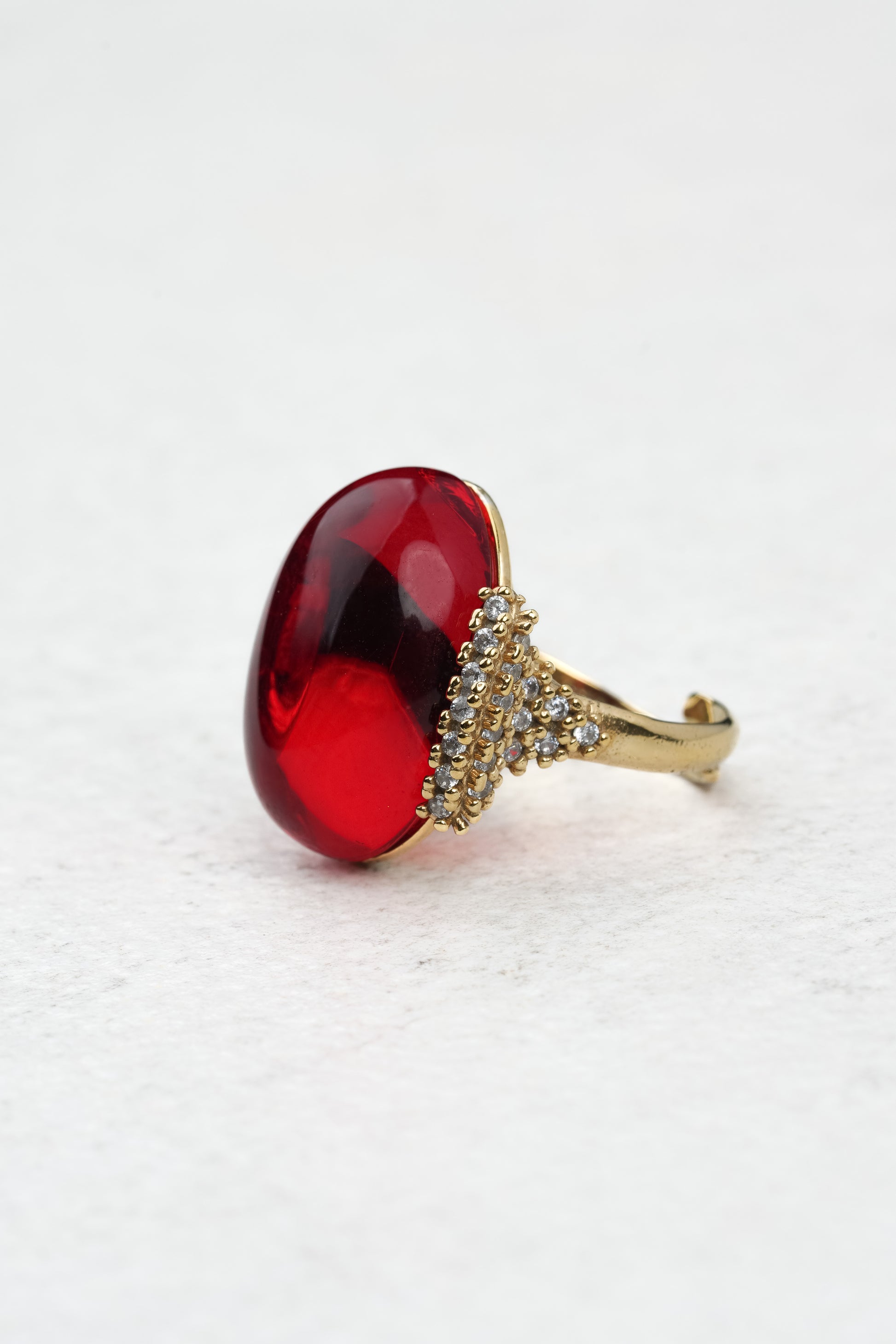 Gold-Plated Ring with Natural Red Amber "Peccatum Dulce – Rubigo"