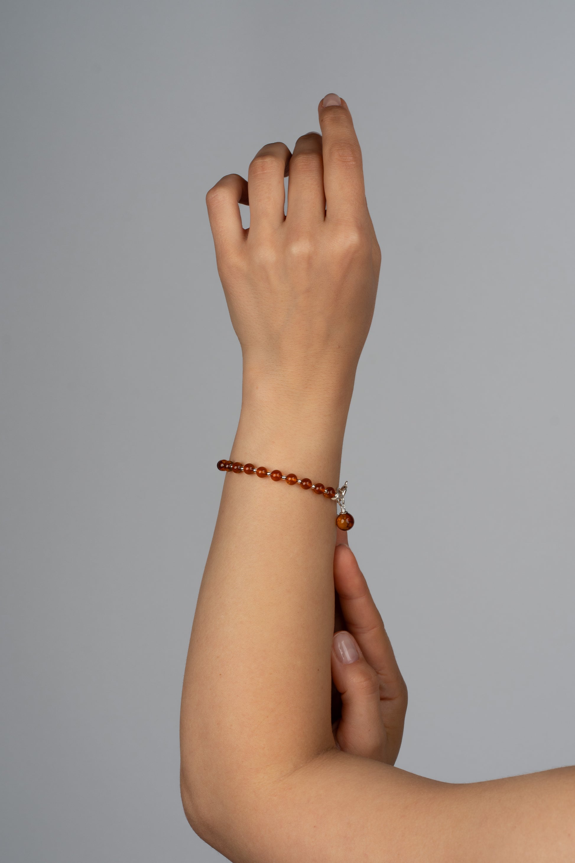 Made from natural cherry-toned Baltic amber, each polished bead glows with the warmth of burning honey and the softness of golden light. The silver details highlight the amber’s deep inner fire, creating a timeless balance between strength and elegance.