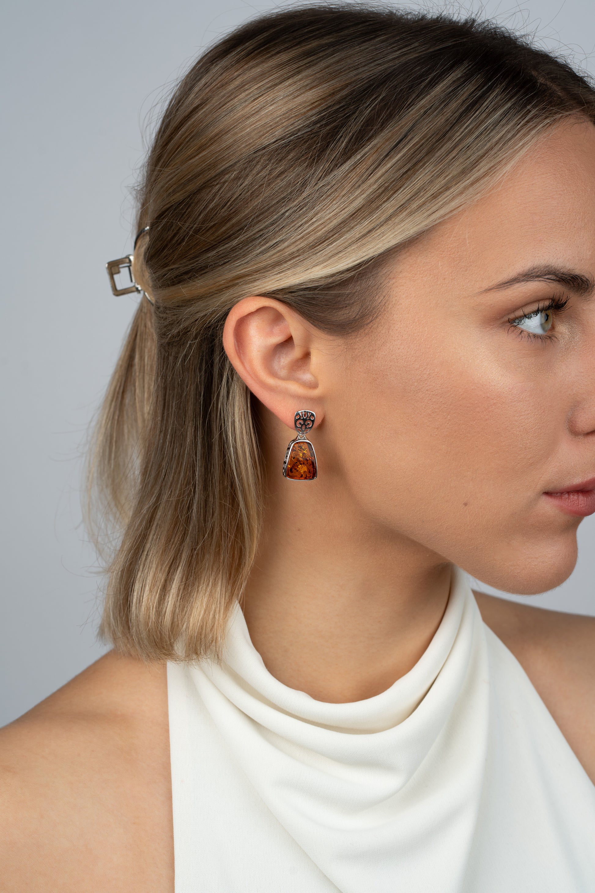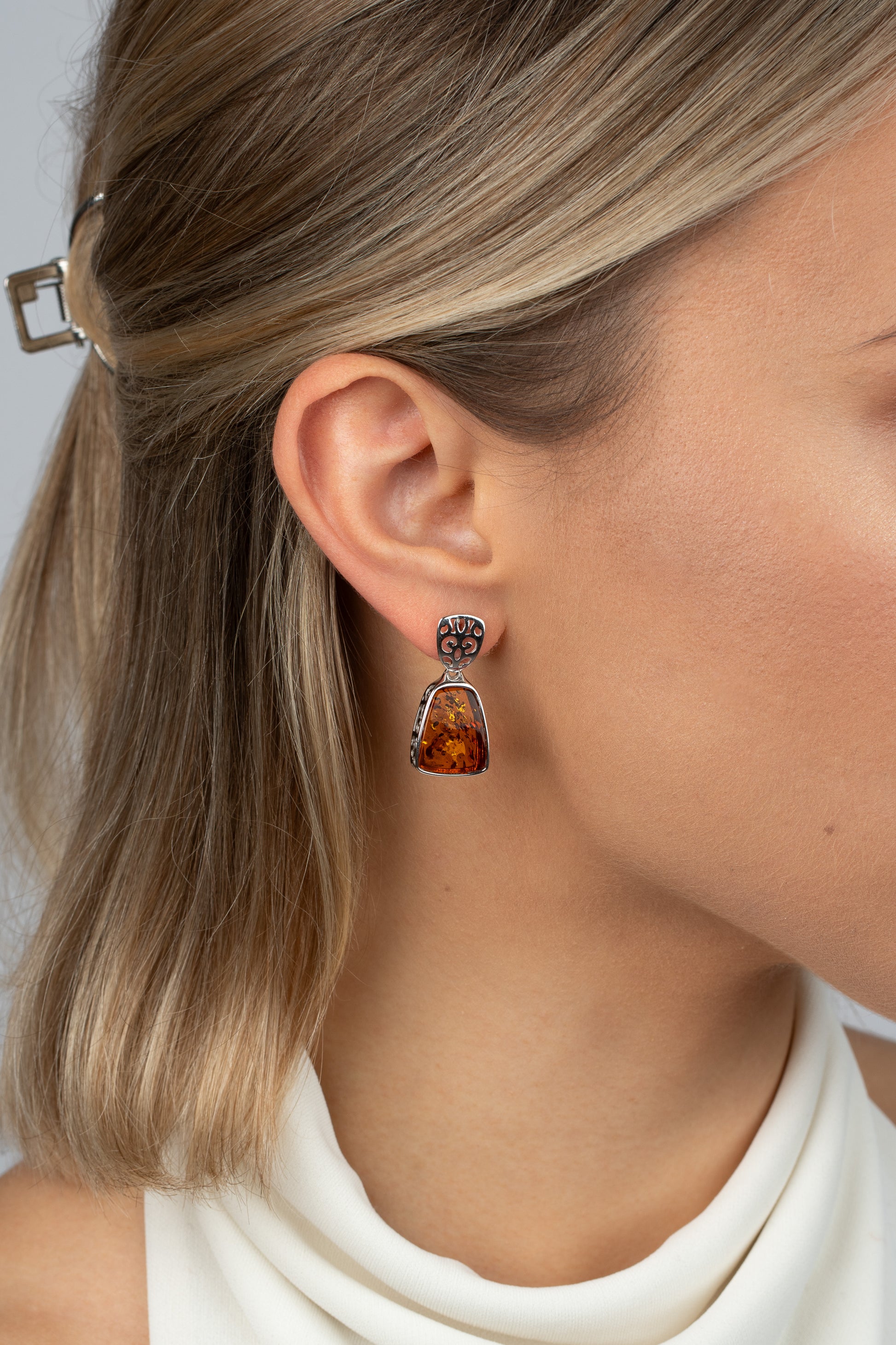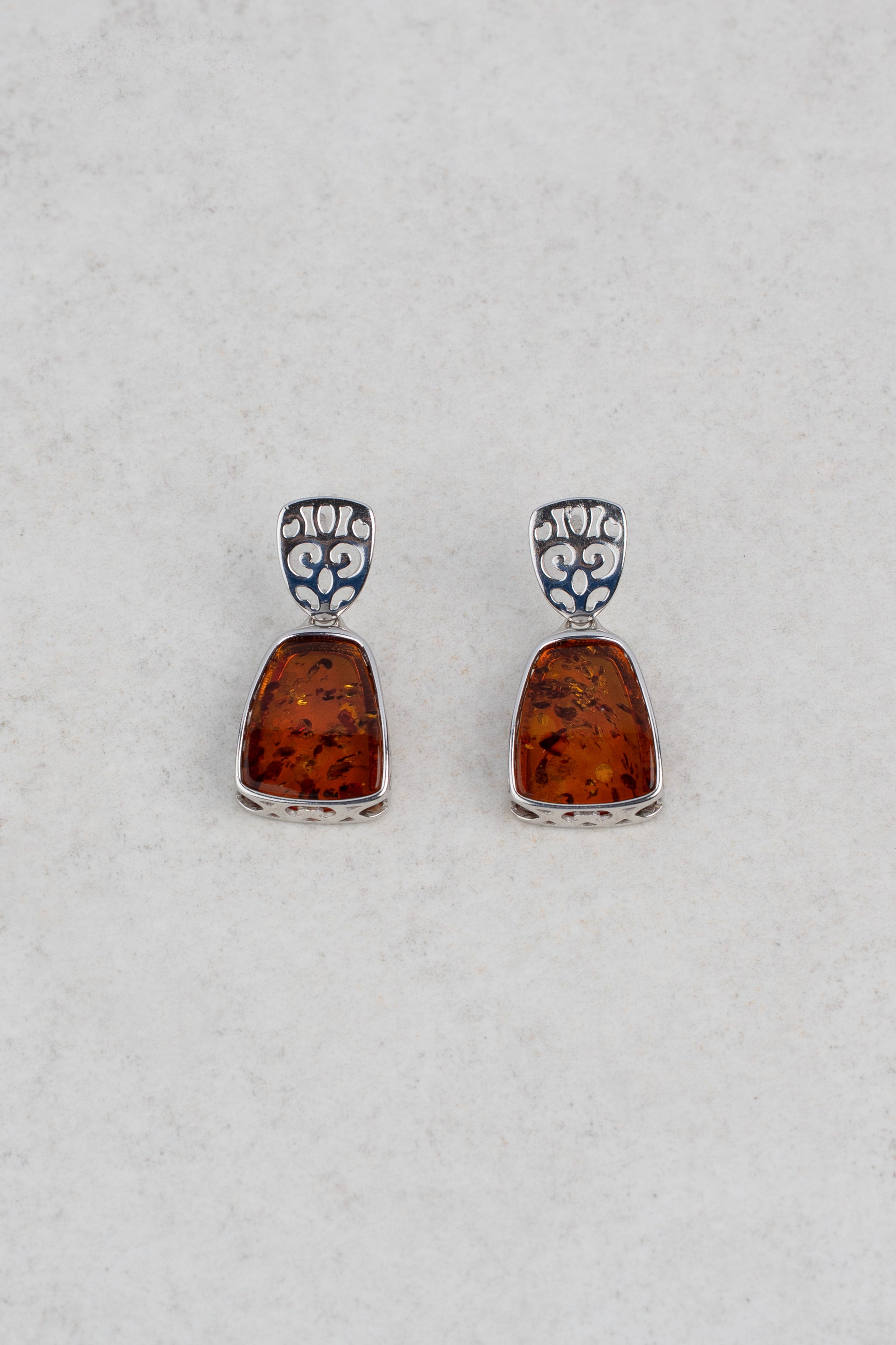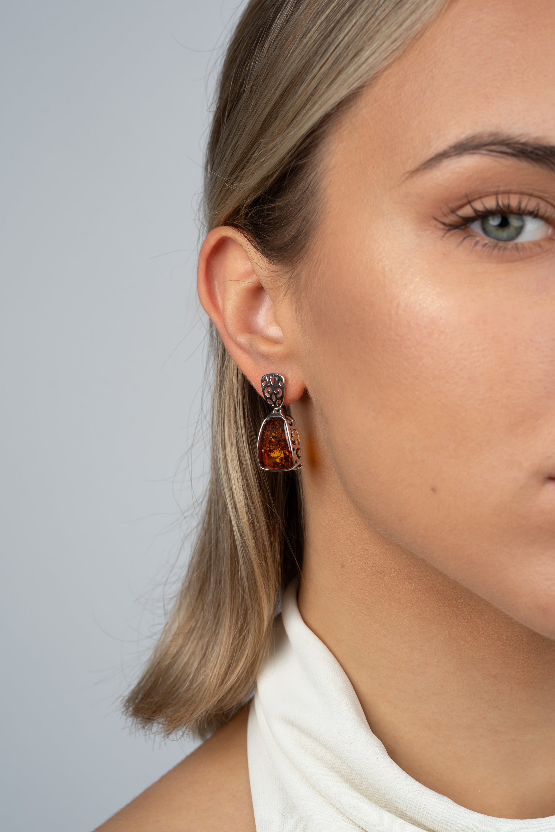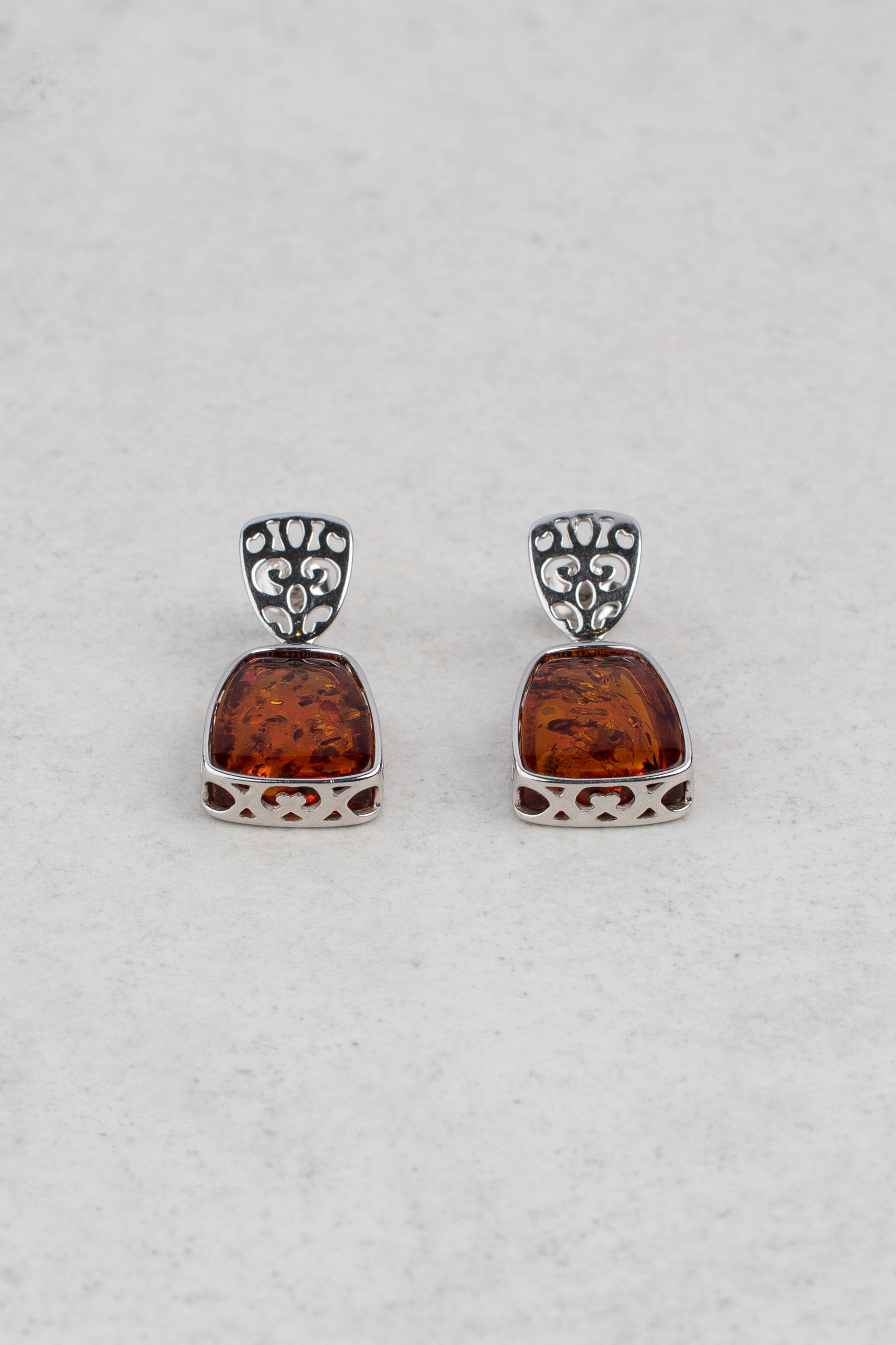 Elegantiški sidabriniai auskarai su medaus spalvos gintaru „Spiritus Ambrae“