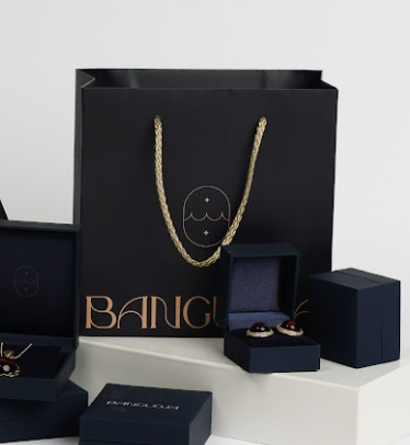Aukštos kokybės dovanų maišelis su elegantiškais aukso akcentais ir pintomis rankenėlėmis.