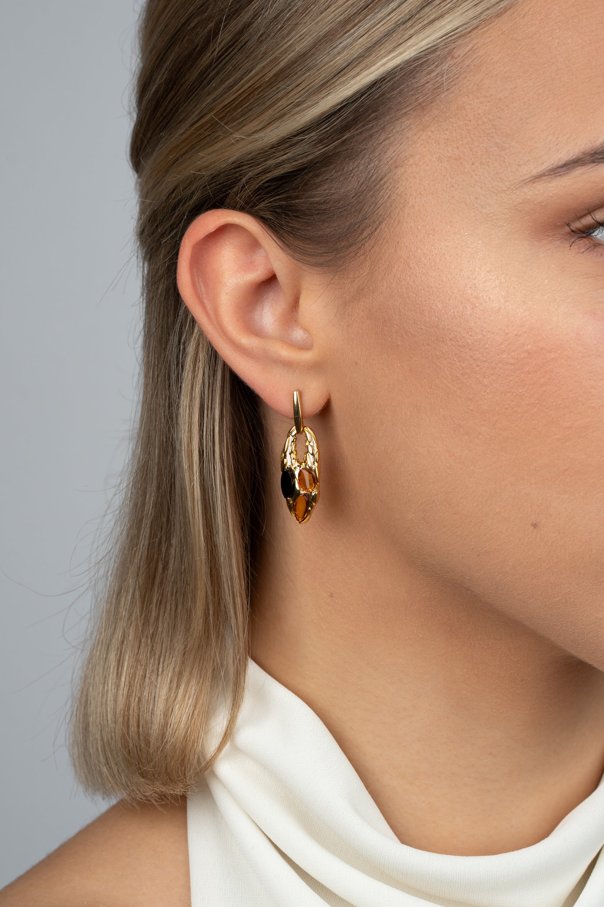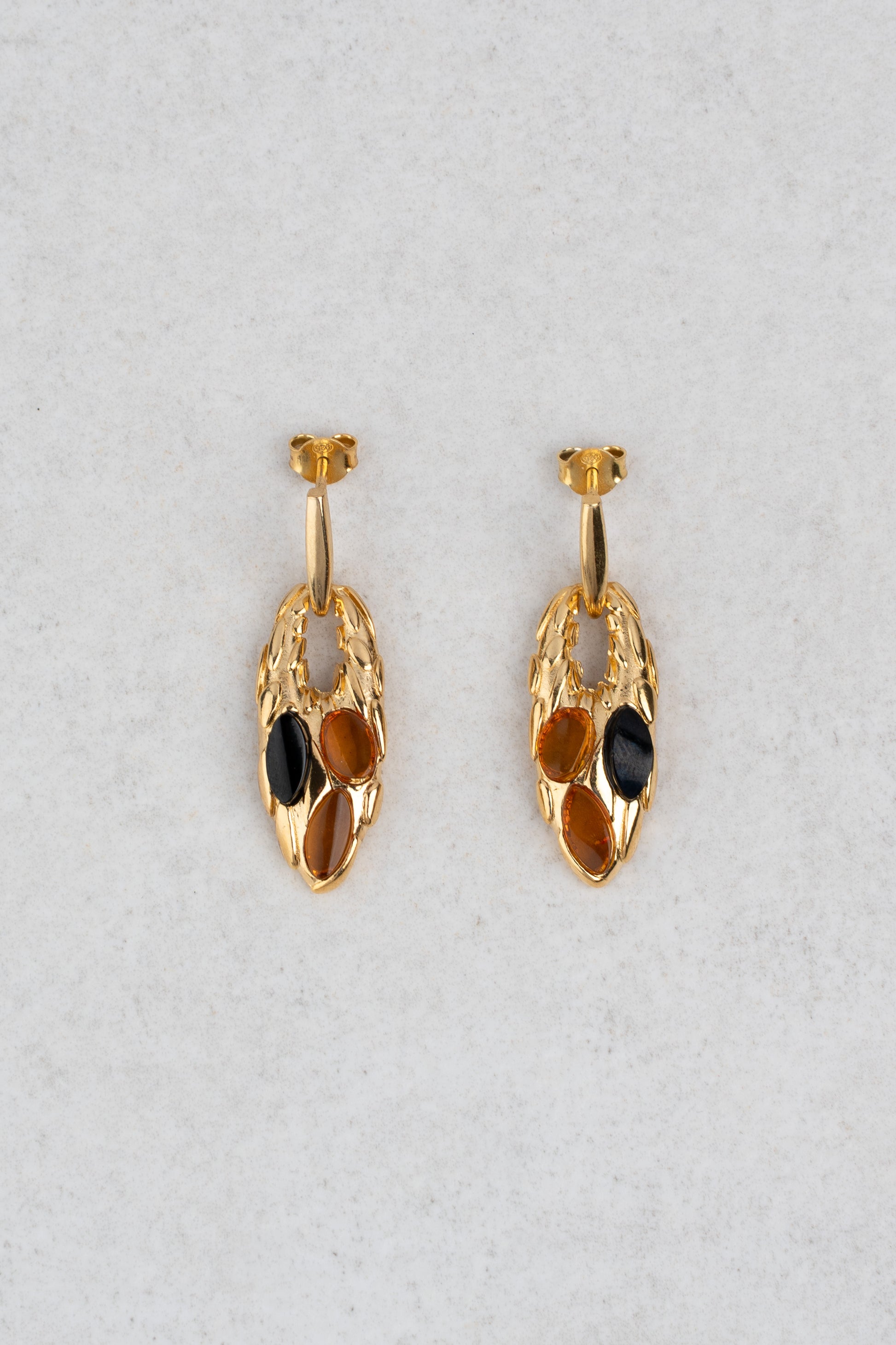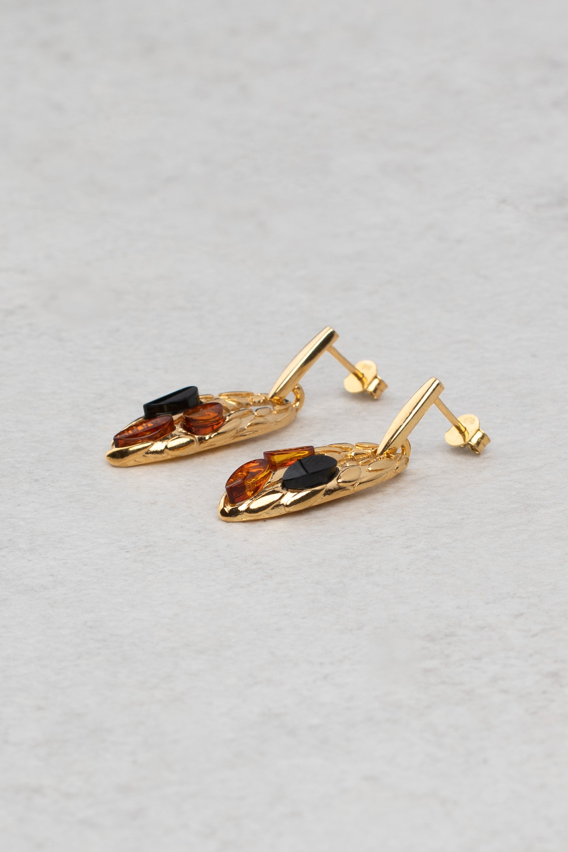 Modernūs paauksuoti gintaro auskarai „Lacrima Solis“