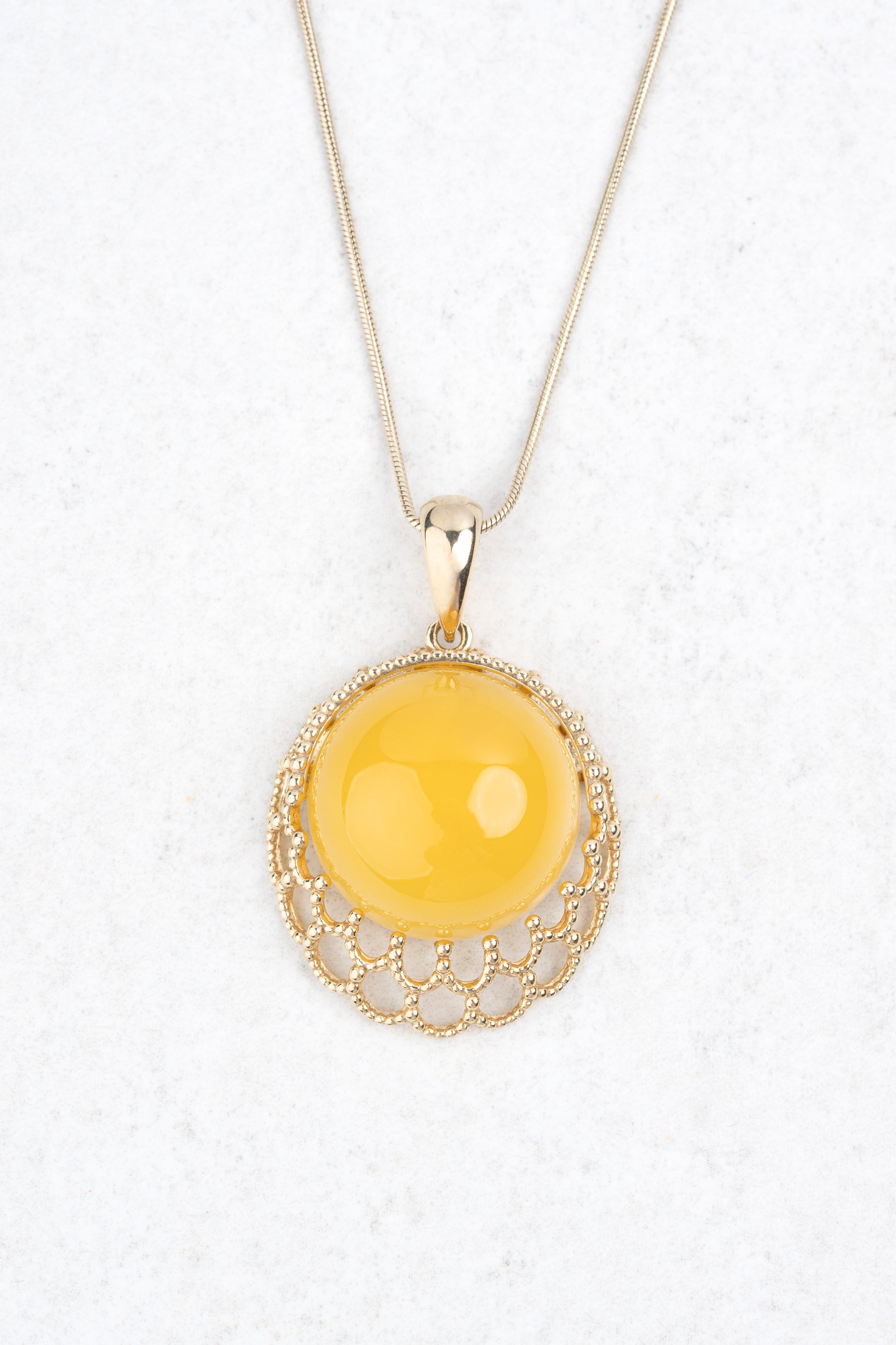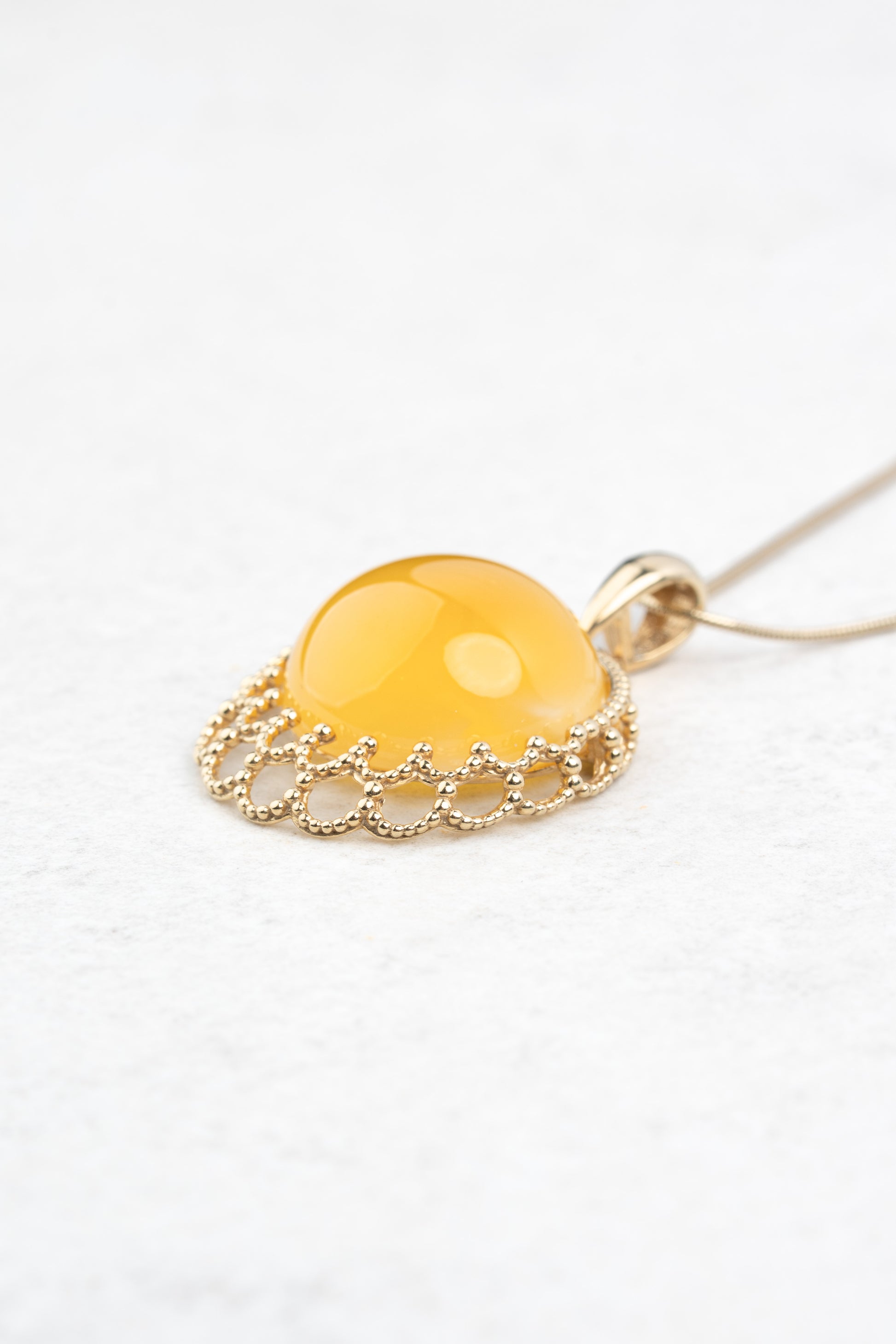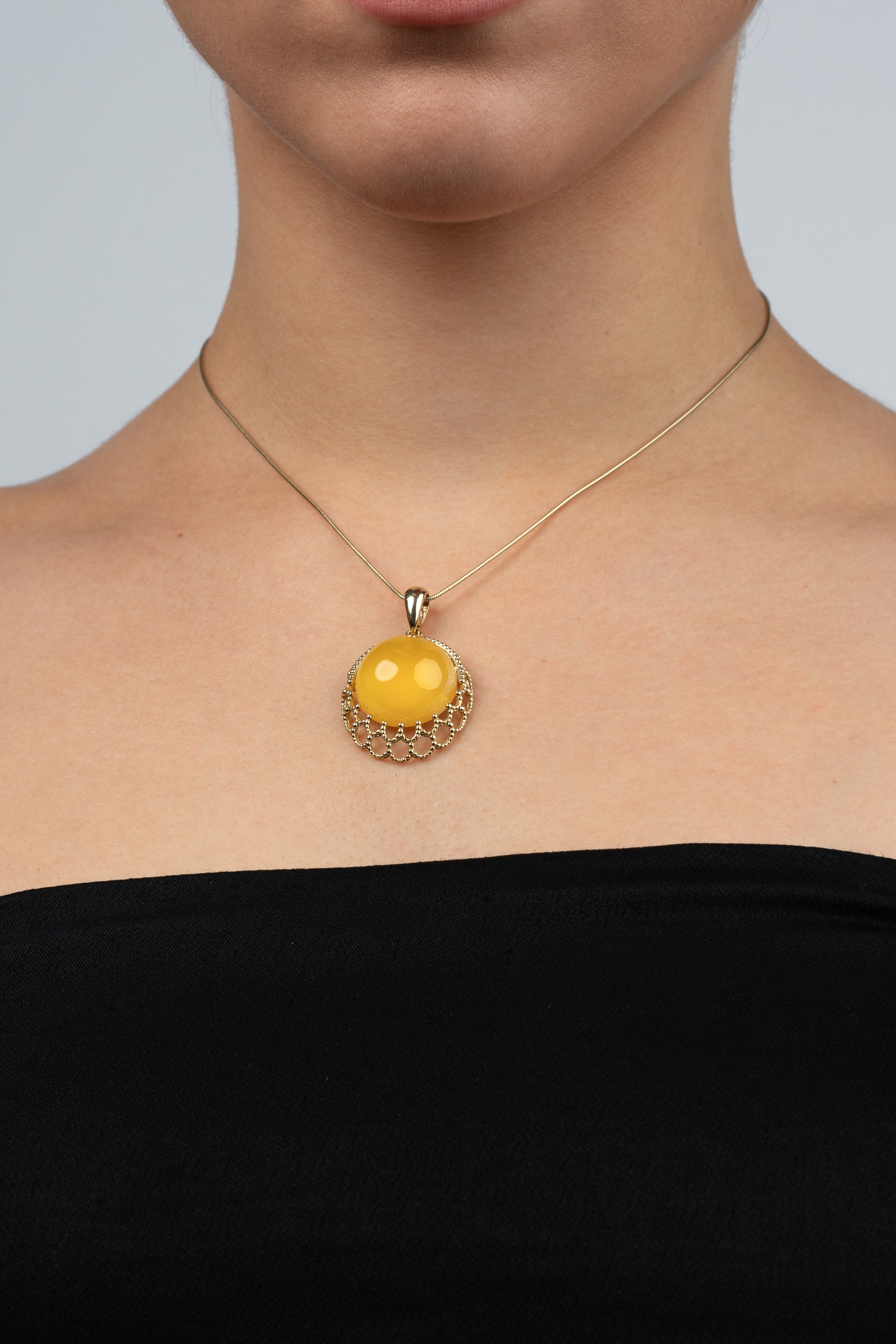 Paauksuotas gintarinis pakabukas su geltonuoju gintaru „Corona Mellis“