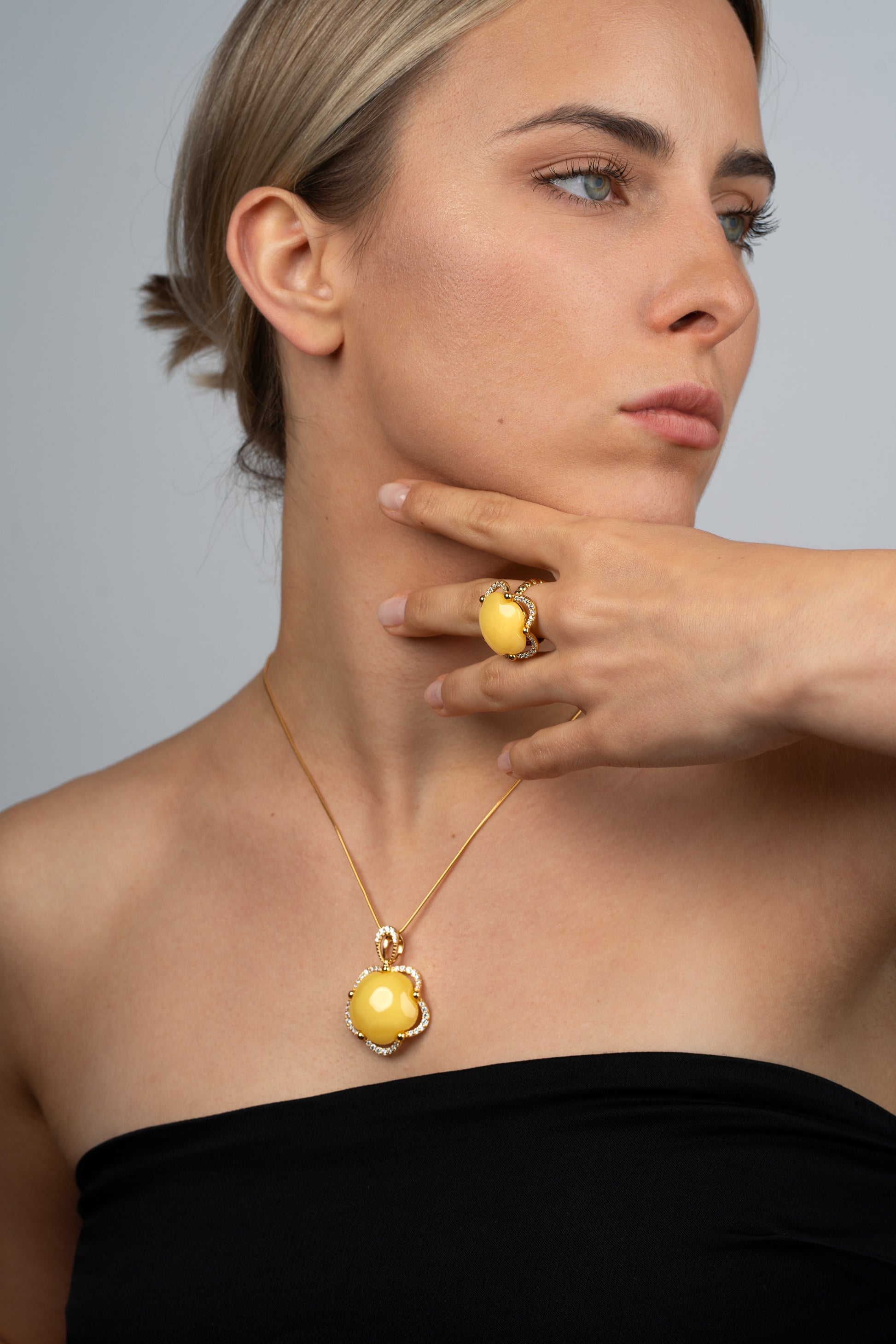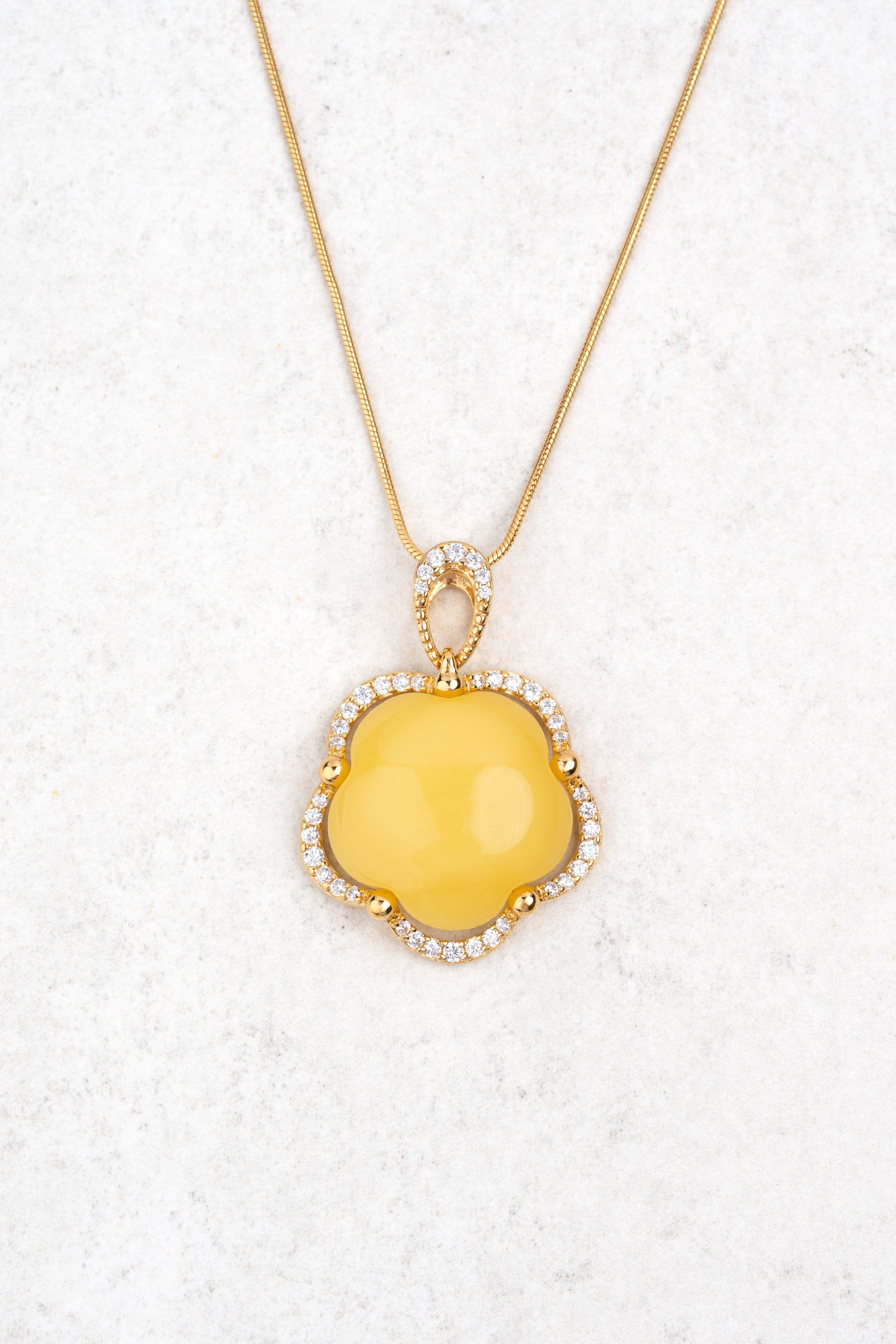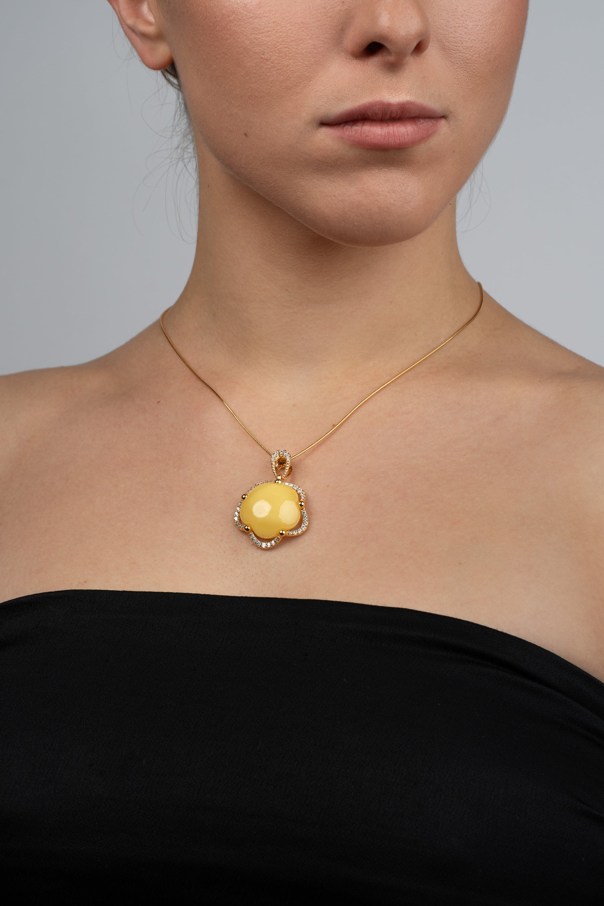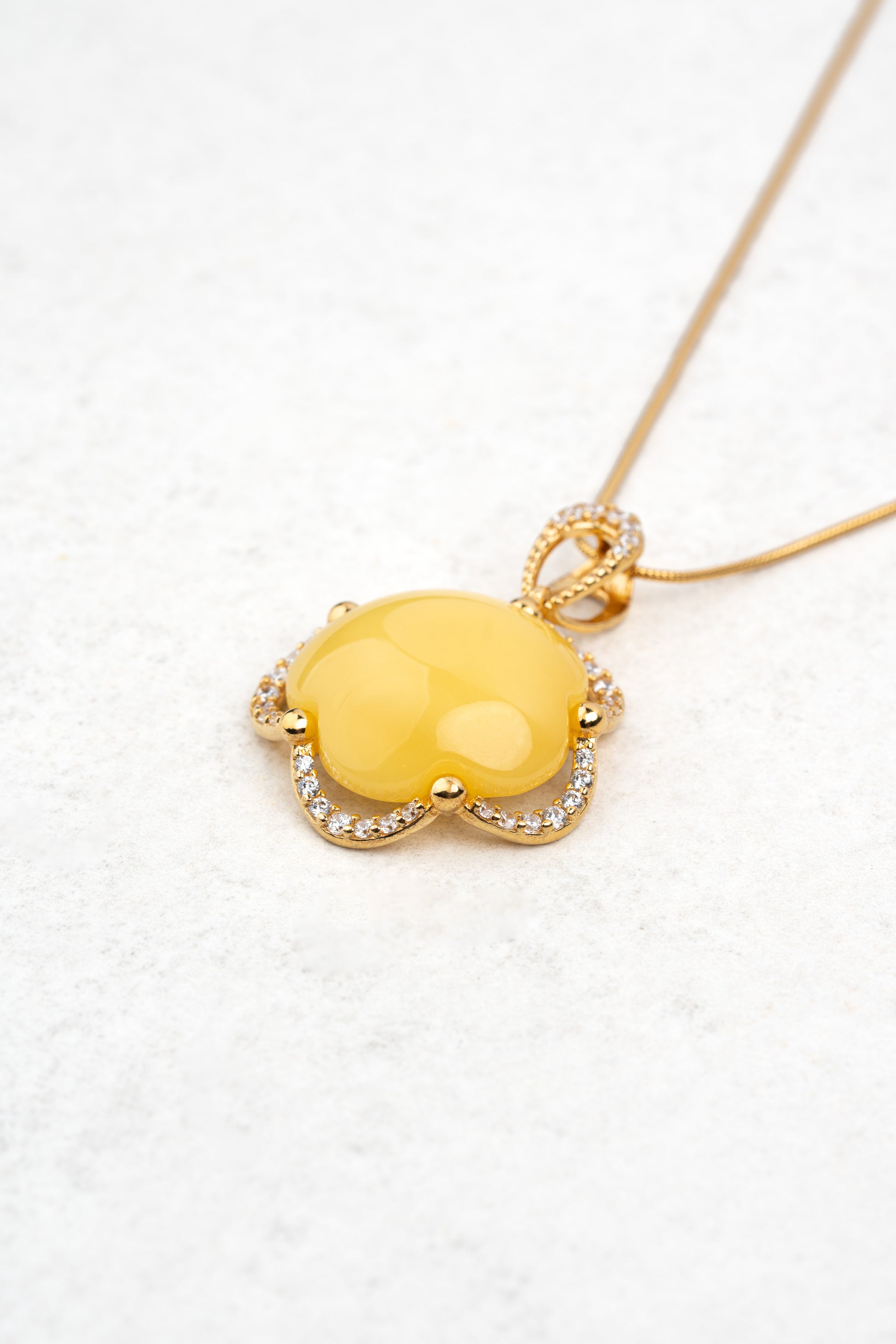 Paauksuotas gintarinis pakabukas su geltonu gintaru "Aura Solis"