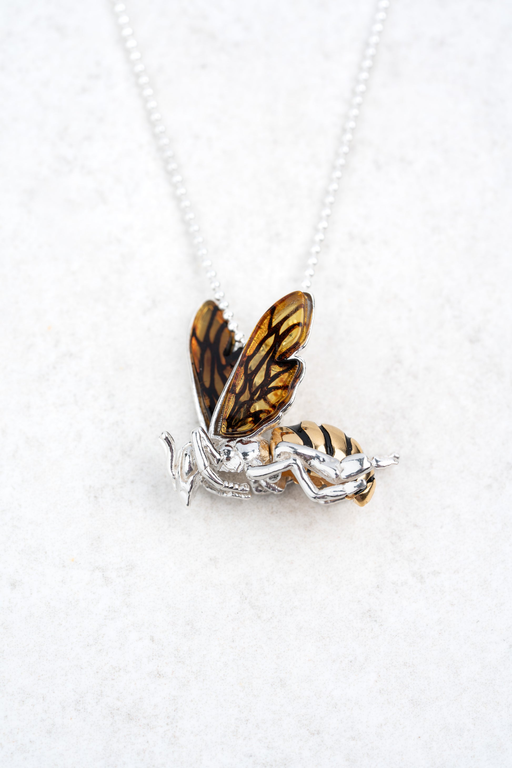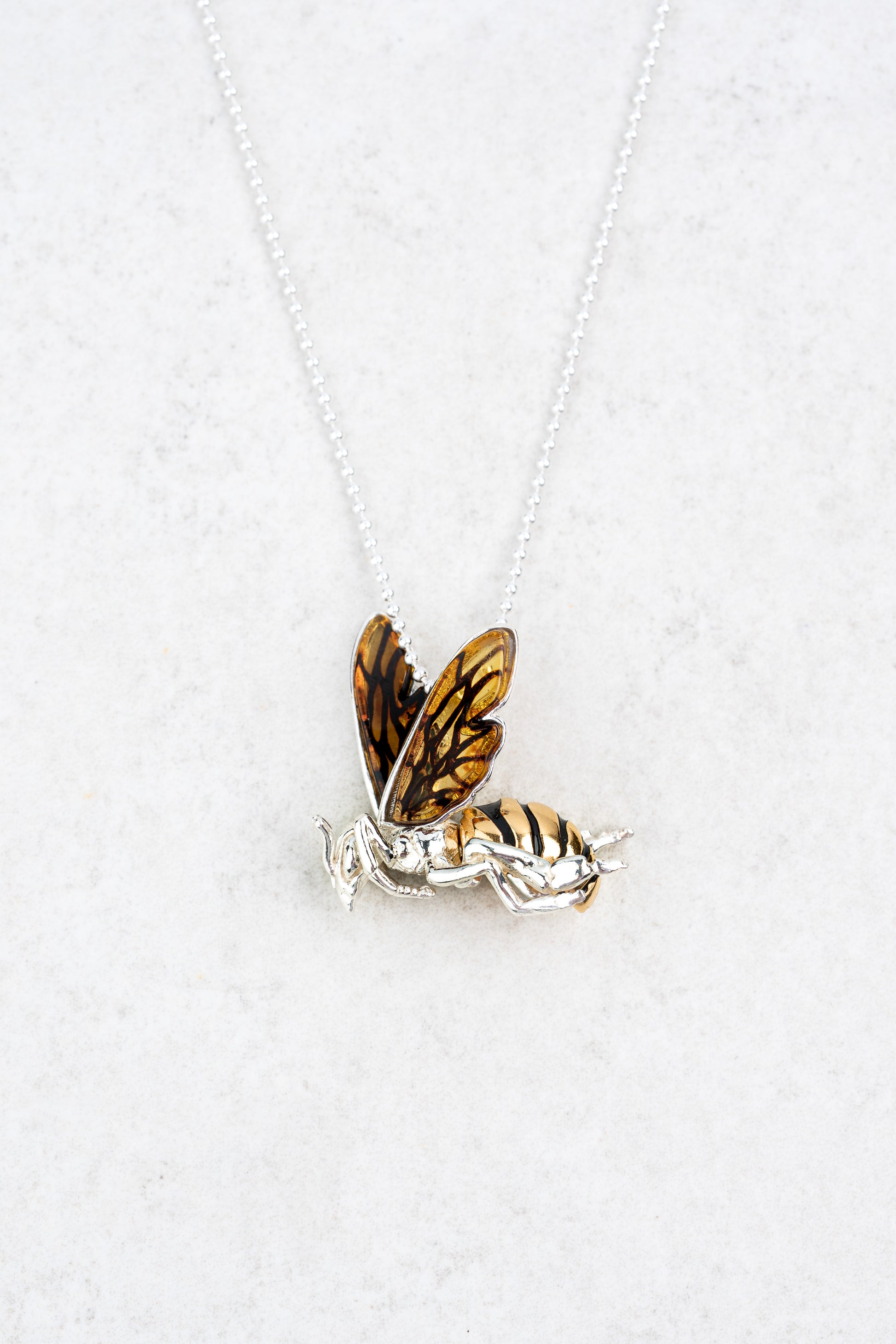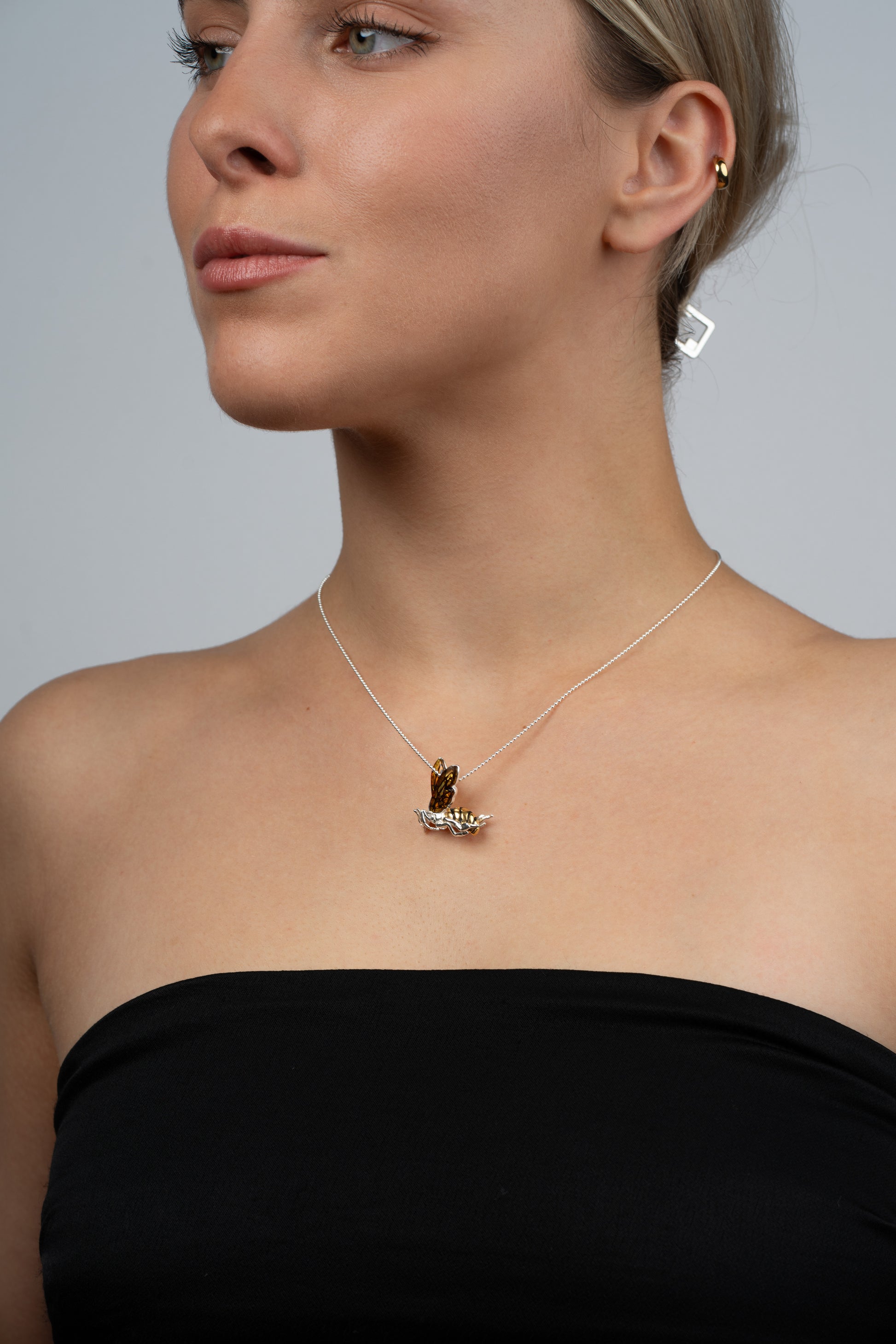 „Aurata Volans“ (lot. „Auksu skriejanti“) – žavus rankų darbo pakabukas, švenčiantis gamtos eleganciją ir gyvybingumą.