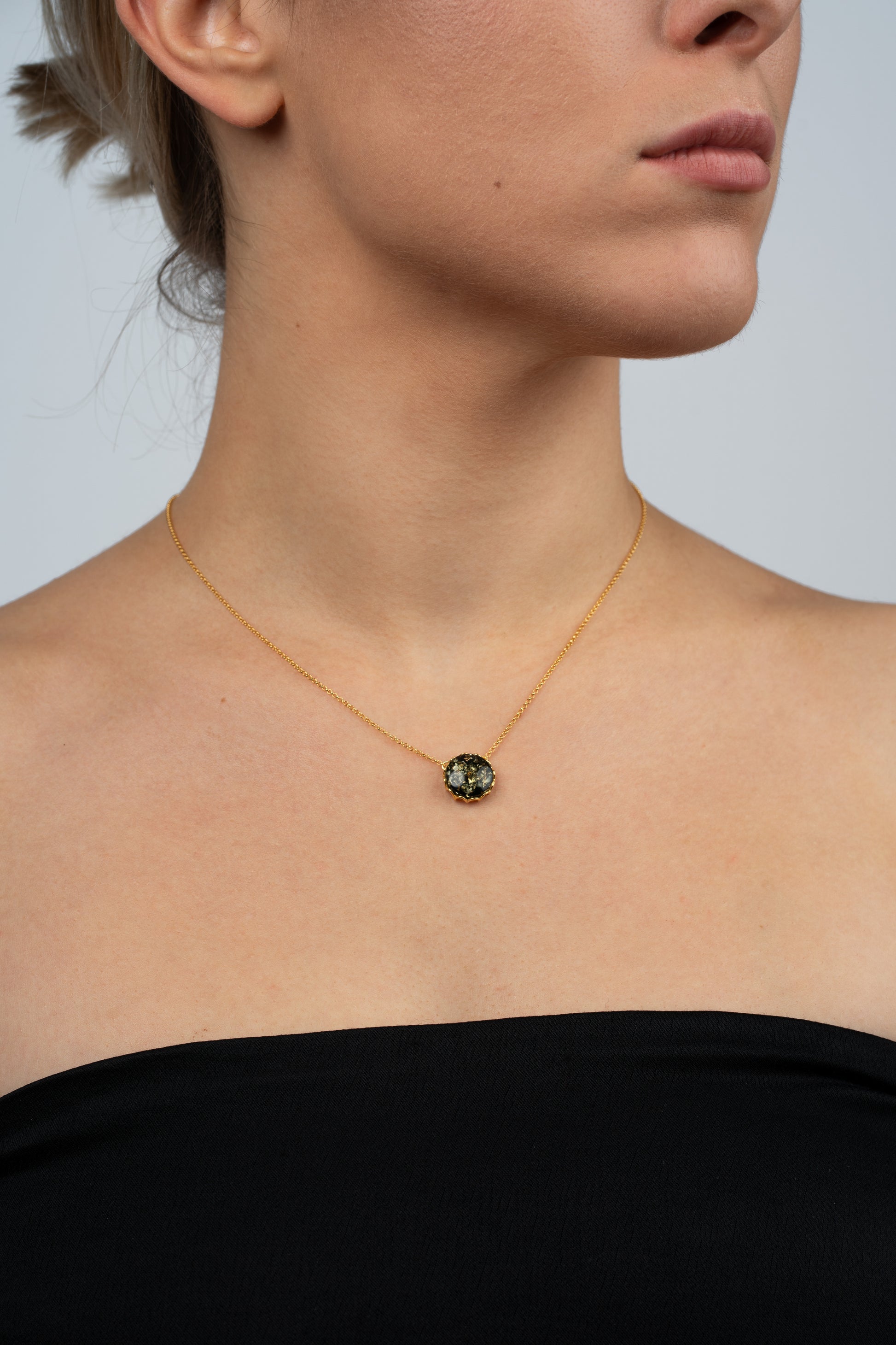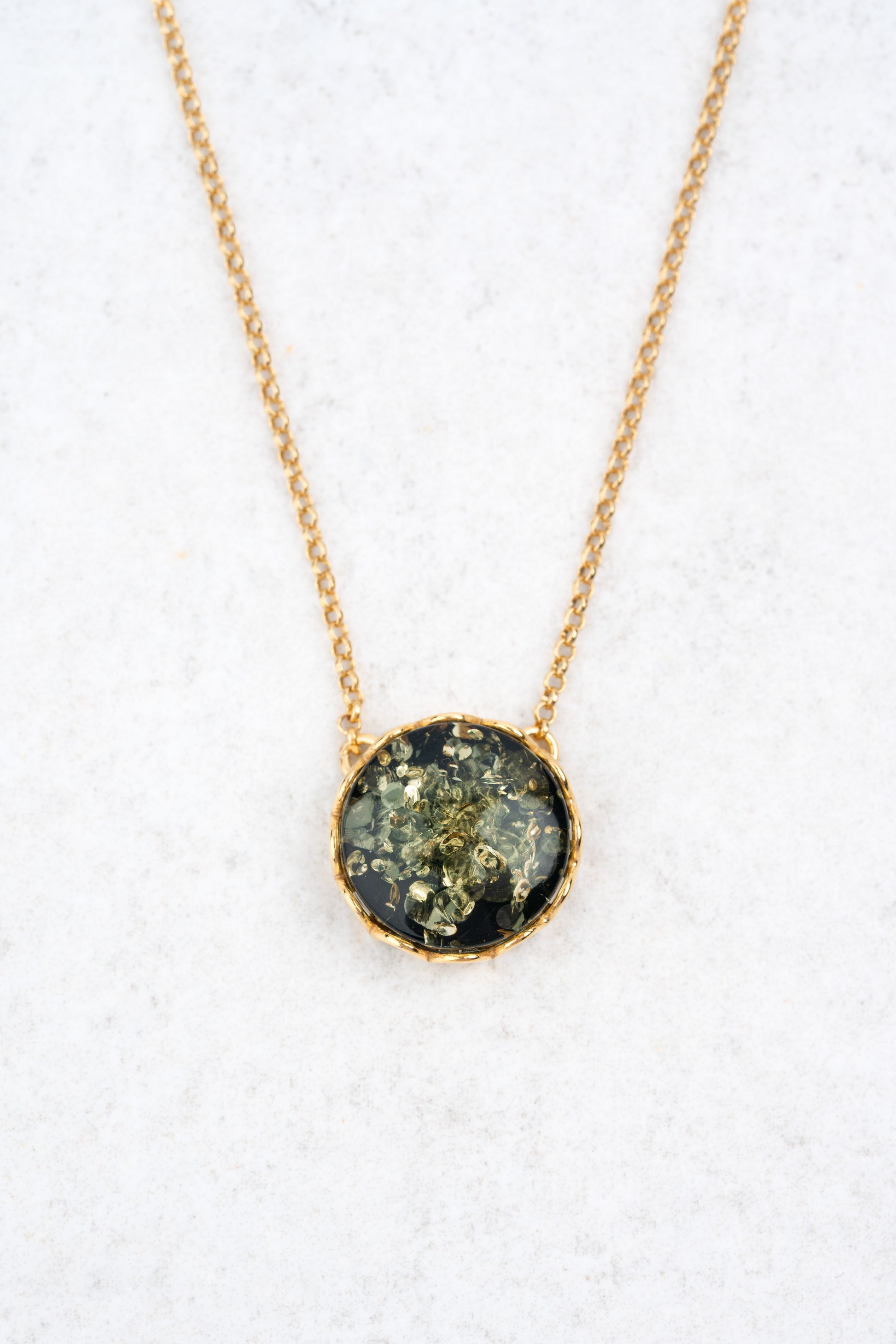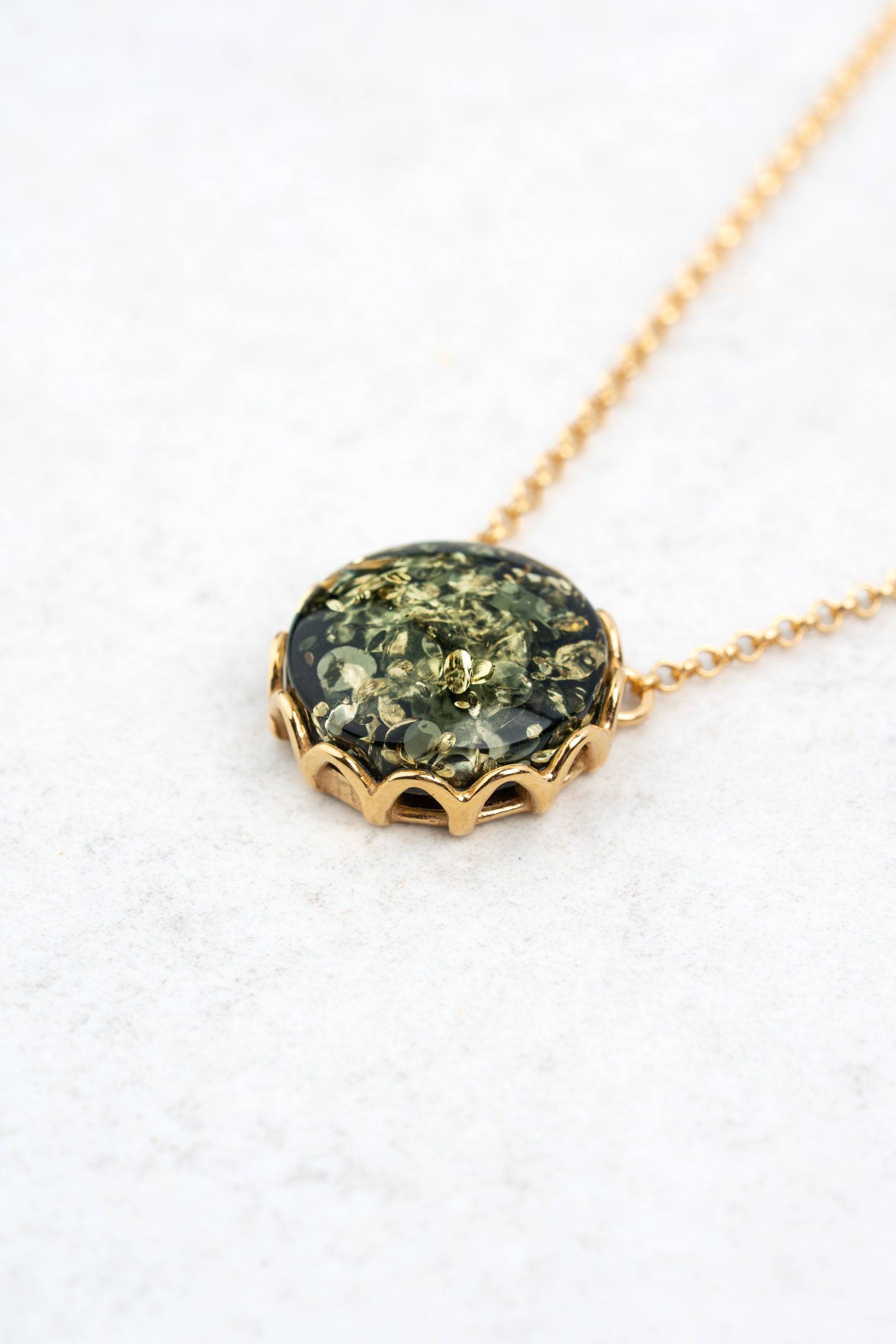 Paauksuotas gintaro pakabukas su žaliuoju gintaru „Aurora Silvarum“