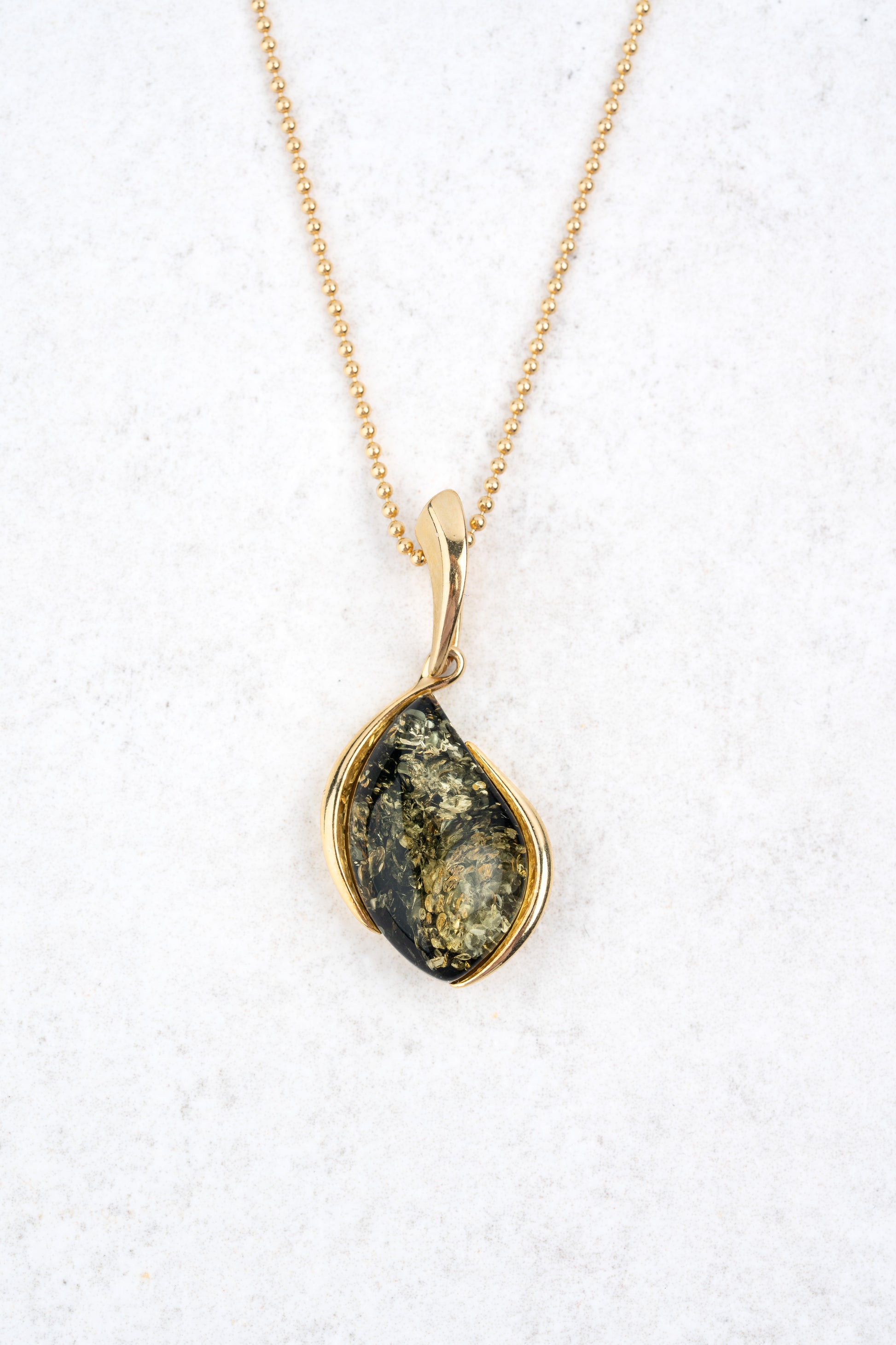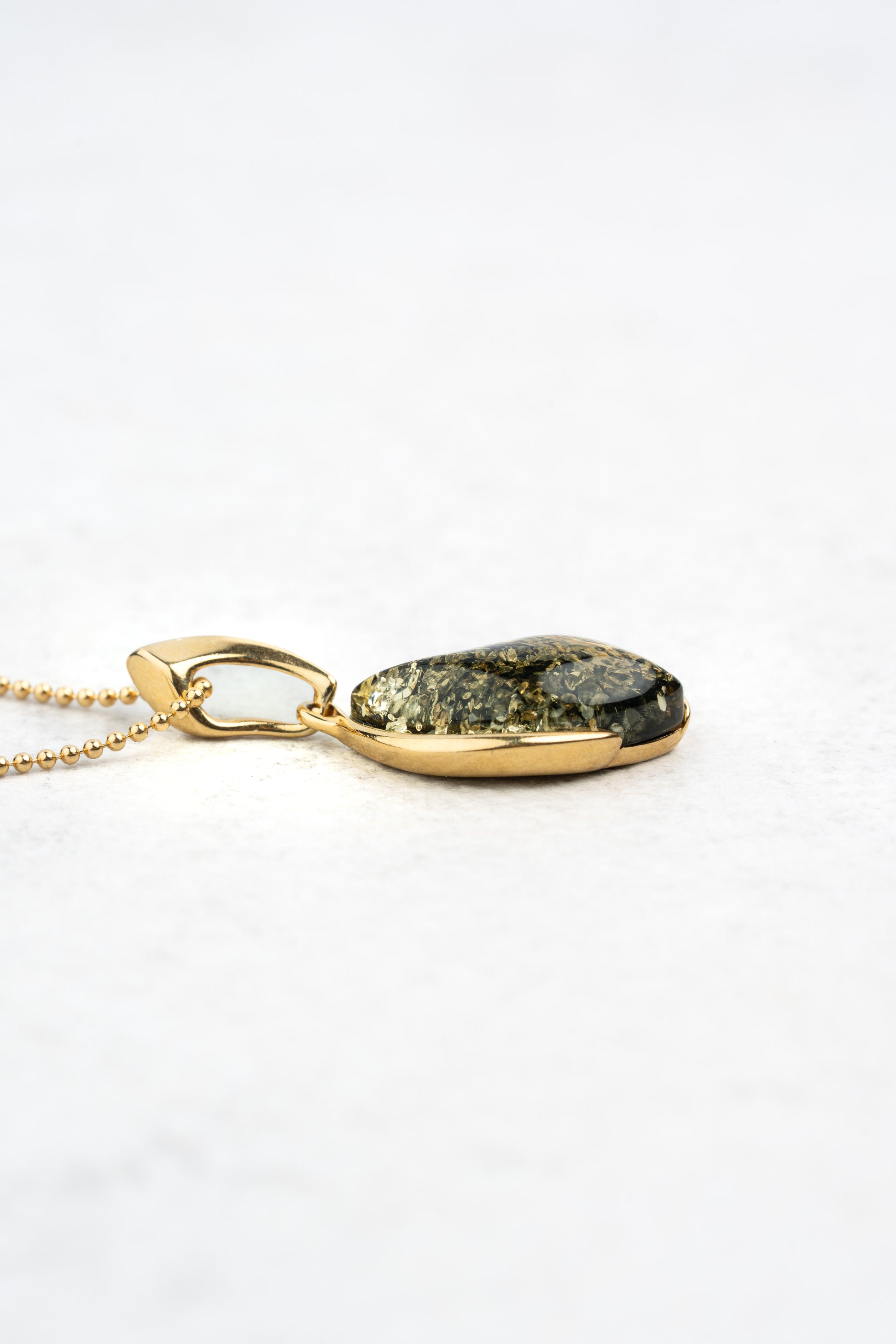 Paauksuotas gintarinis pakabukas su žaliuoju gintaru „Flamma Viridis“