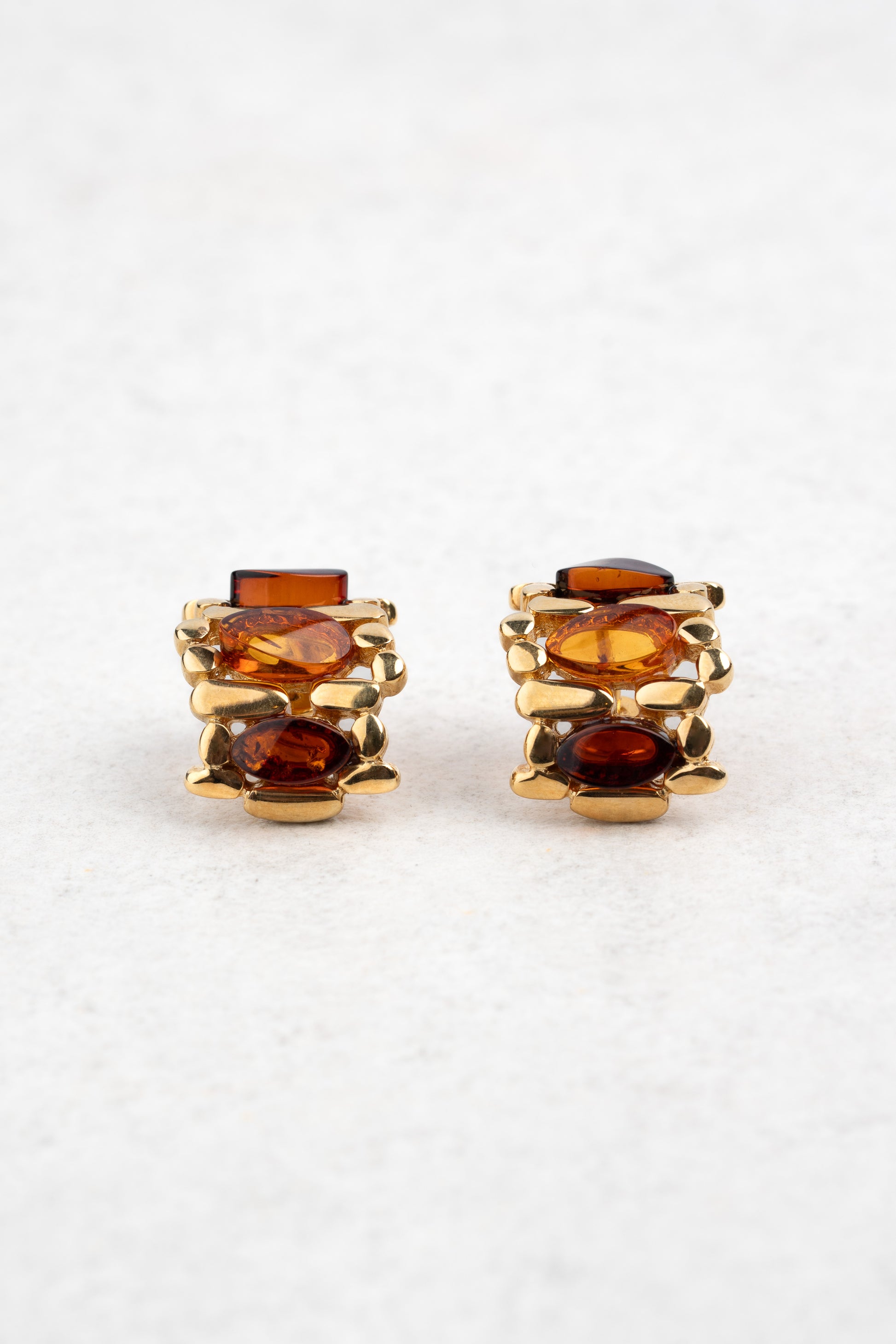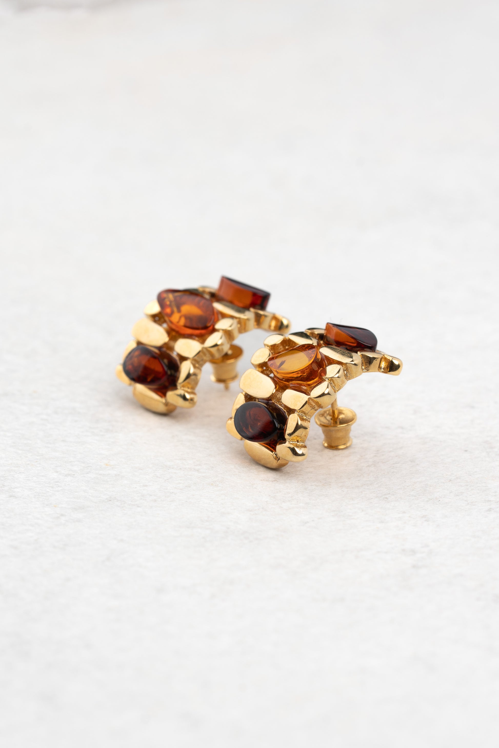 Paauksuoti auskarai su vyšnių ir medaus spalvos gintaru „Flamma Aurea"
