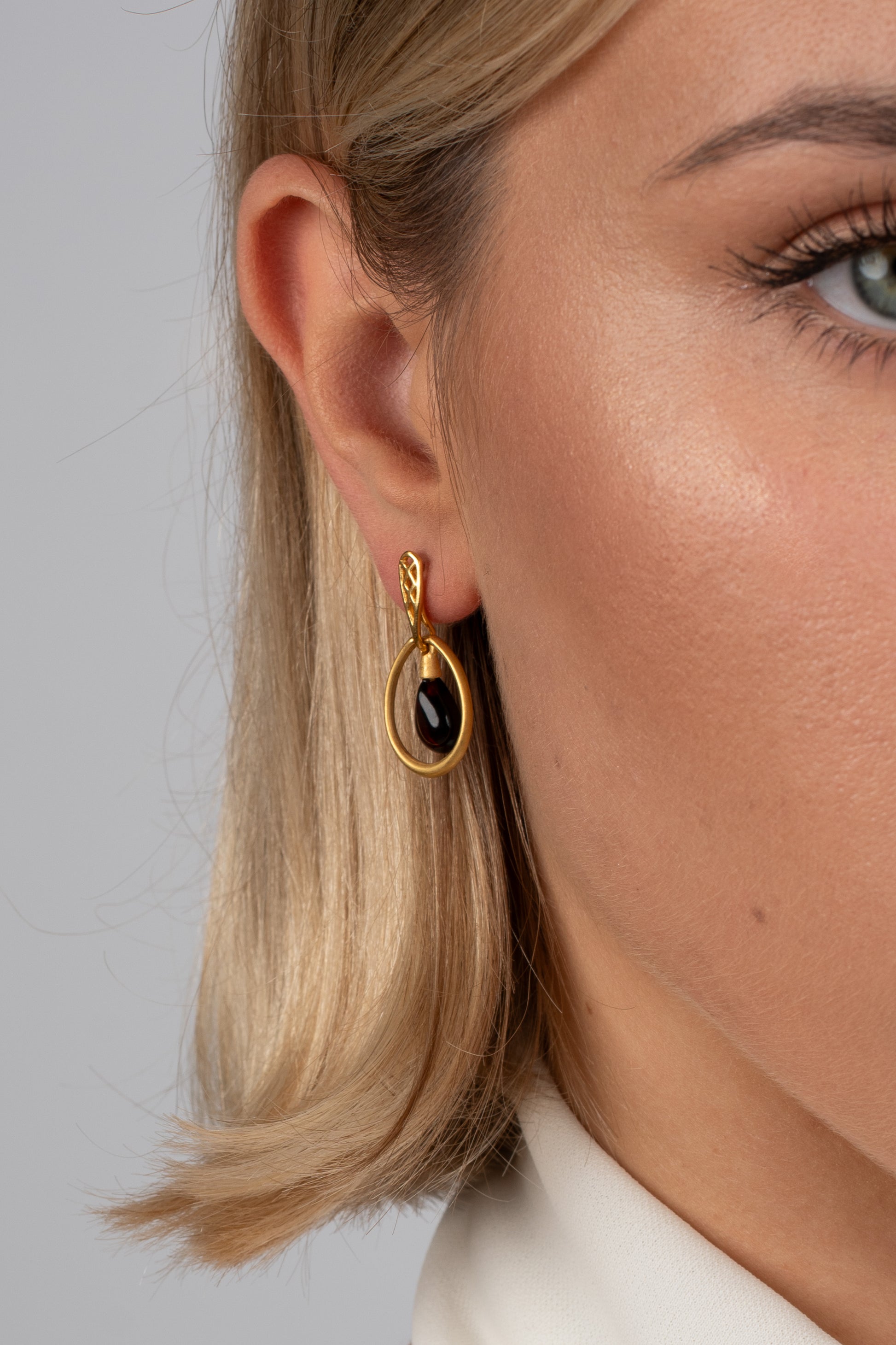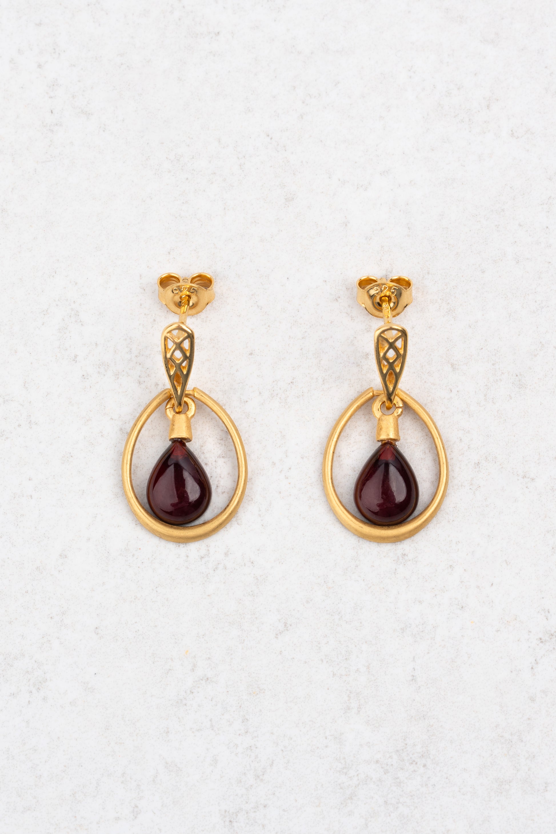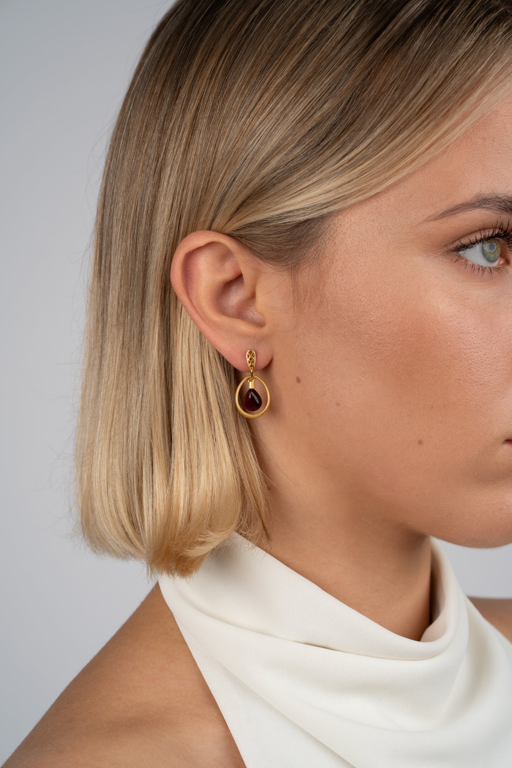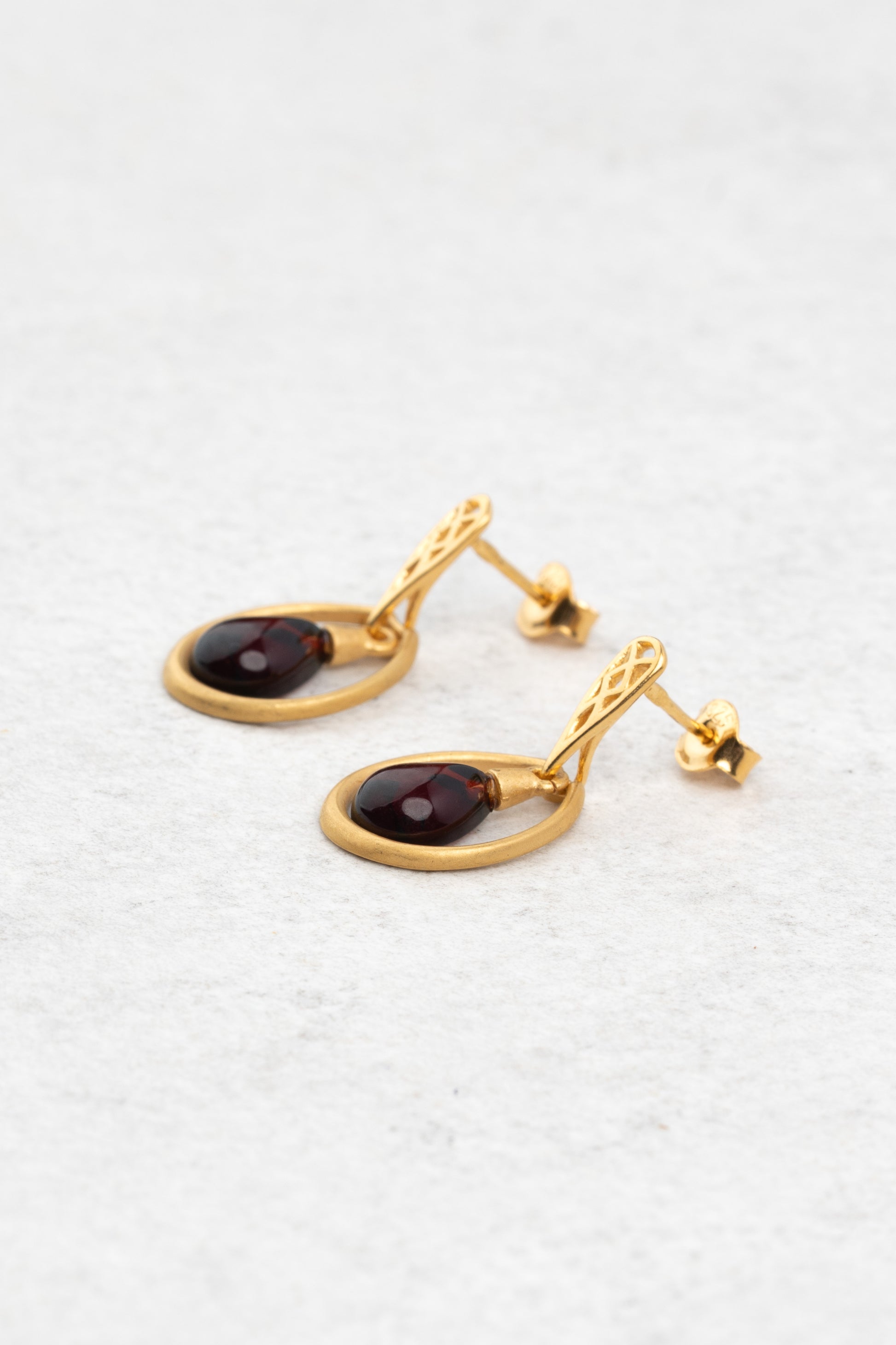 Paauksuoti gintaro auskarai su vyšniniu gintaru „Umbra Solis"