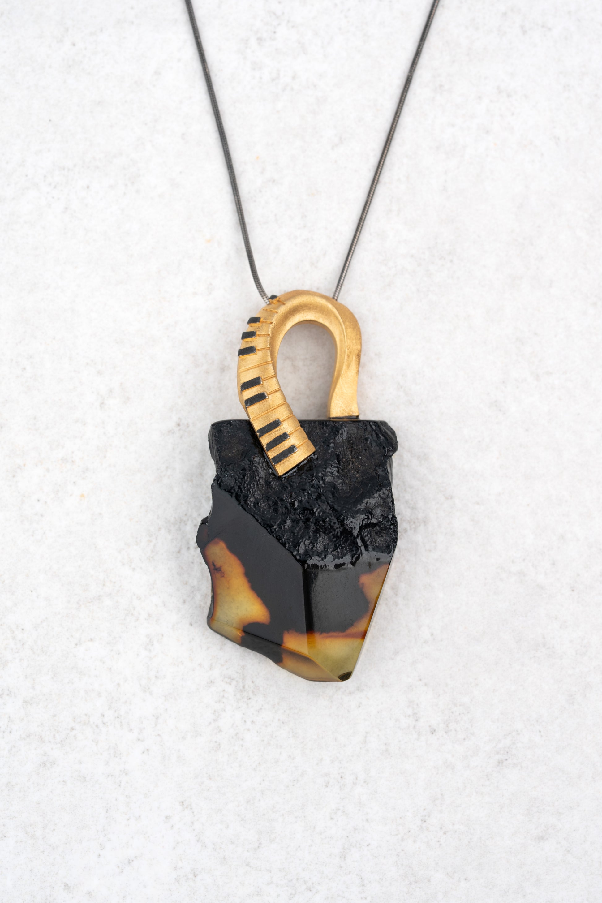 Šis kūrinys, pasižymintis neapdorotu tamsaus Baltijos gintaro deriniu su 24 karatų auksu padengtu akcentu - fortepijono klavišais. Įkūnija netobulumo ir harmonijos sąsają. Šiurkšti gintaro tekstūra kontrastuoja su auksiniu ritmu, simbolizuodama emocijas, gylį ir netobulume slypintį grožį.