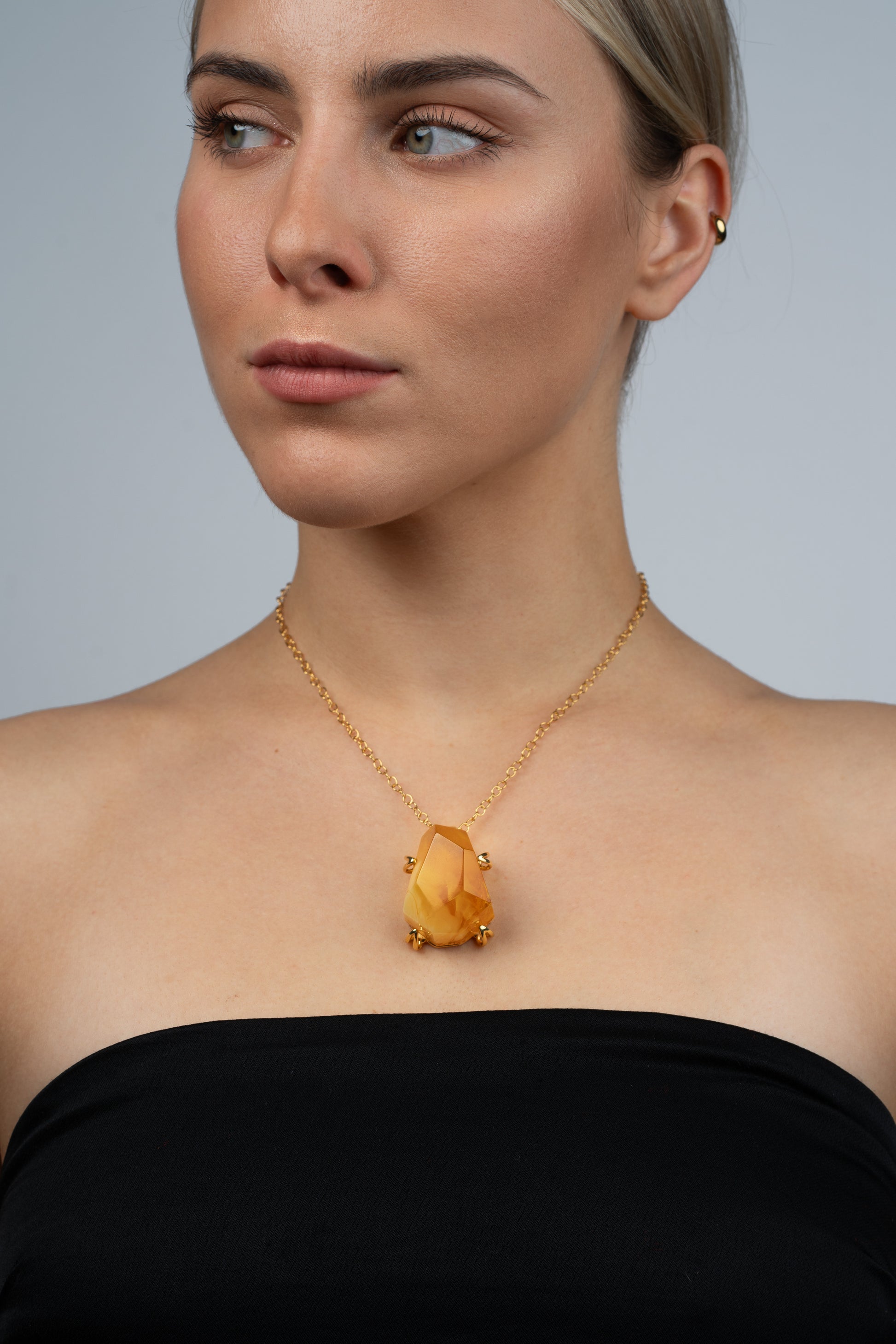 Vienetinis Paauksuotas Geltonojo Gintaro Kaklo Papuošalas „Aurora Mellea“