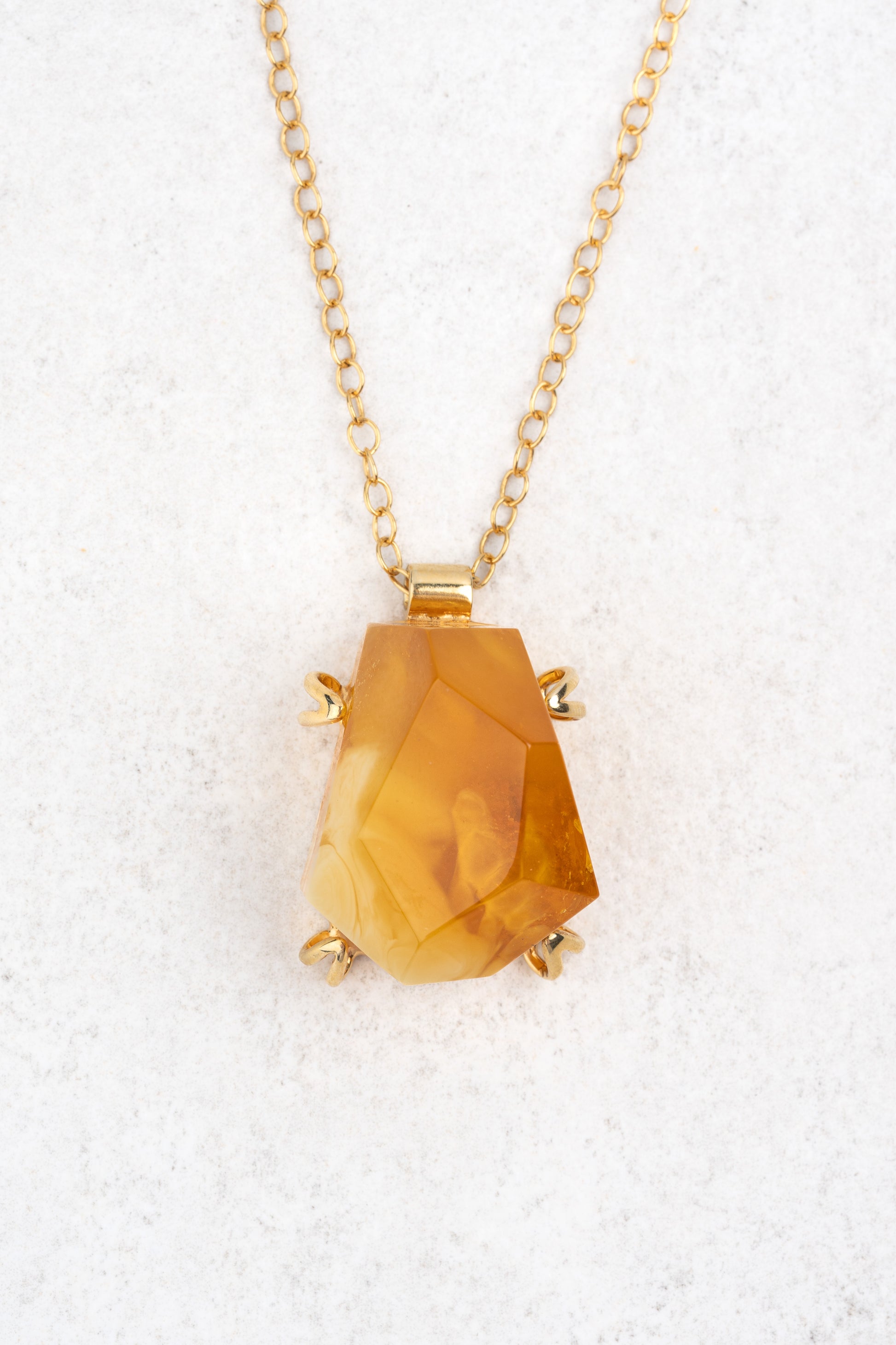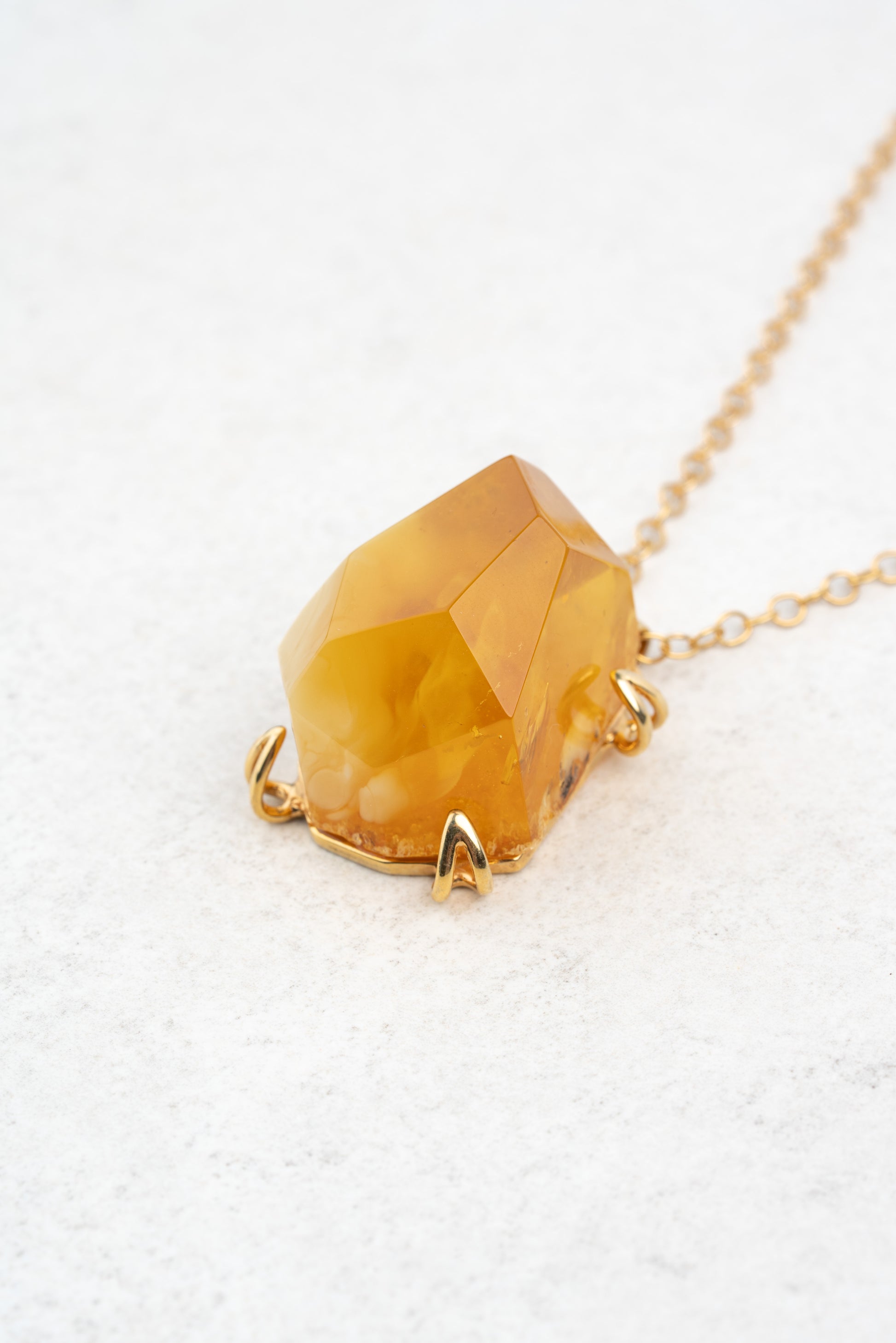 Vienetinis kūrinys – nėra dviejų vienodų gintarų. Briaunuotas dizainas išryškina vidinį gintaro grožį, atspindėdamas šviesą švelniu, švytinčiu spindesiu.