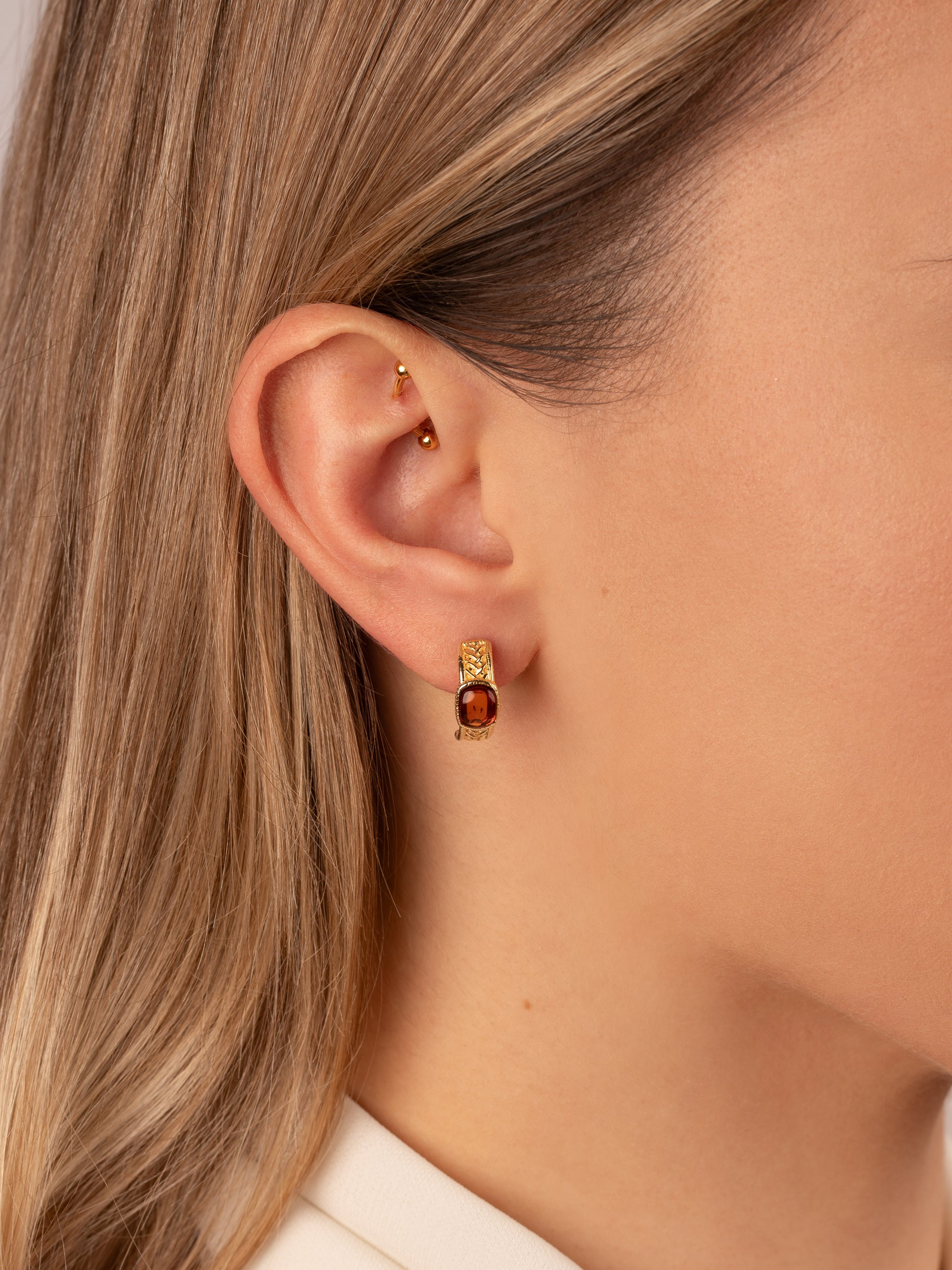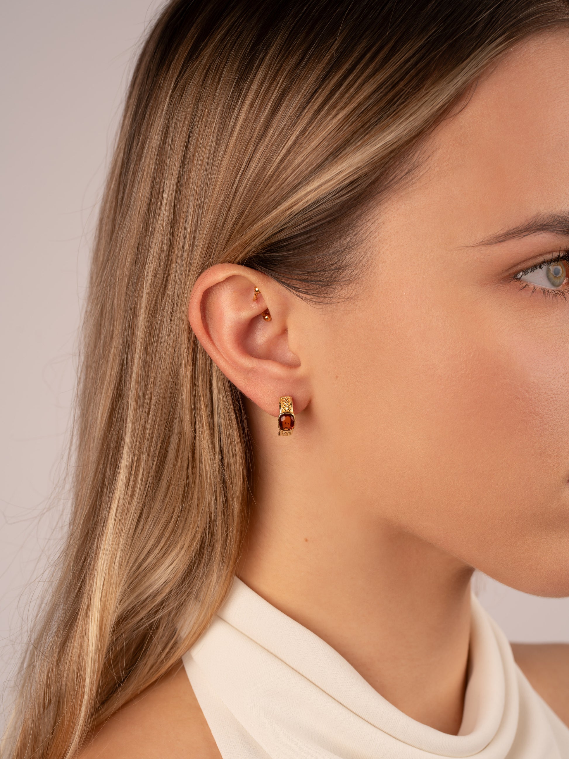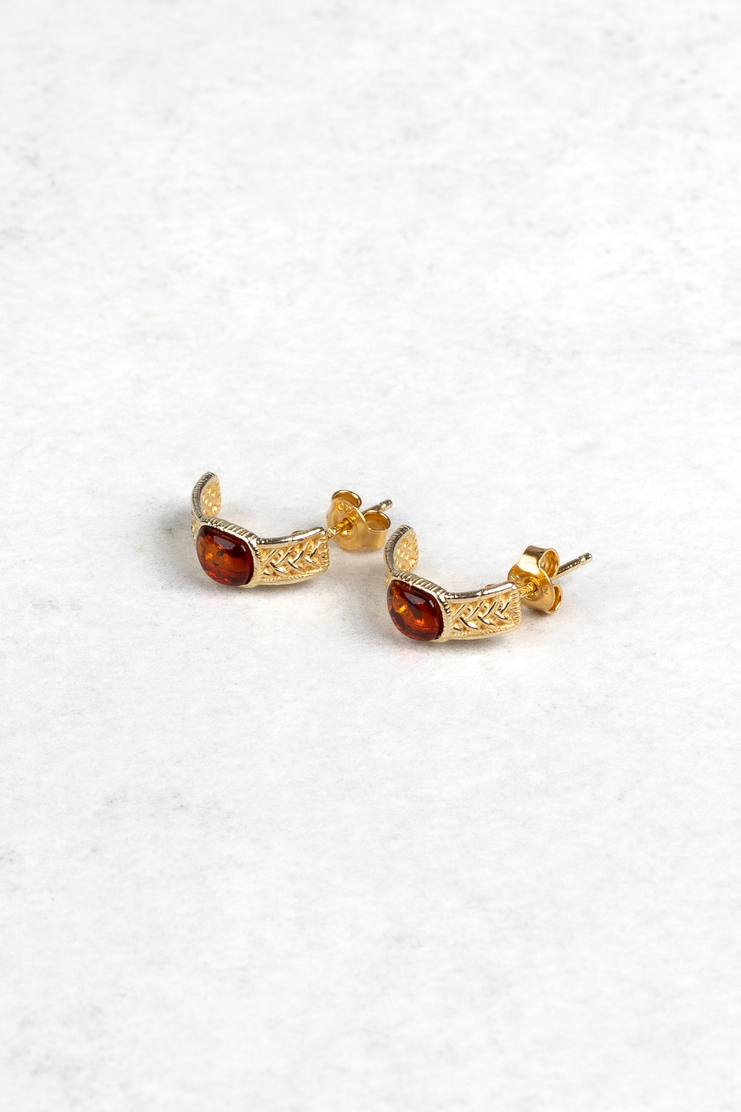 Apzeltīti auskari ar medus krāsas dzintaru "Aurum Coronis"