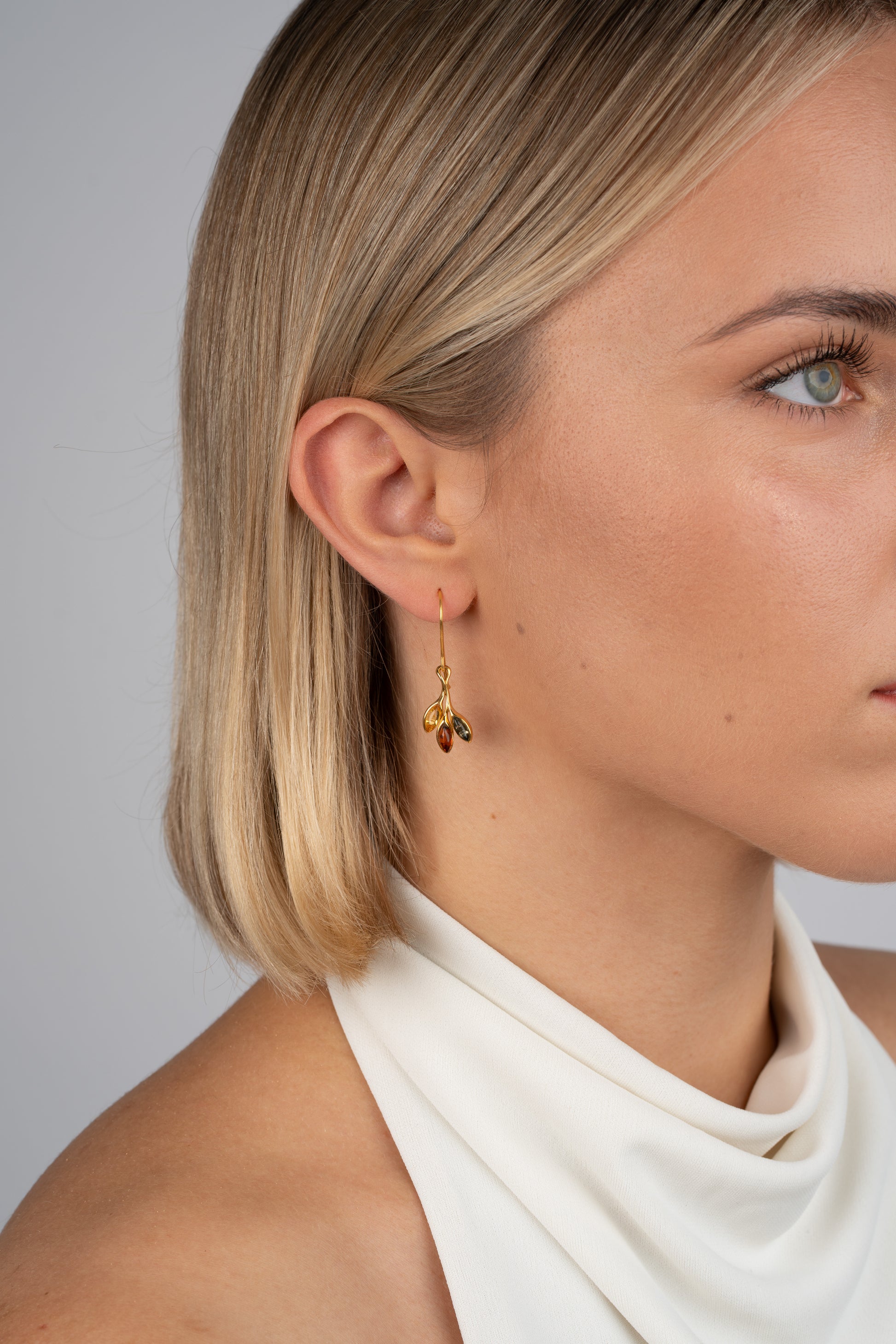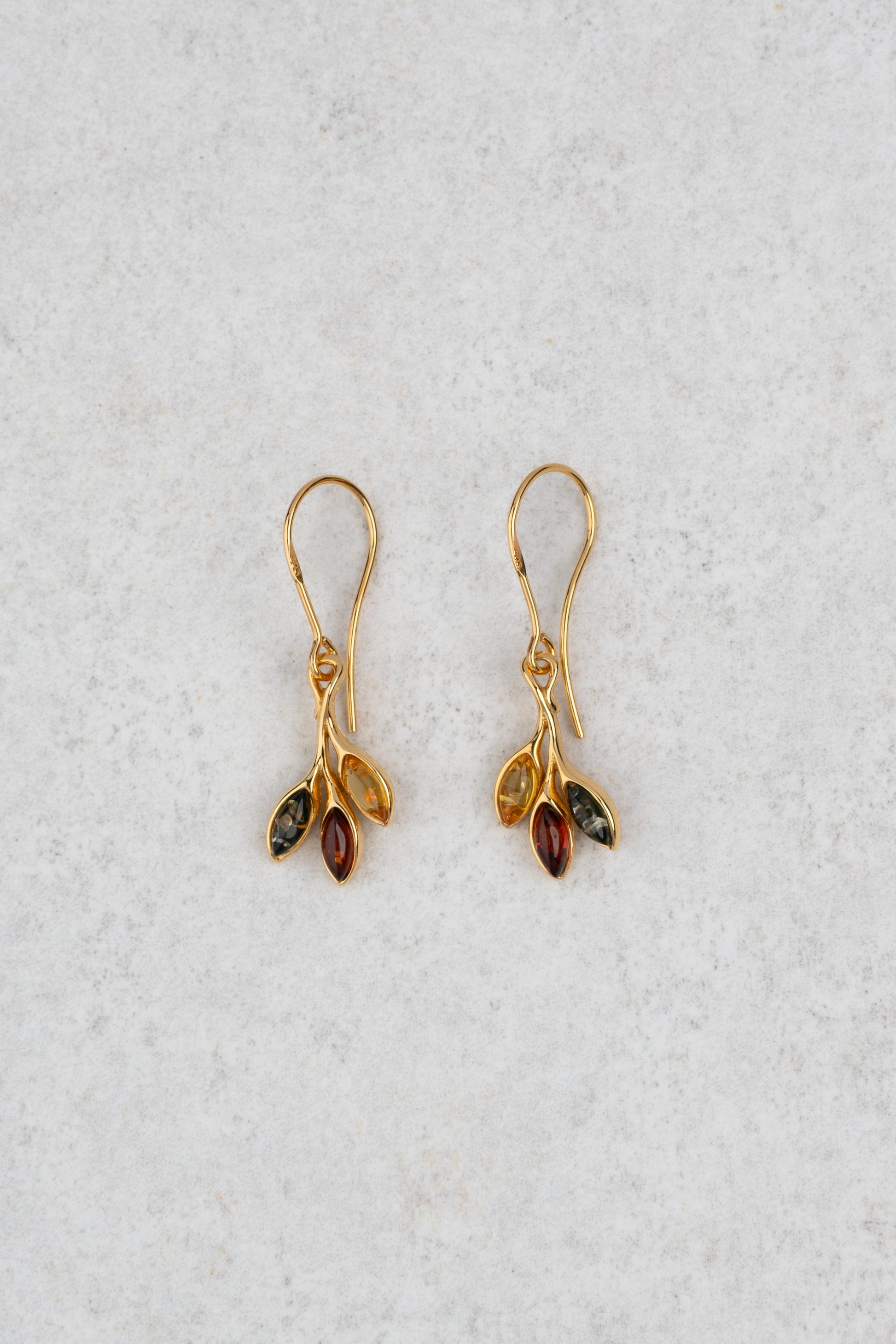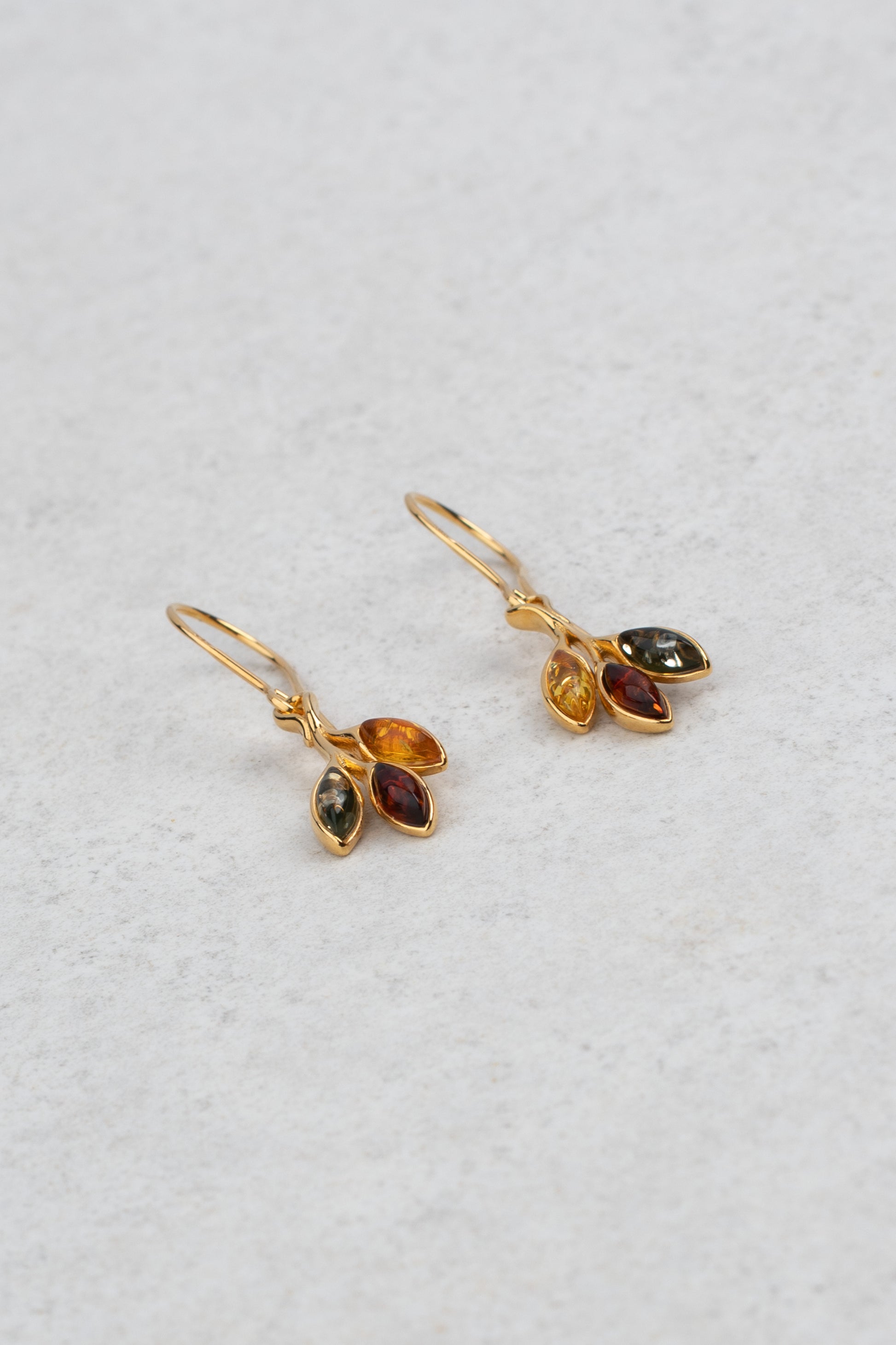 Paauksuoti auskarai su įvairiaspalviu gintaru "Lignum Aureum"