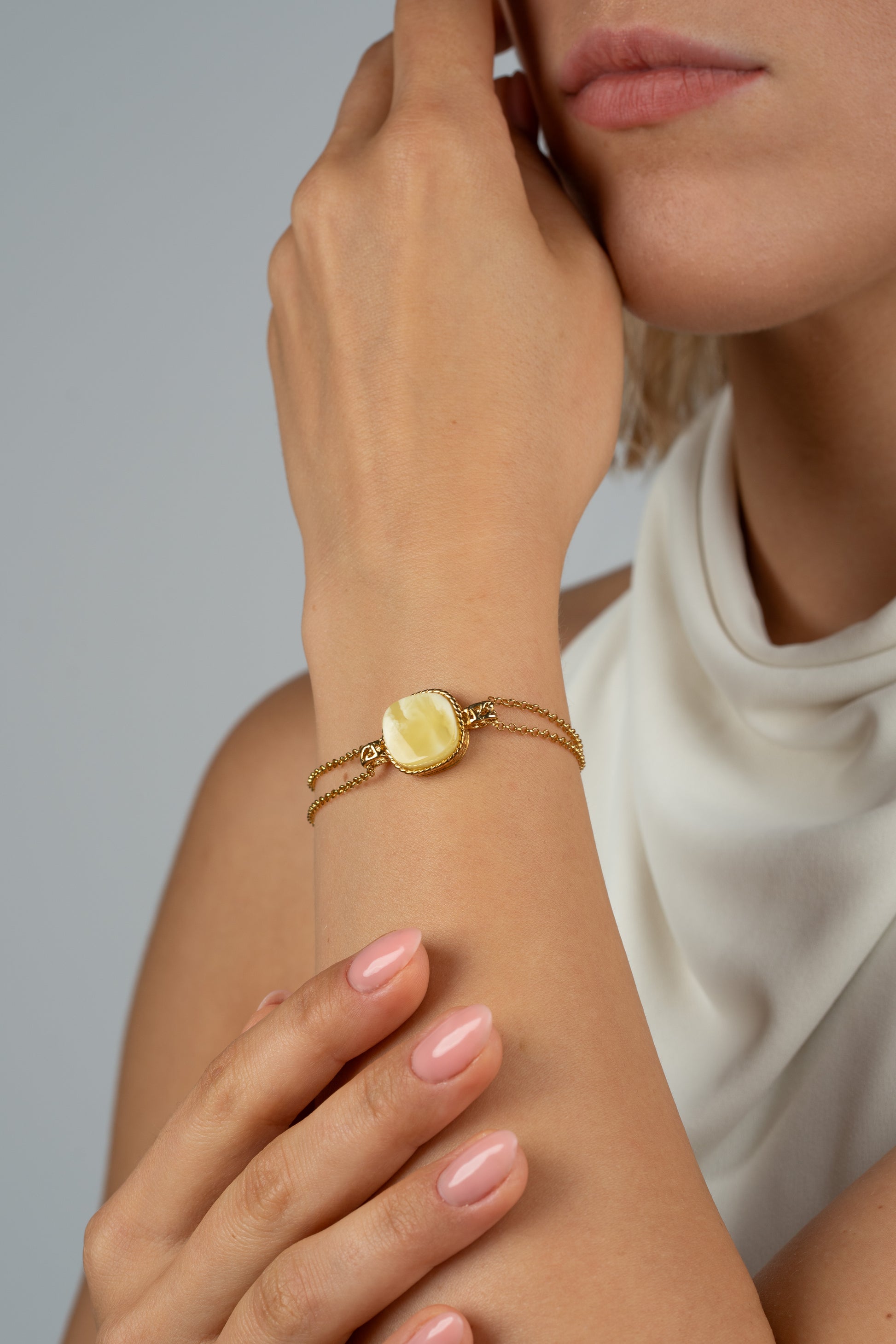 Paauksuota gintarinė apyrankė su pieniniu gintaru „Lumen Vocatum“