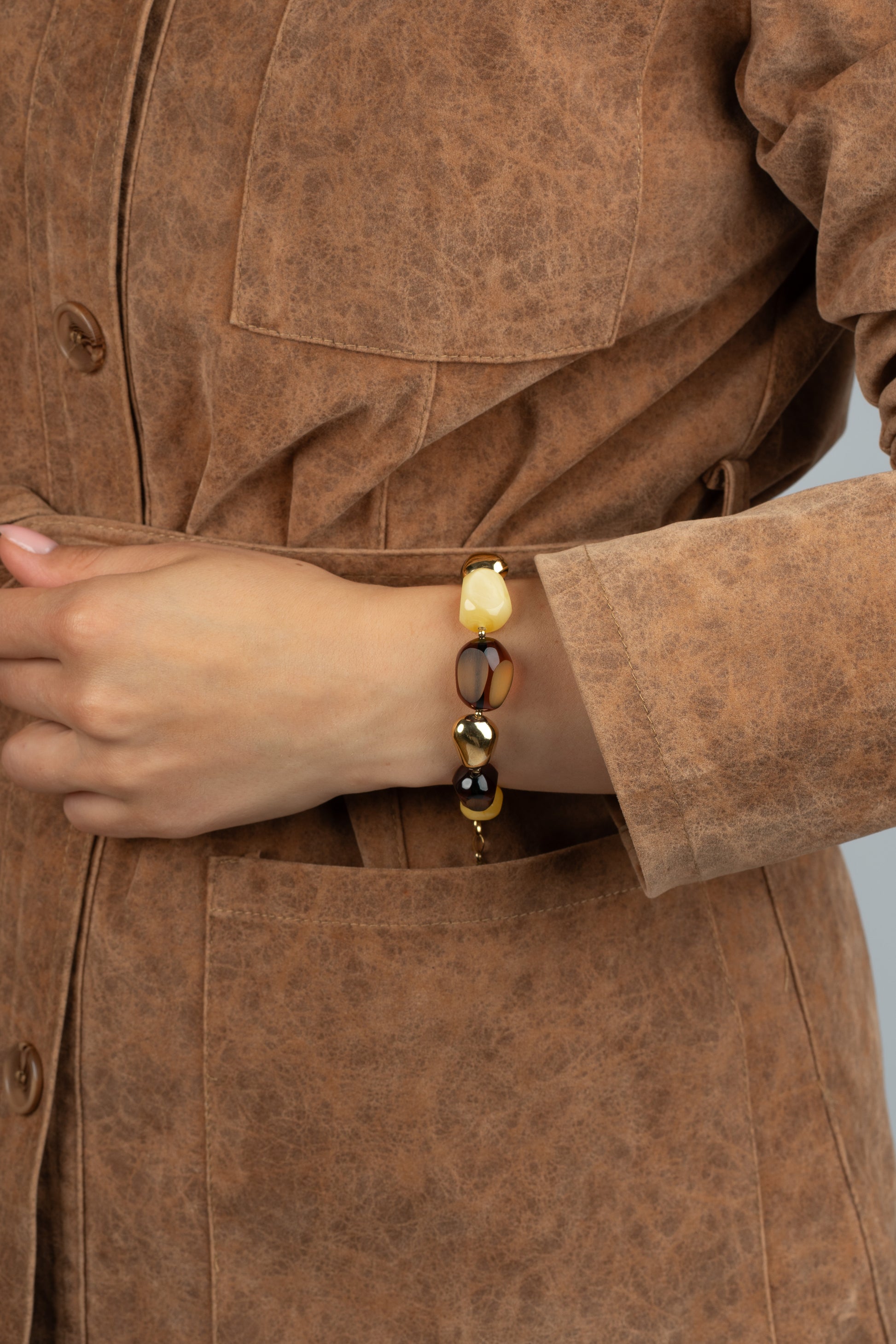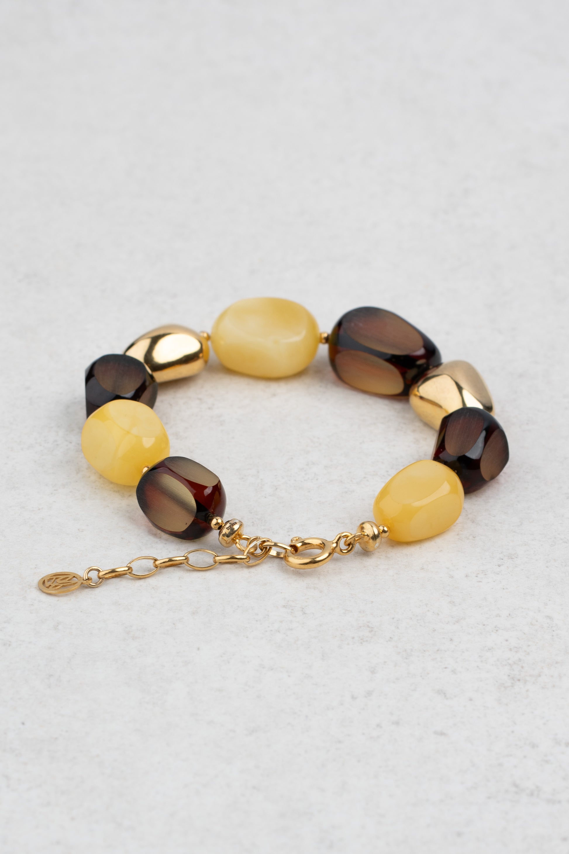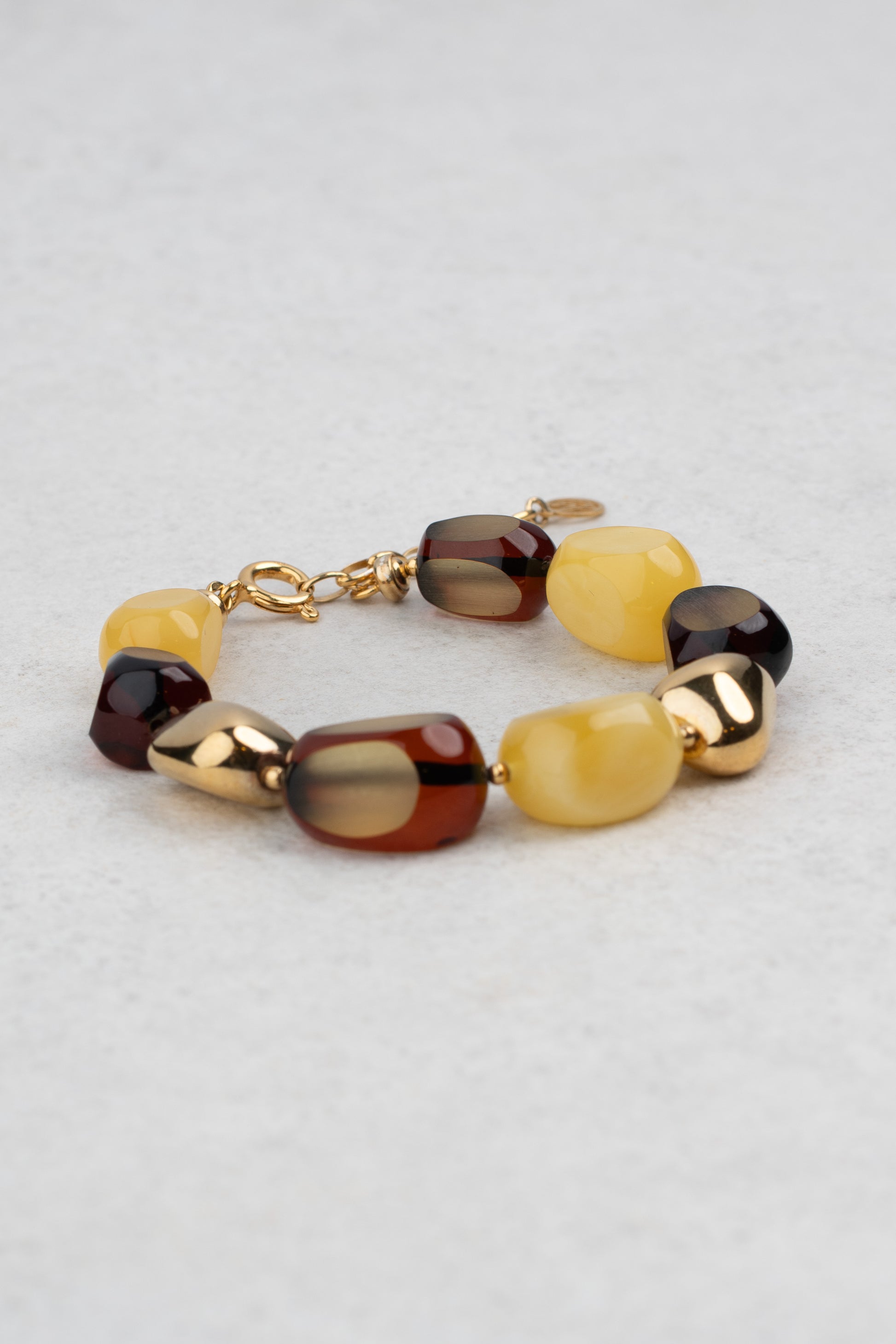 Paauksuota įvairių spalvų gintarinė apyrankė „Succinum Veritas“