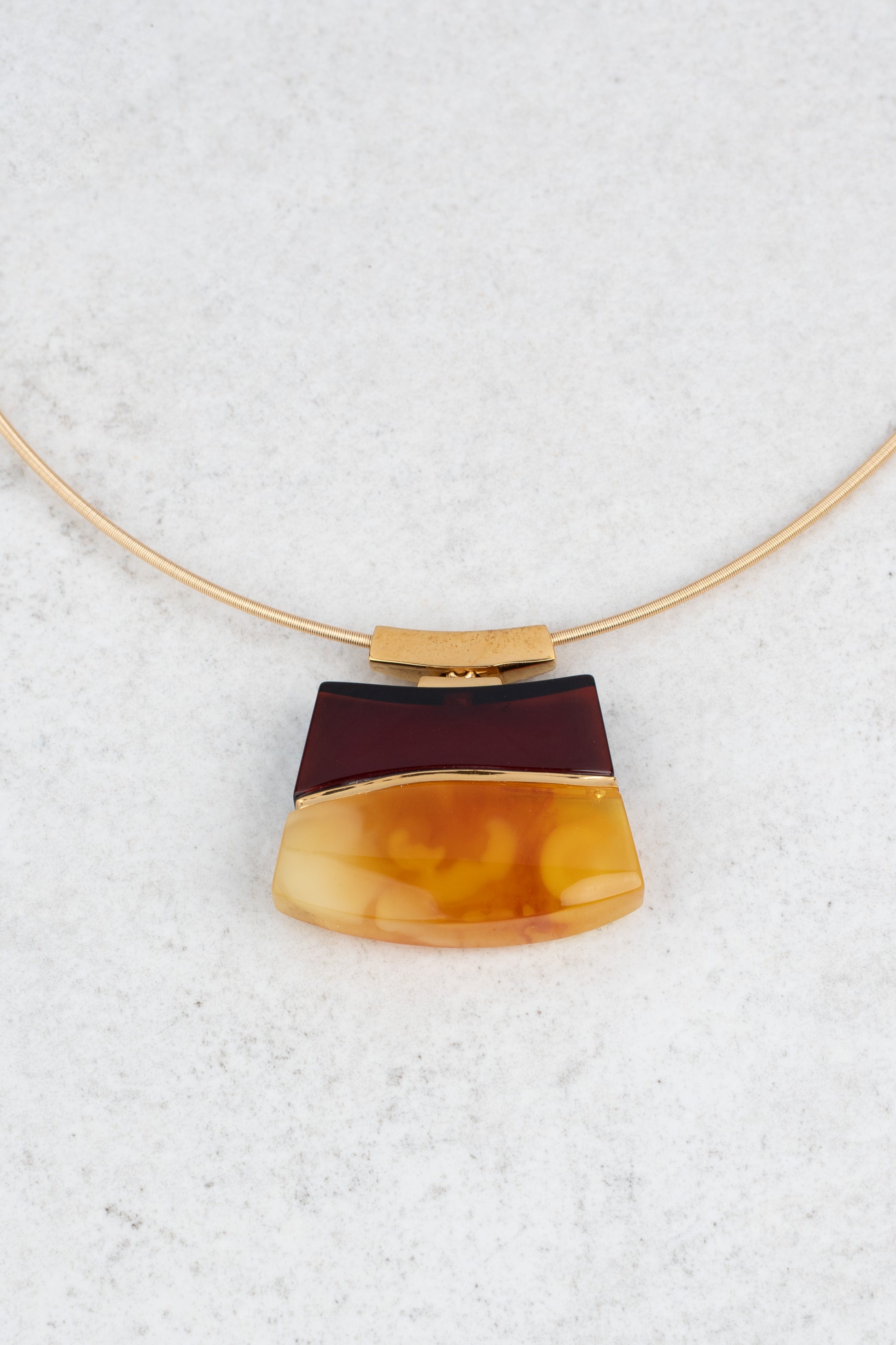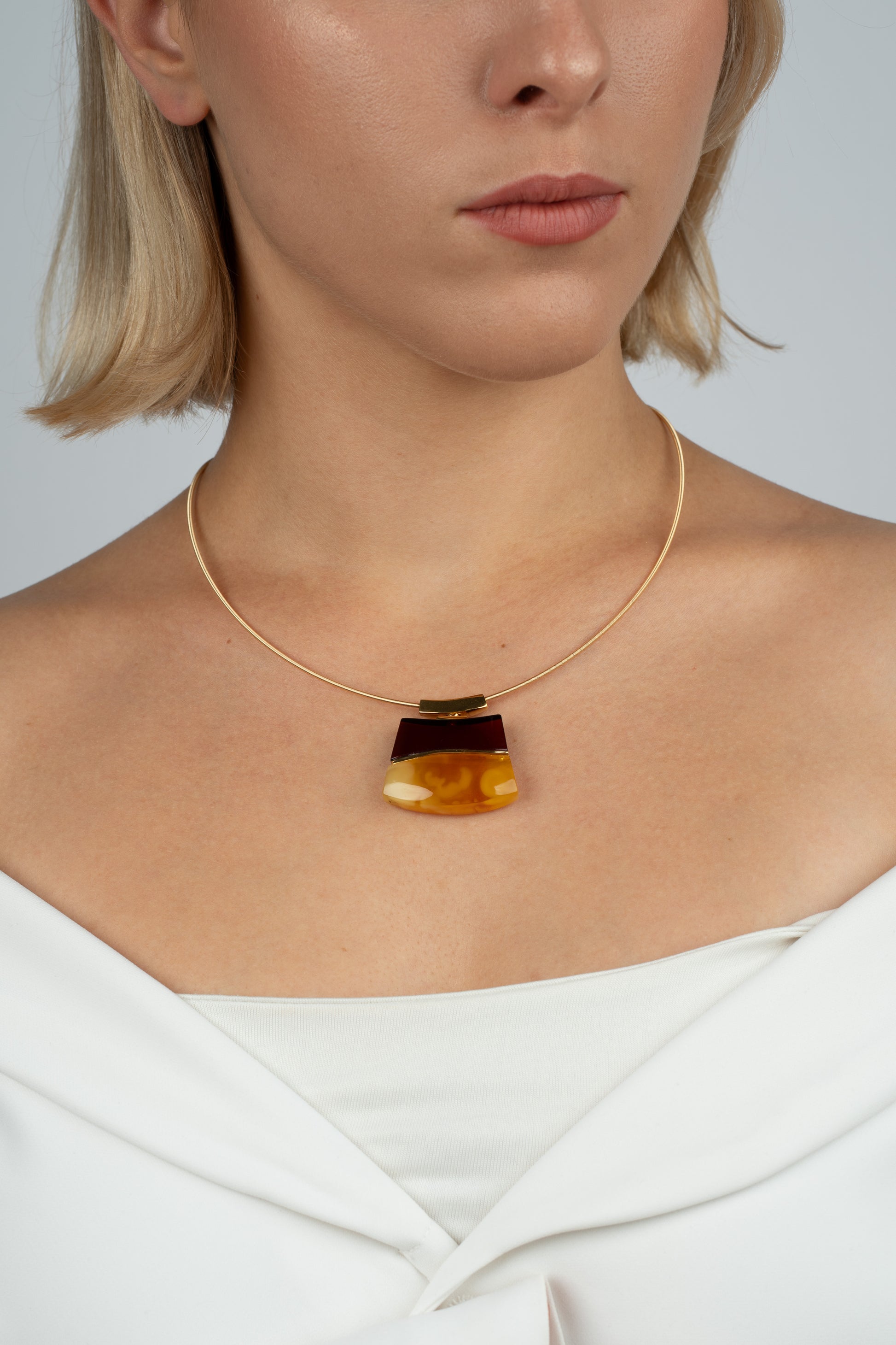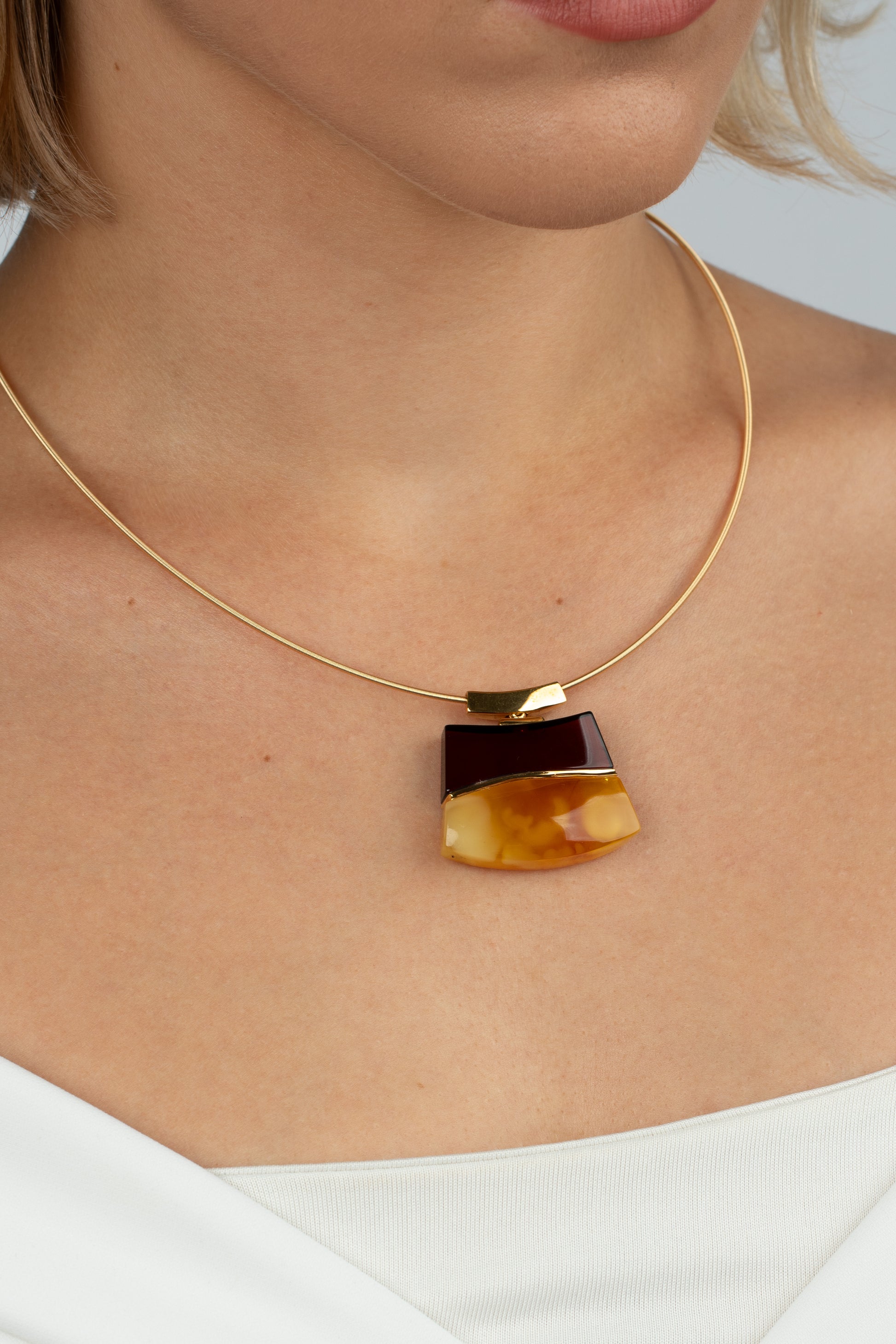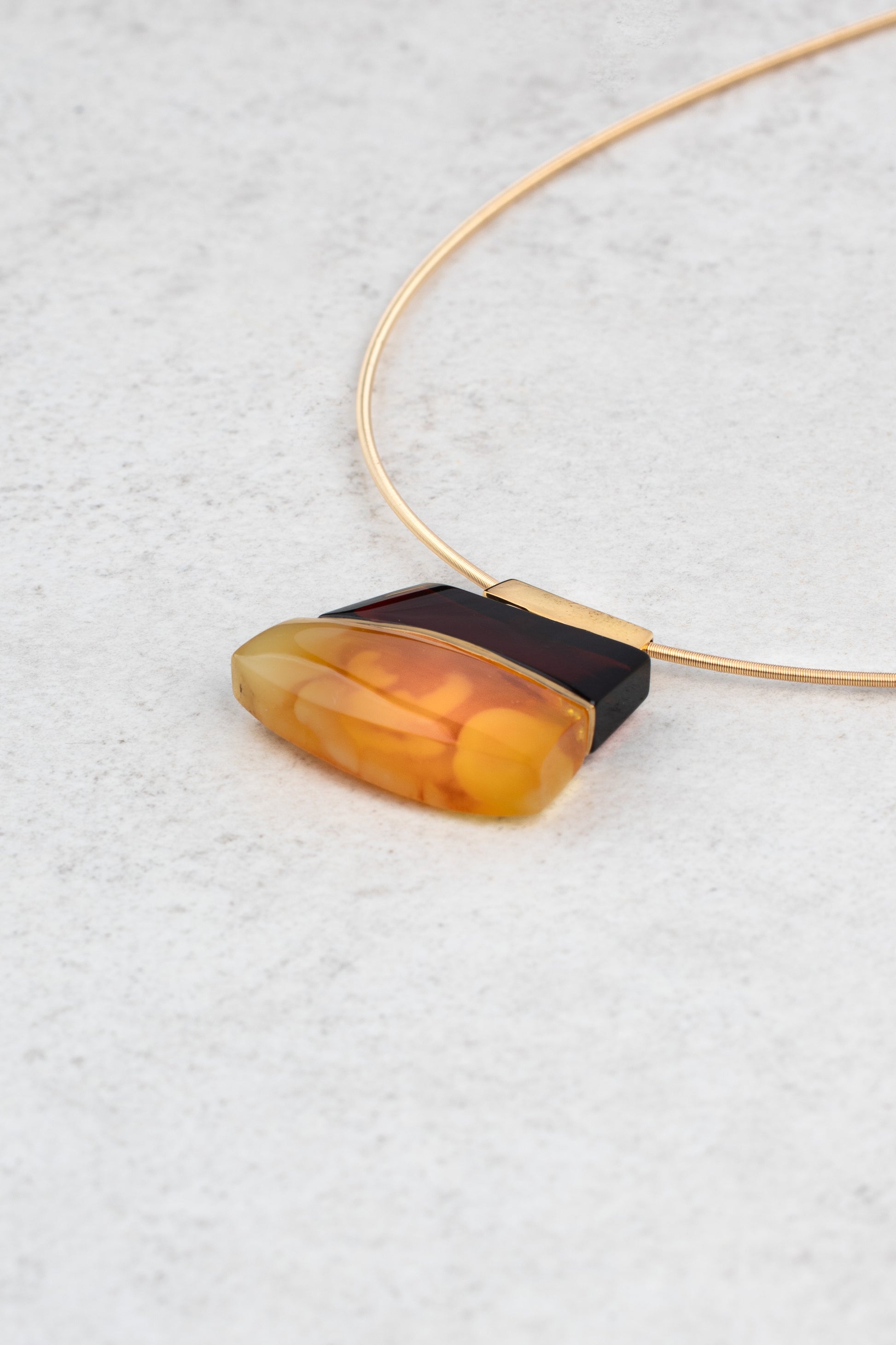 Paauksuotas gintarinis pakabukas su medaus ir vyšninės spalvos gintaru „Anima Solaris“