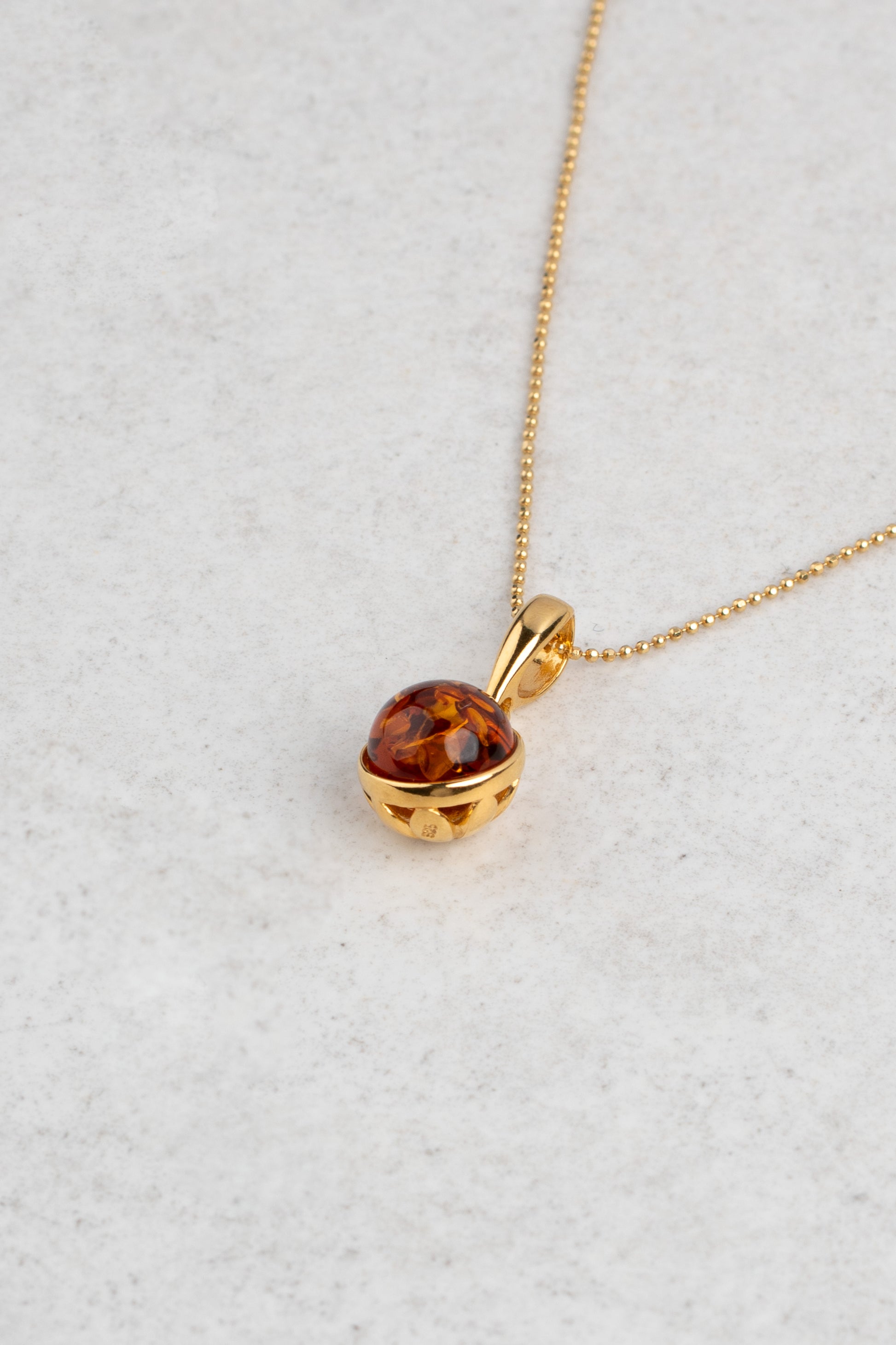 Paauksuotas gintarinis pakabukas su medaus spalvos gintaru „Aurora Viventis“