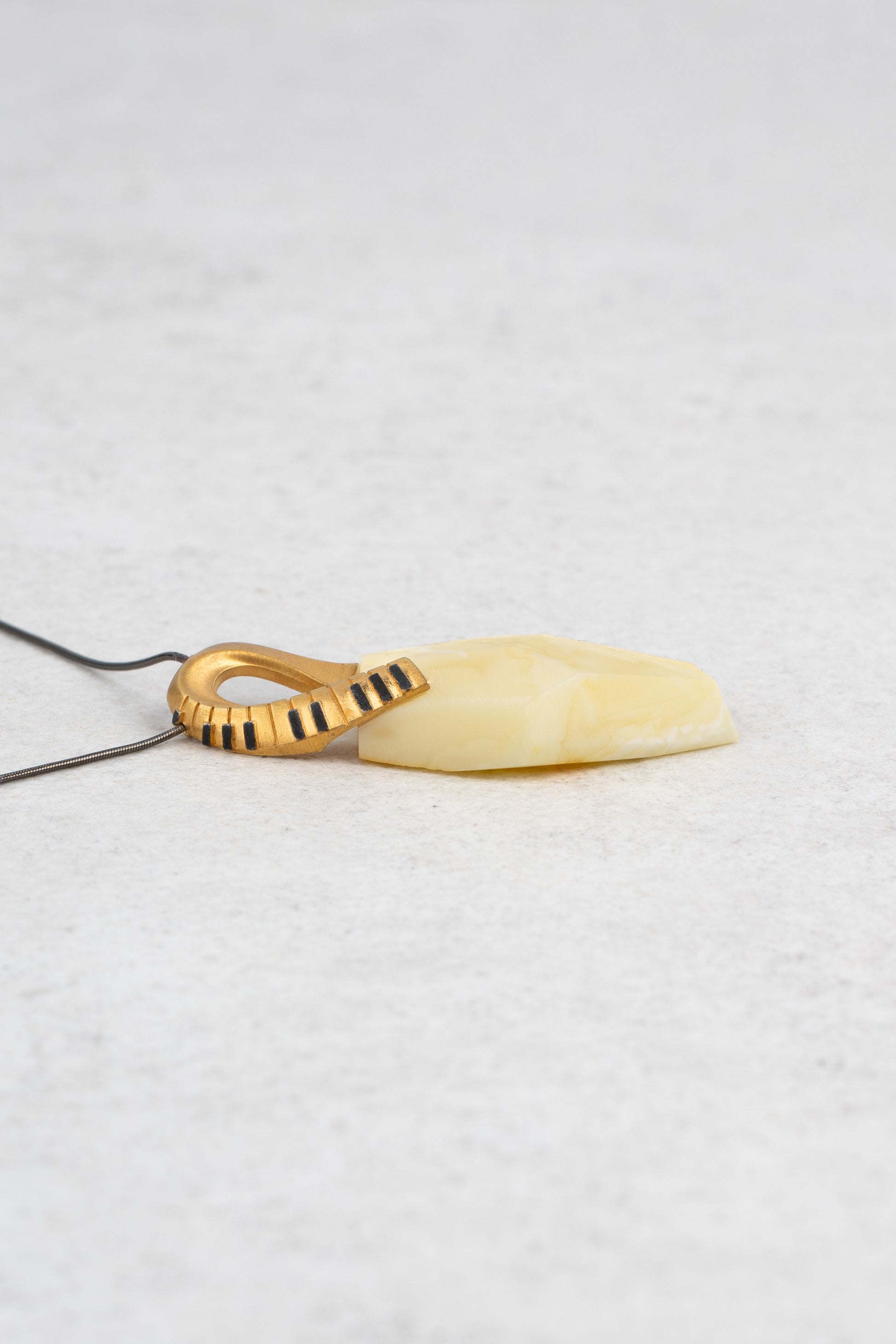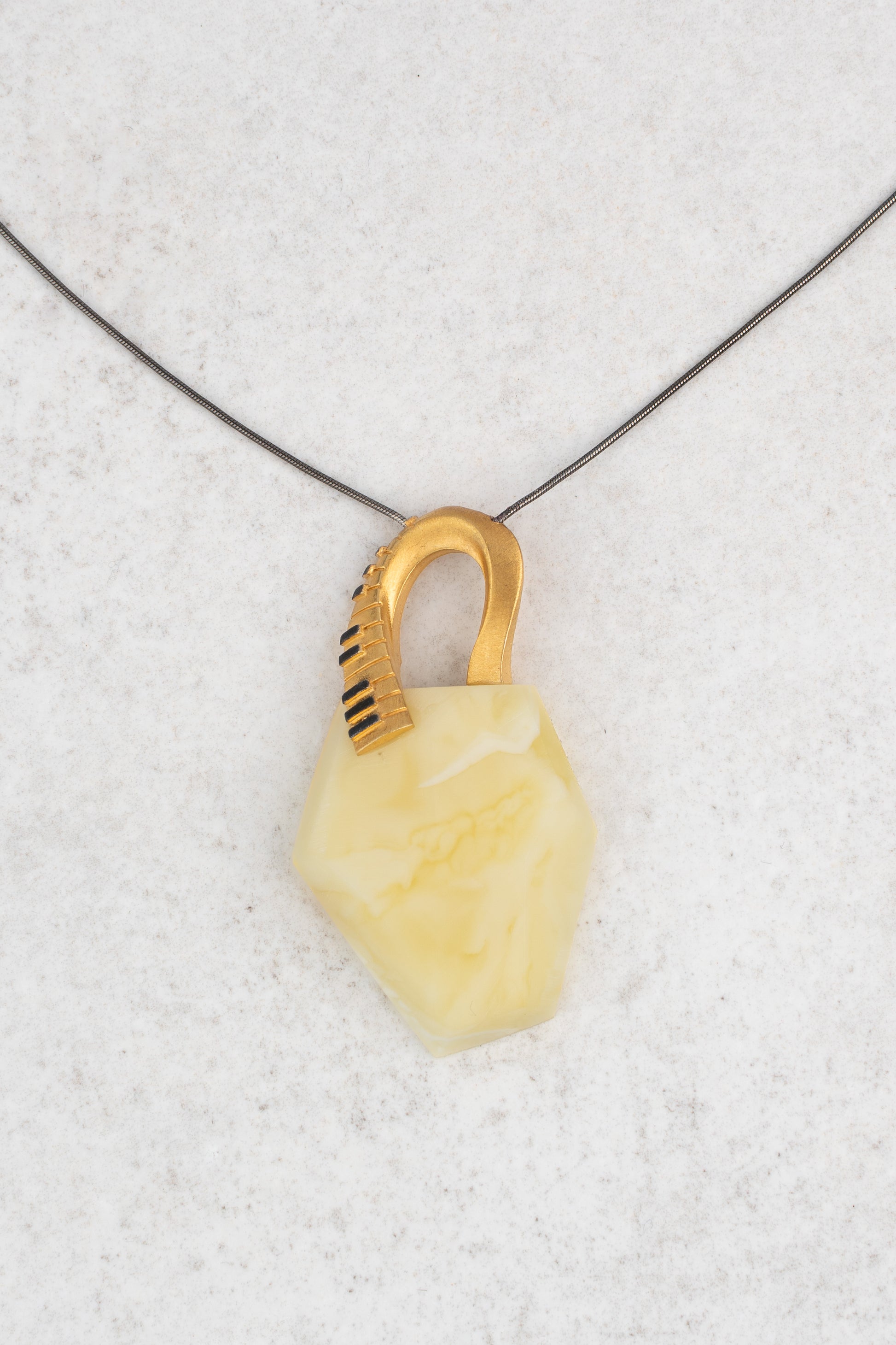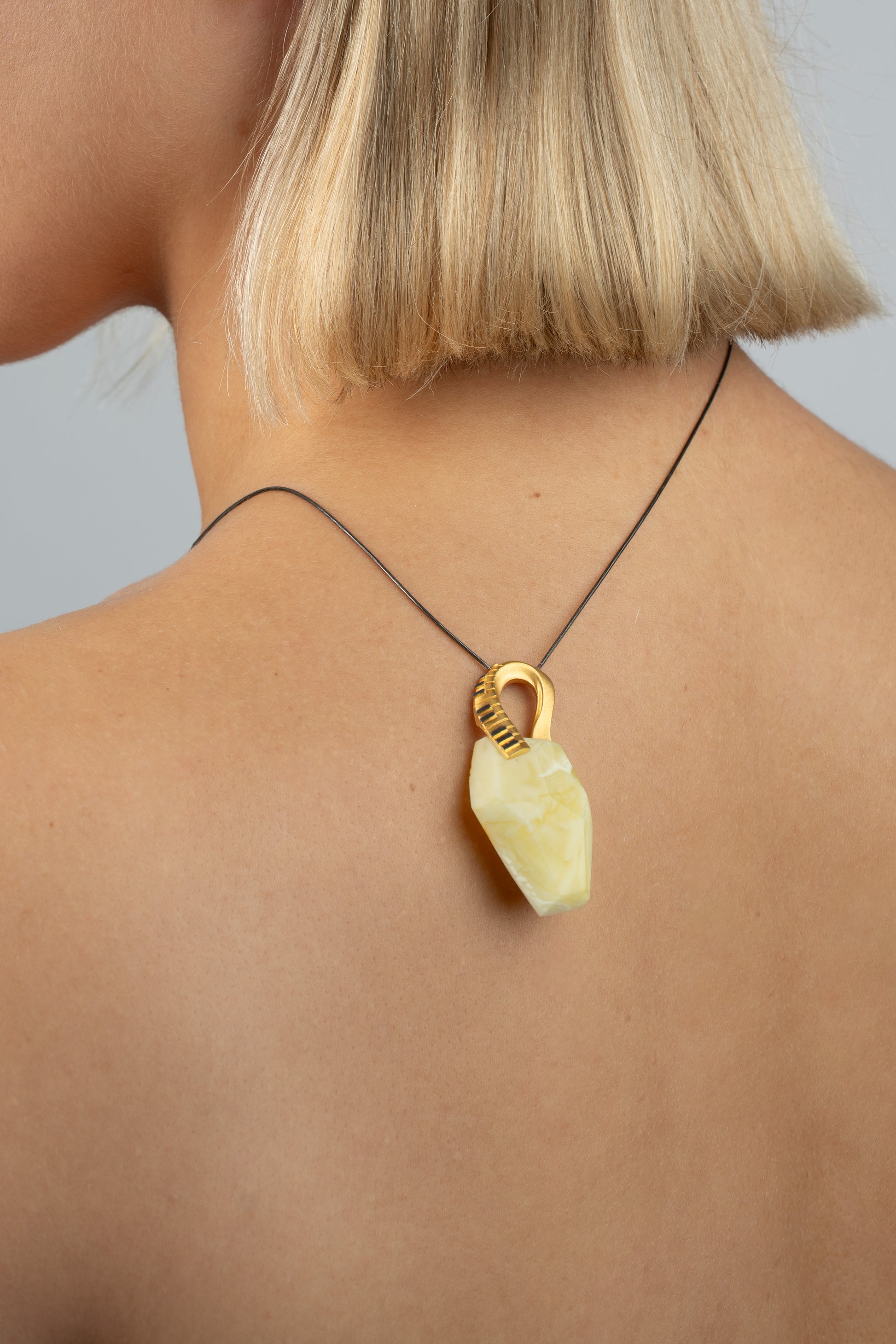 Paauksuotas gintarinis pakabukas su pieniškos spalvos gintaru „Prisma Mellis“