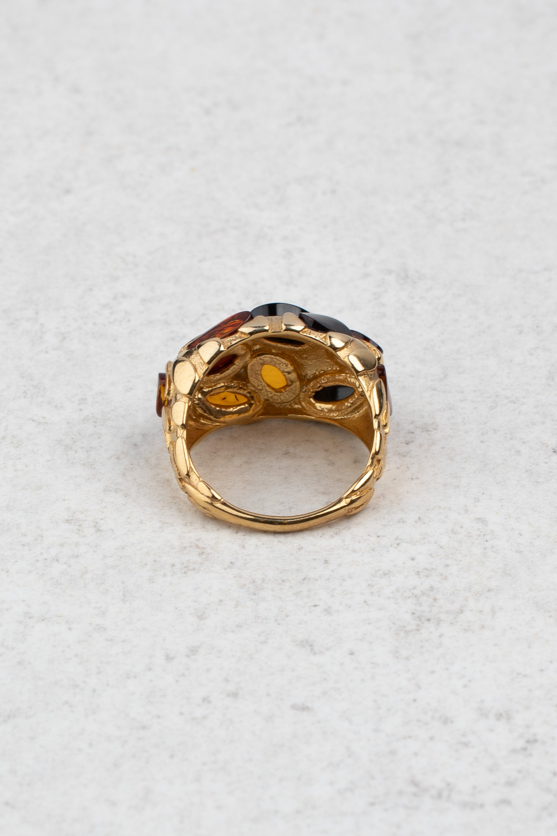 Paauksuotas gintarinis žiedas su medaus ir vyšnios spalvos gintaru "Mystica Aurea"