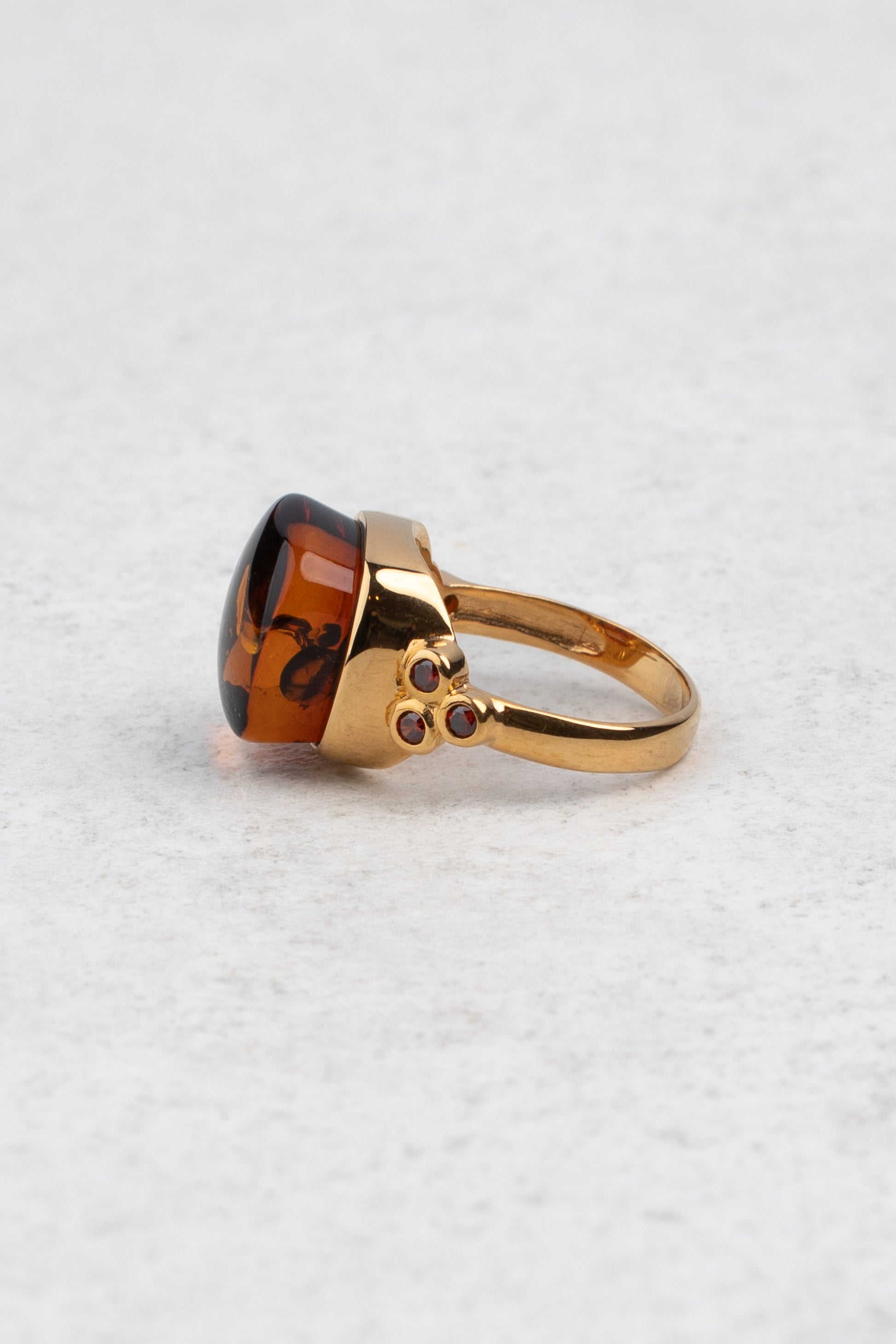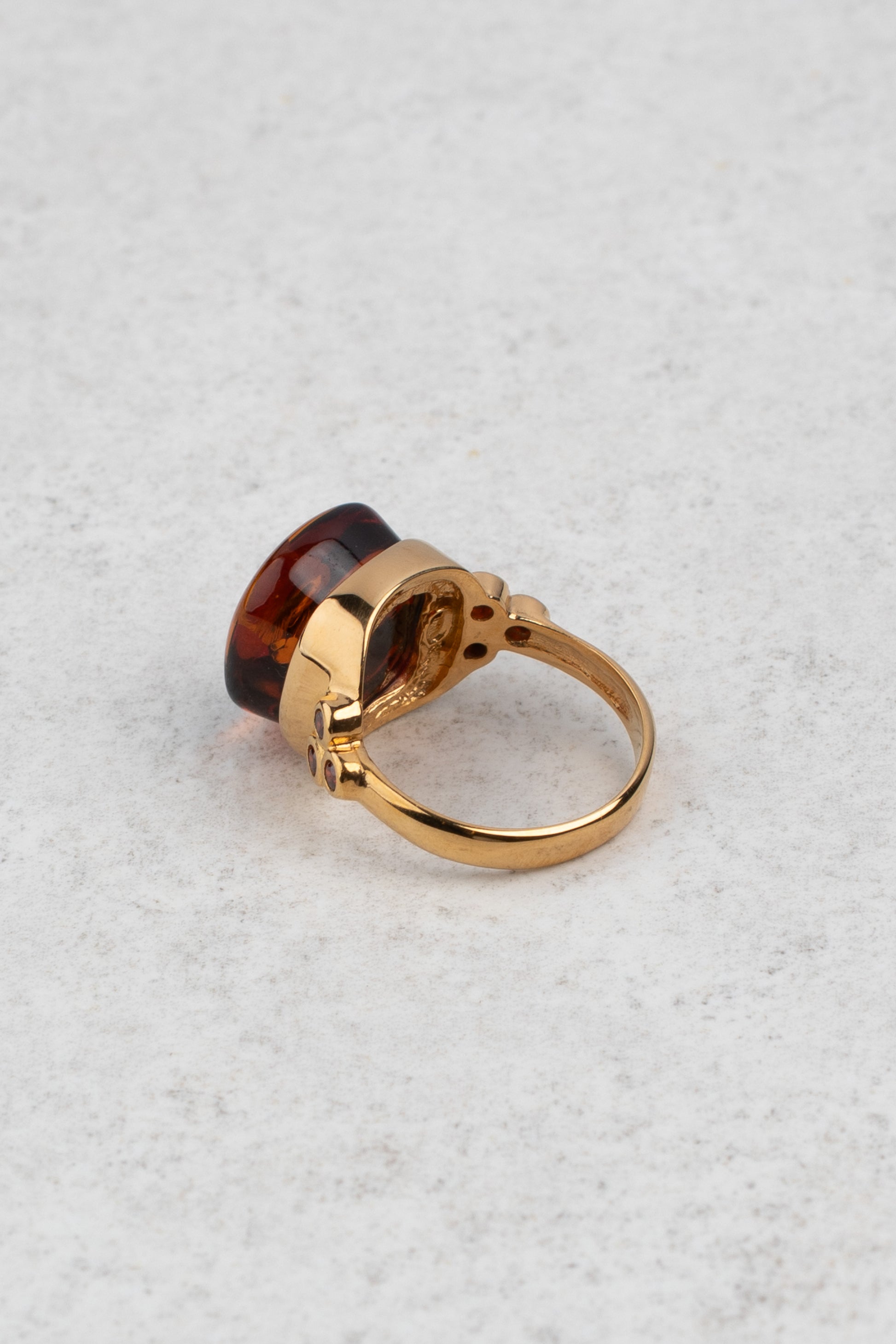 Paauksuotas gintarinis žiedas su medaus spalvos gintaru "Aurum Umbrae"