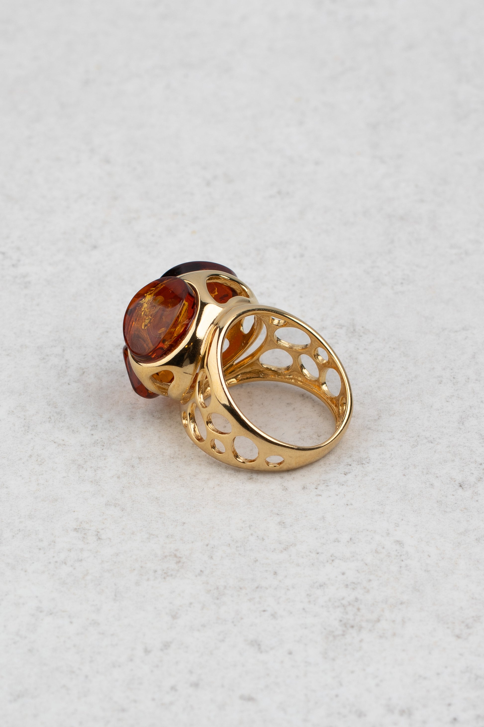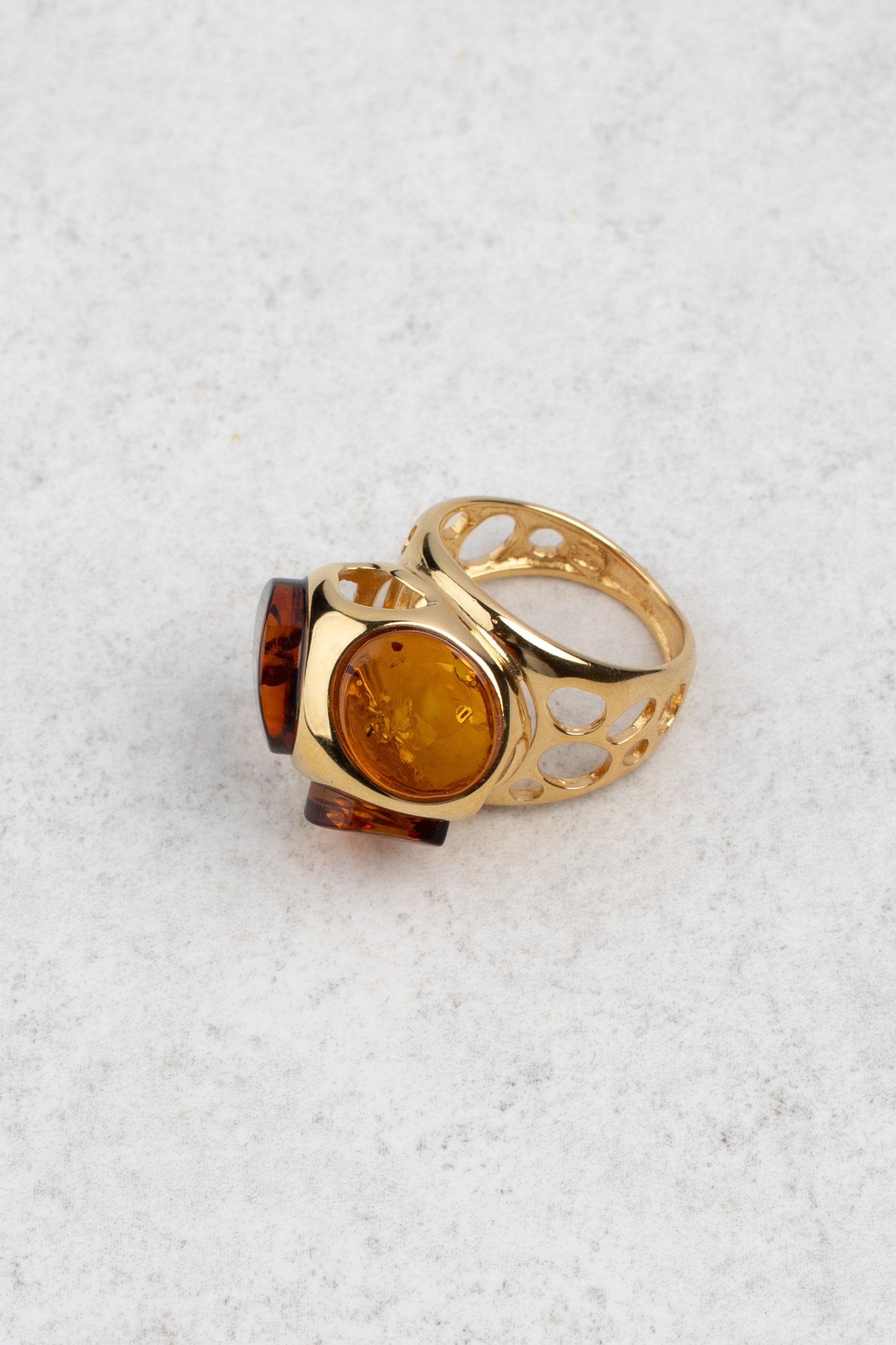 Paauksuotas gintarinis žiedas su medaus spalvos gintaru "Flos Mellis"
