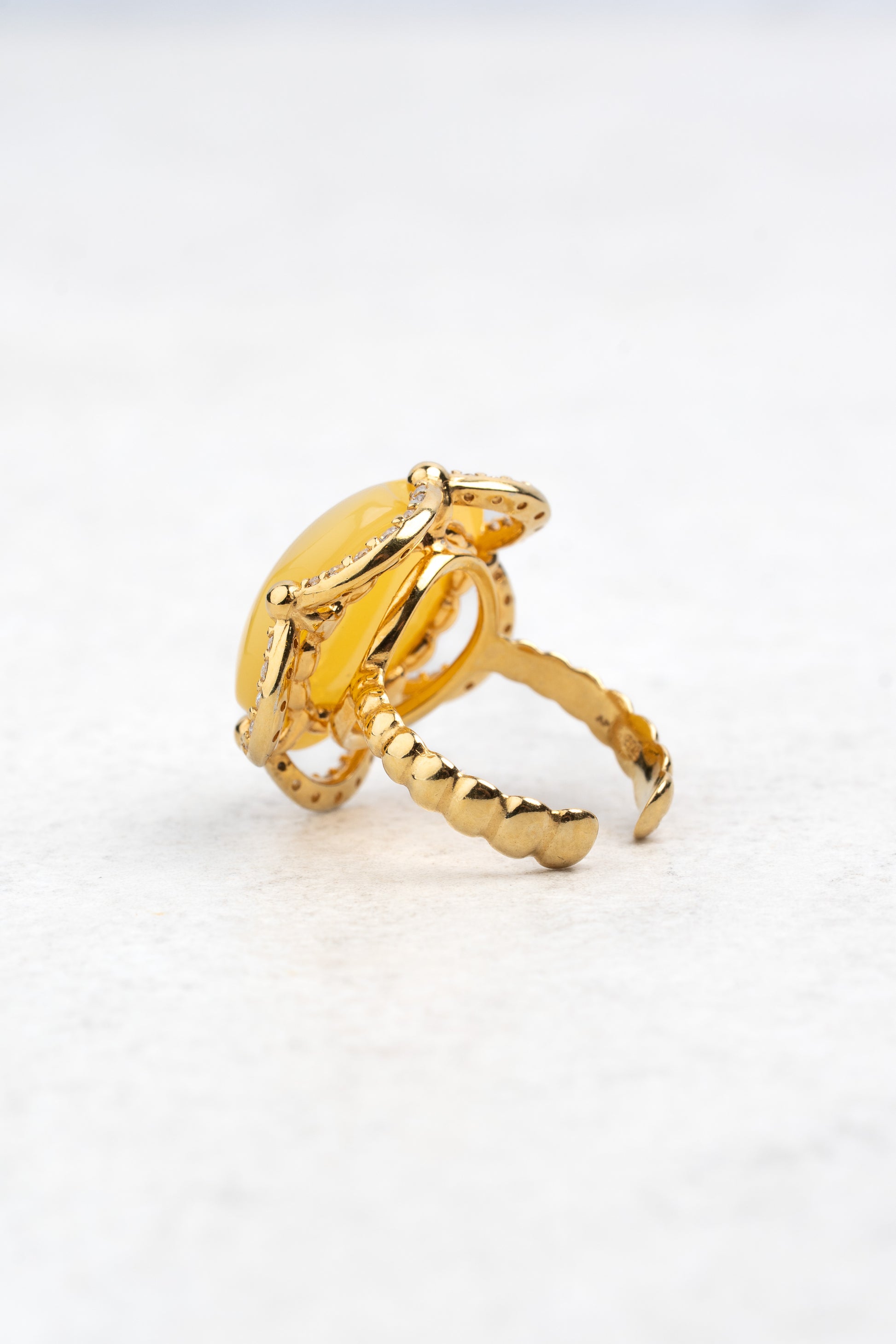 Prabangus paauksuotas gintaro žiedas „Sol Floreus“