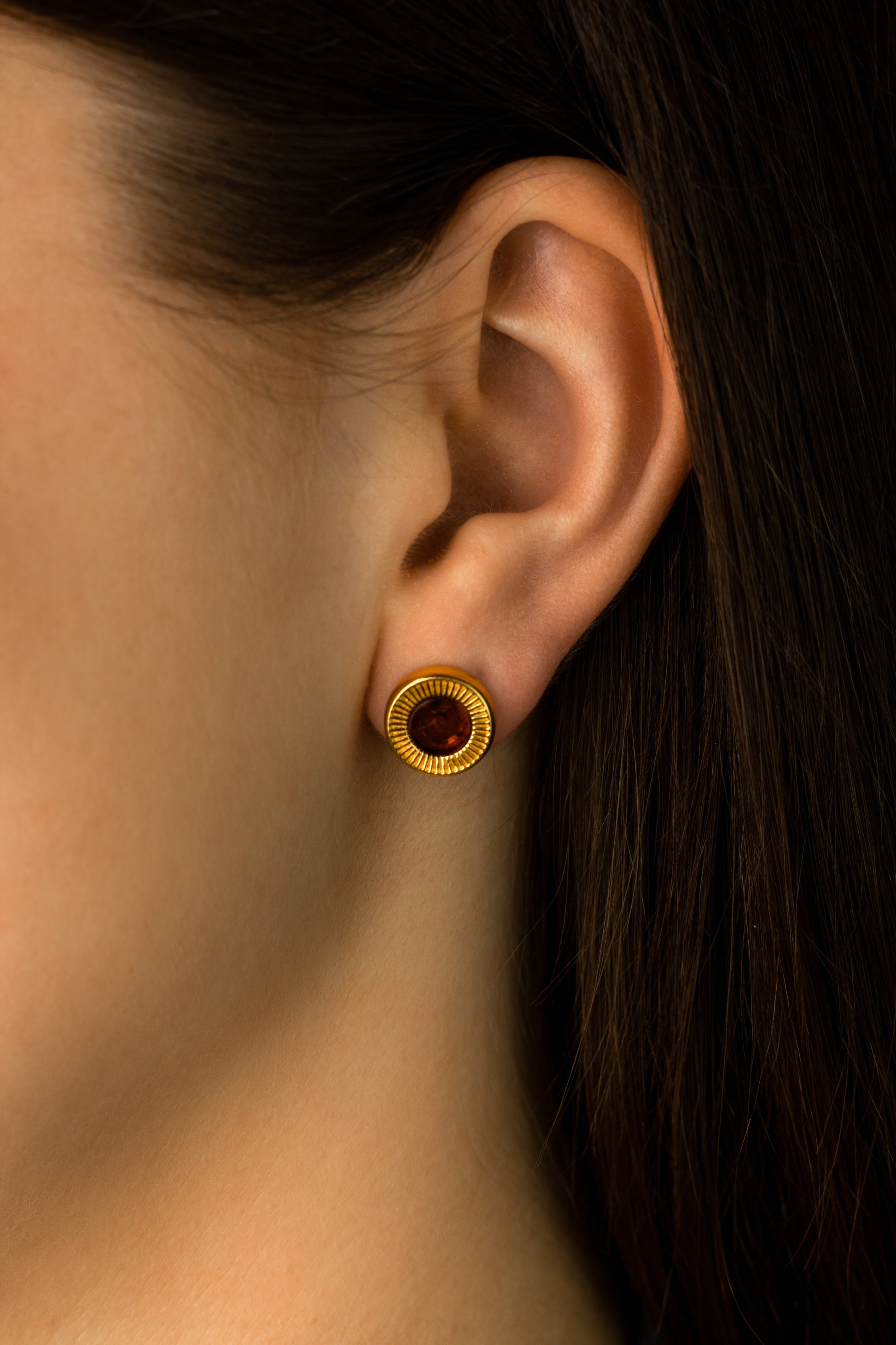 Paauksuoti gintariniai auskarai „Aurea Solis“ (lot. „Auksinė saulė“) – elegantiško dizaino auskarai su medaus spalvos Baltijos gintaru, apsupti detalaus, tekstūruoto 24 karatų paauksuoto rėmelio. Puikiai tinka tiek klasikiniam, tiek moderniam stiliui, išryškindami jų unikalų spindesį ir meistriškumą. Patogus užsegimas ir aukšta kokybė užtikrina, kad šie auskarai taps stilingu ir ilgaamžiu Jūsų papuošalų kolekcijos akcentu.