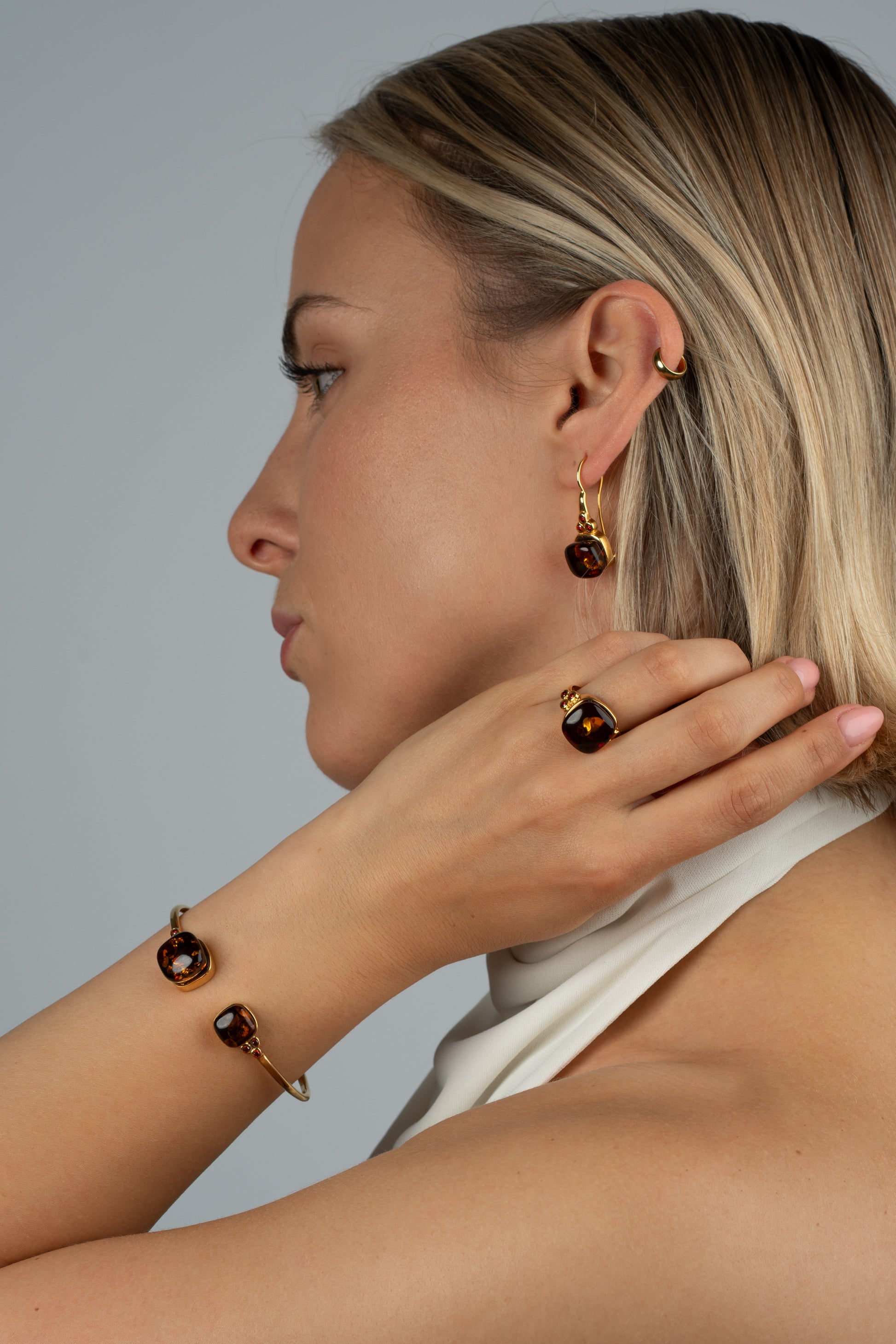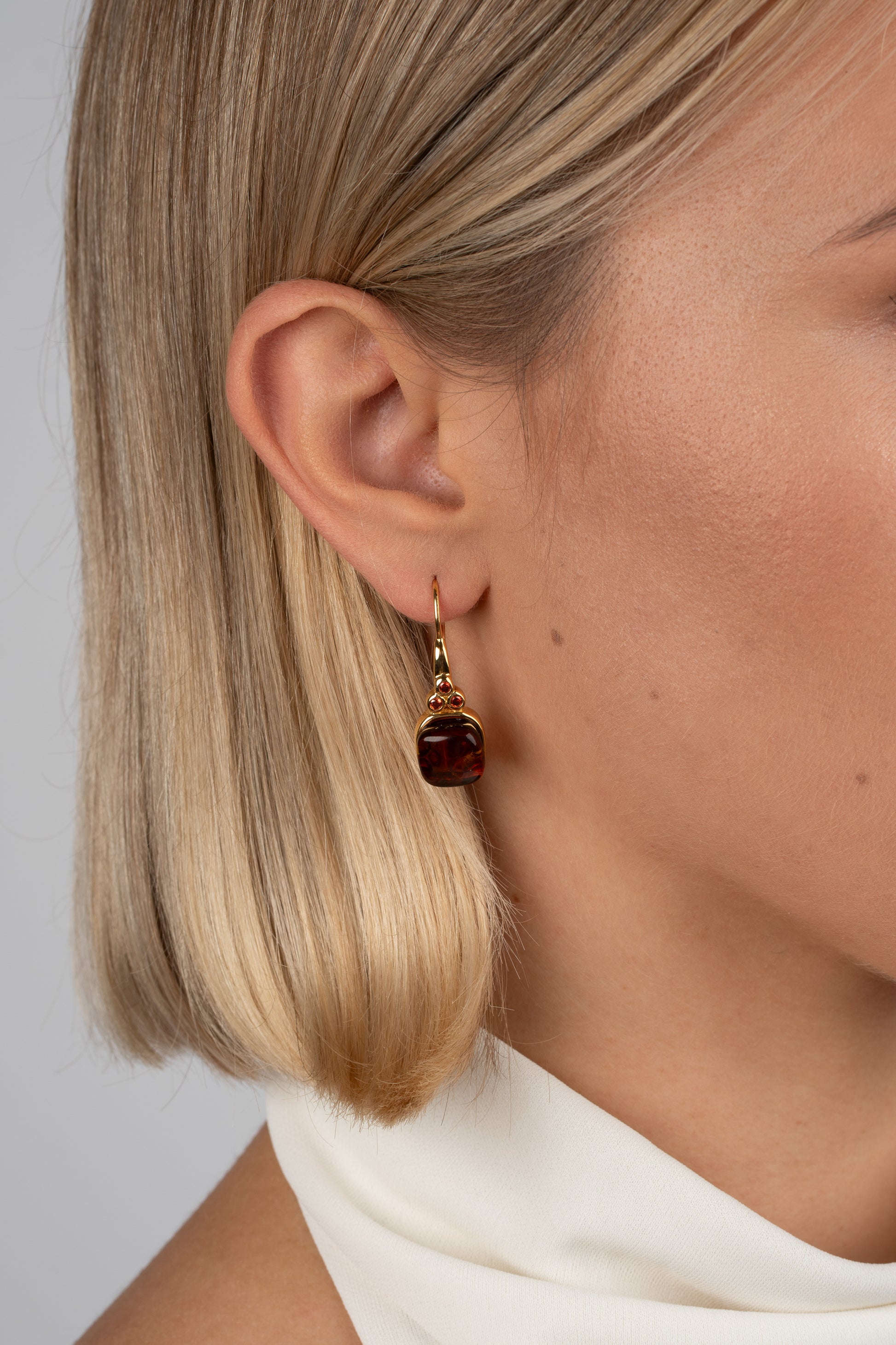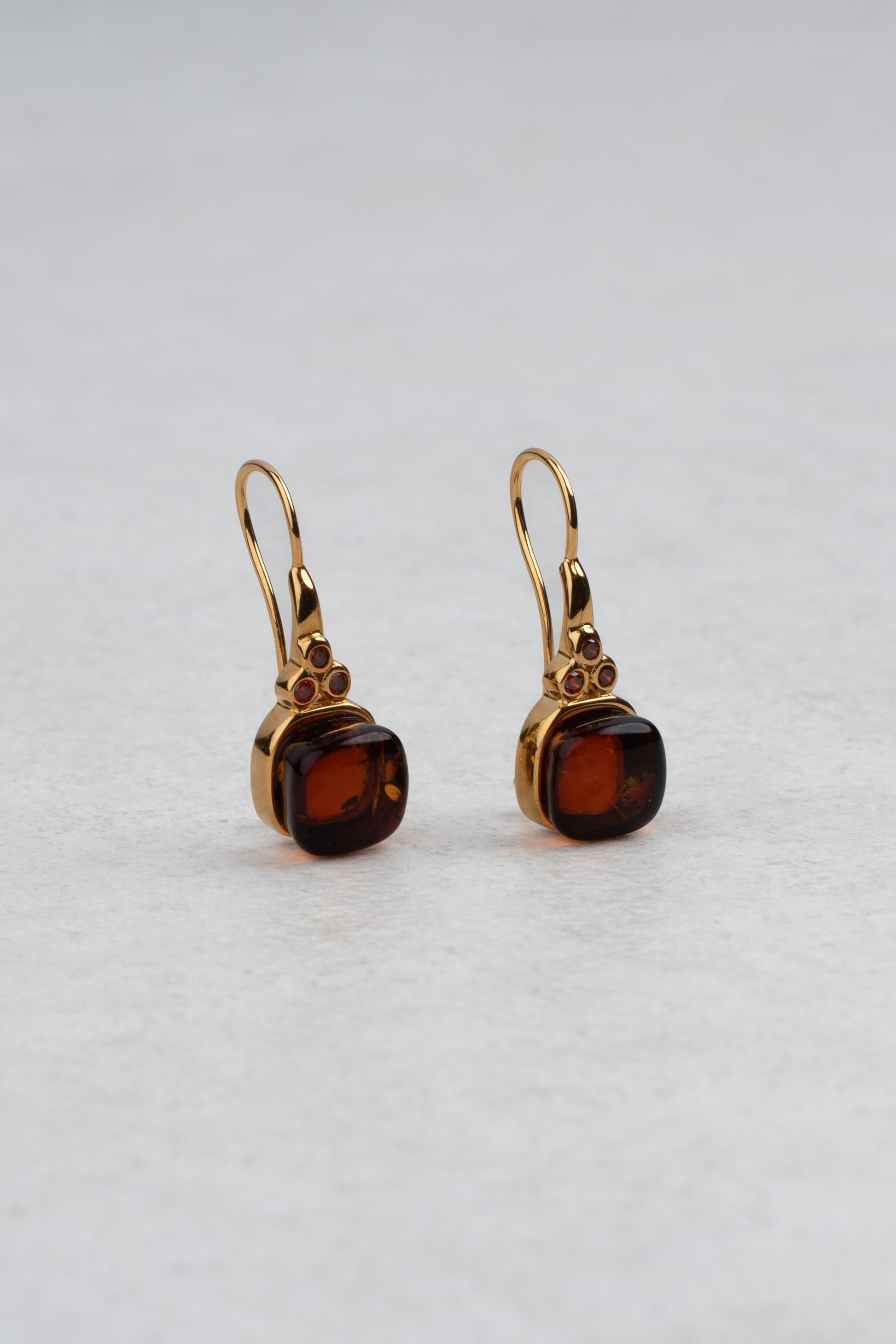 Tamsi gintaro spalva kartu su subtilia geometrine forma primena šviesos ir šešėlio žaismą, suteikdama auskarams išliekamosios elegancijos. Sukurti Baltijos regiono juvelyrų, jie jungia gintaro tradiciją su modernia estetika.