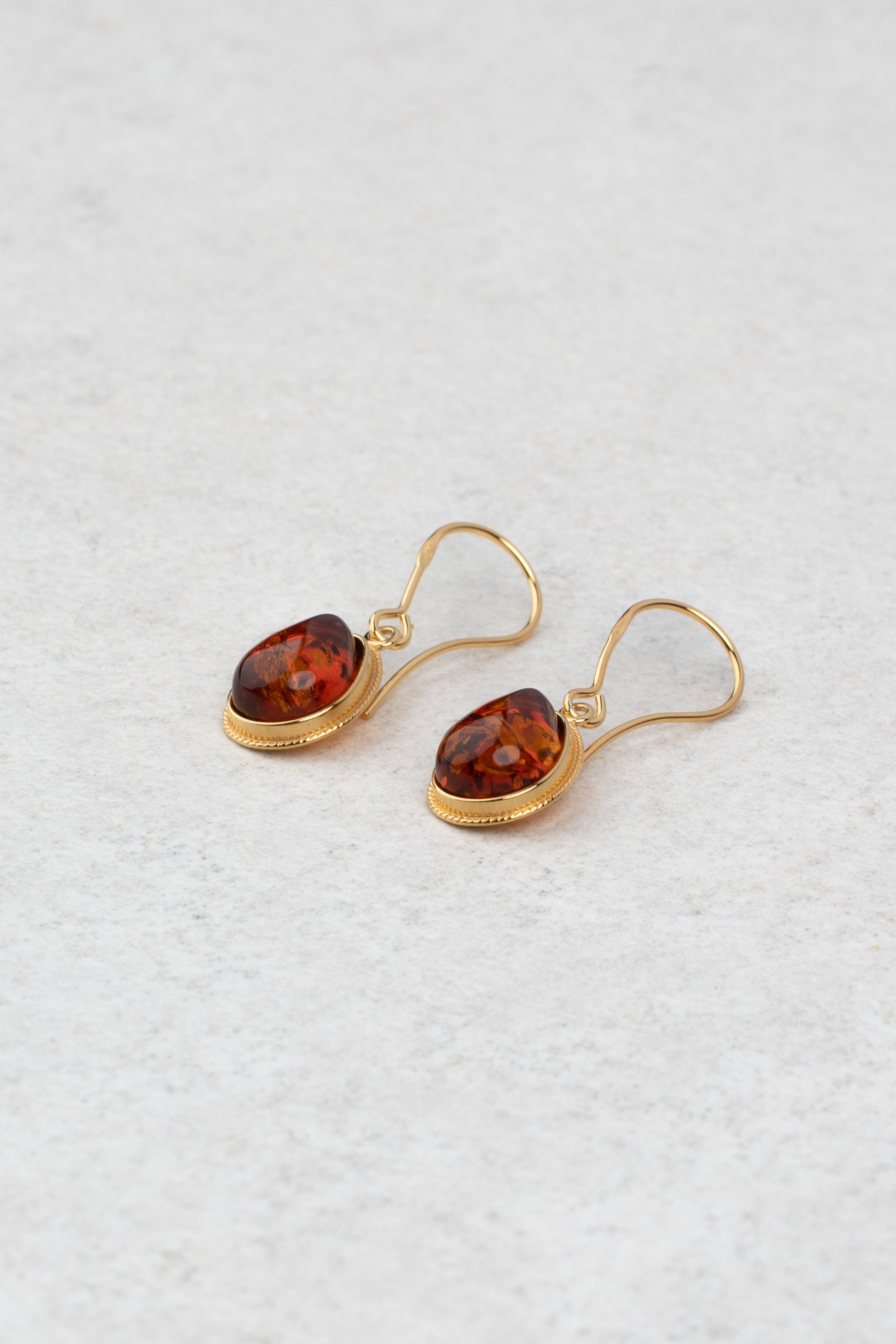 Paauksuoti gintariniai auskarai su medaus spalvos gintaru „Gutta Mundi“