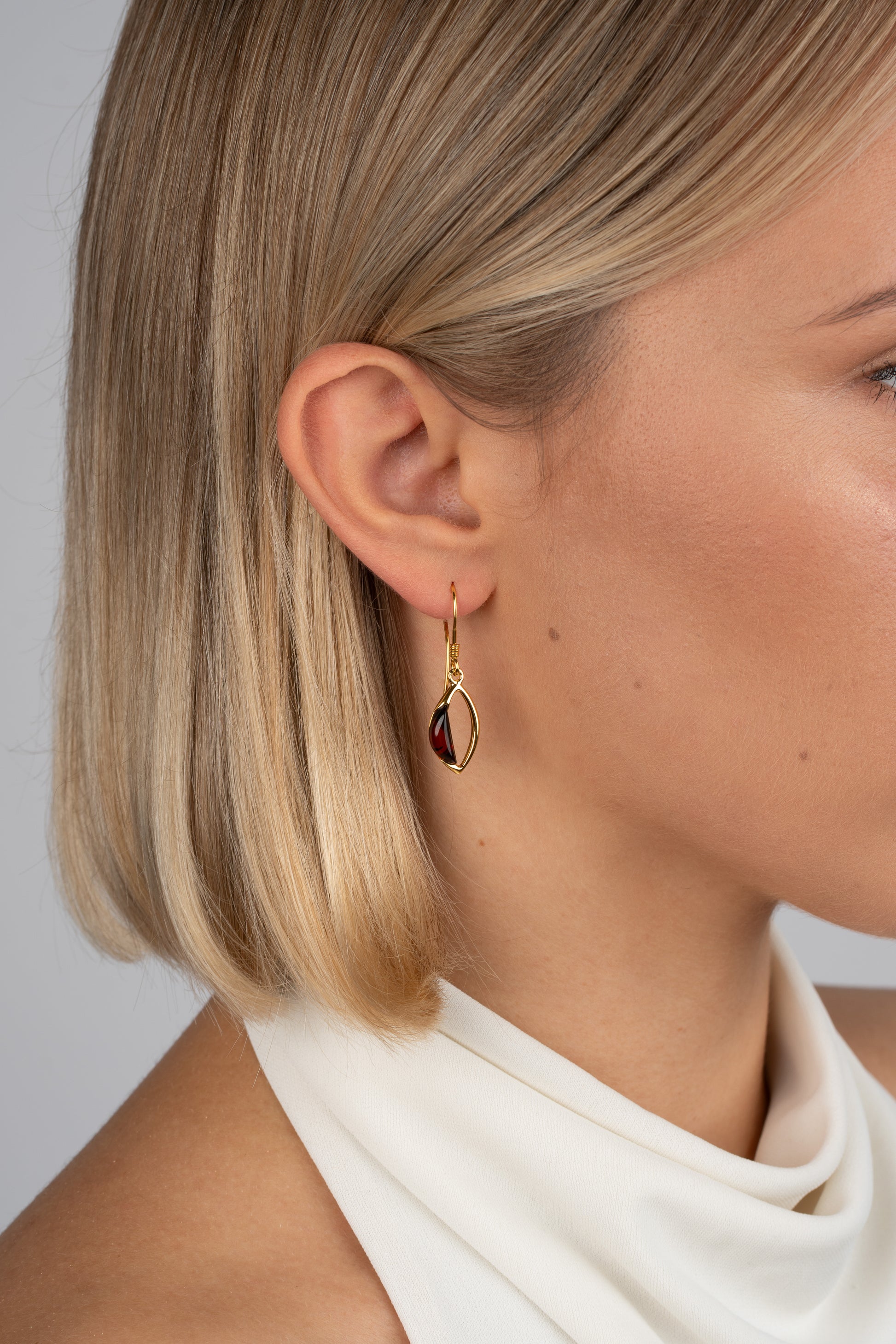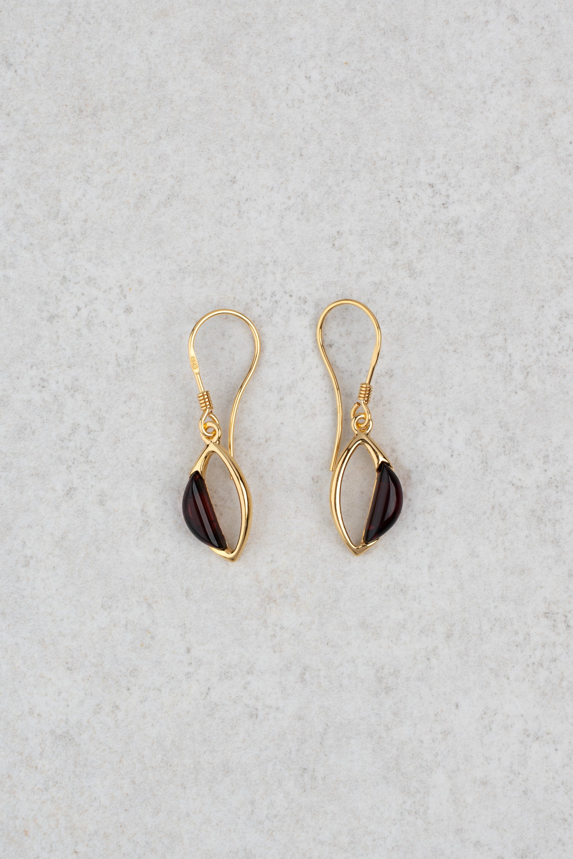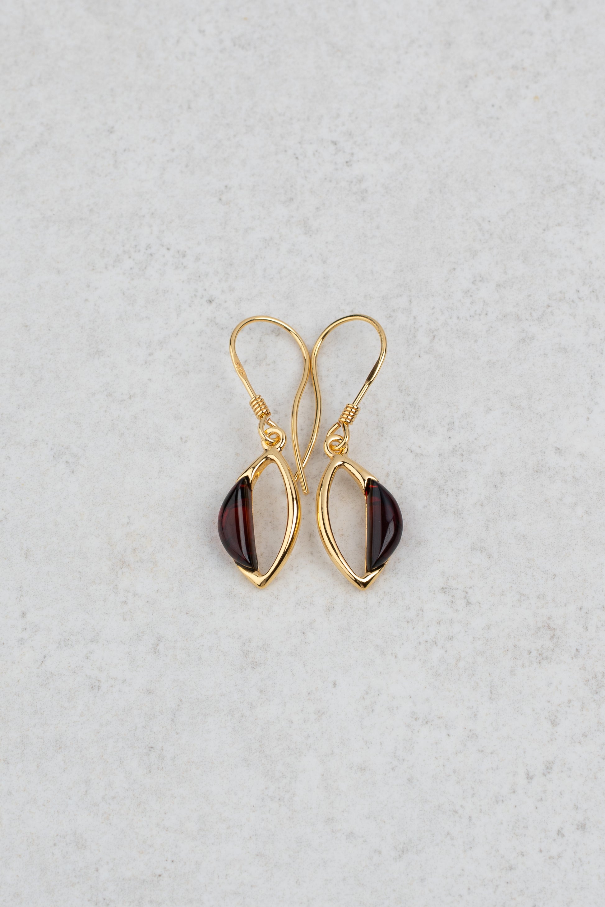Paauksuoti gintariniai auskarai su vyšninės spalvos gintaru "Lacrima Ventus"