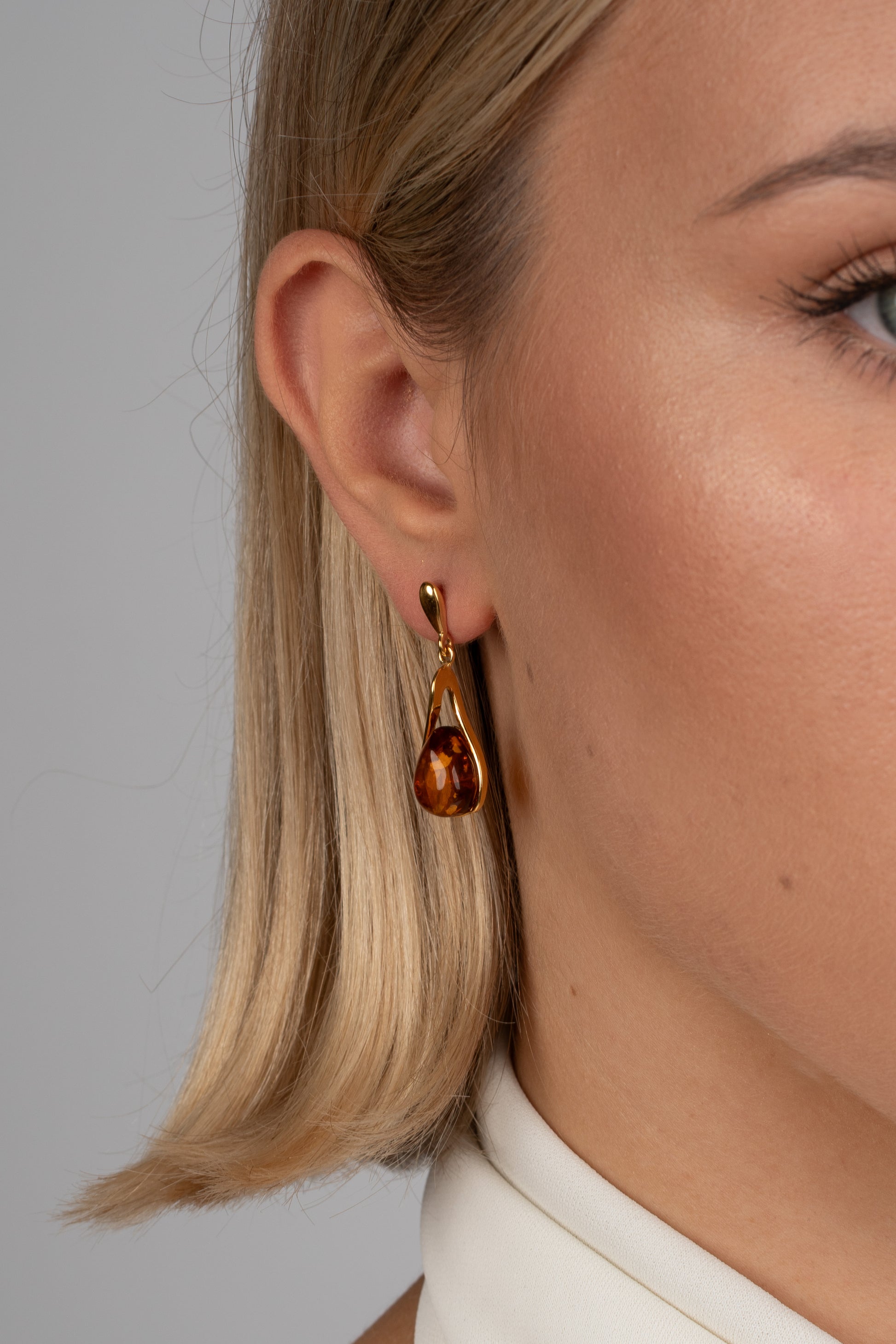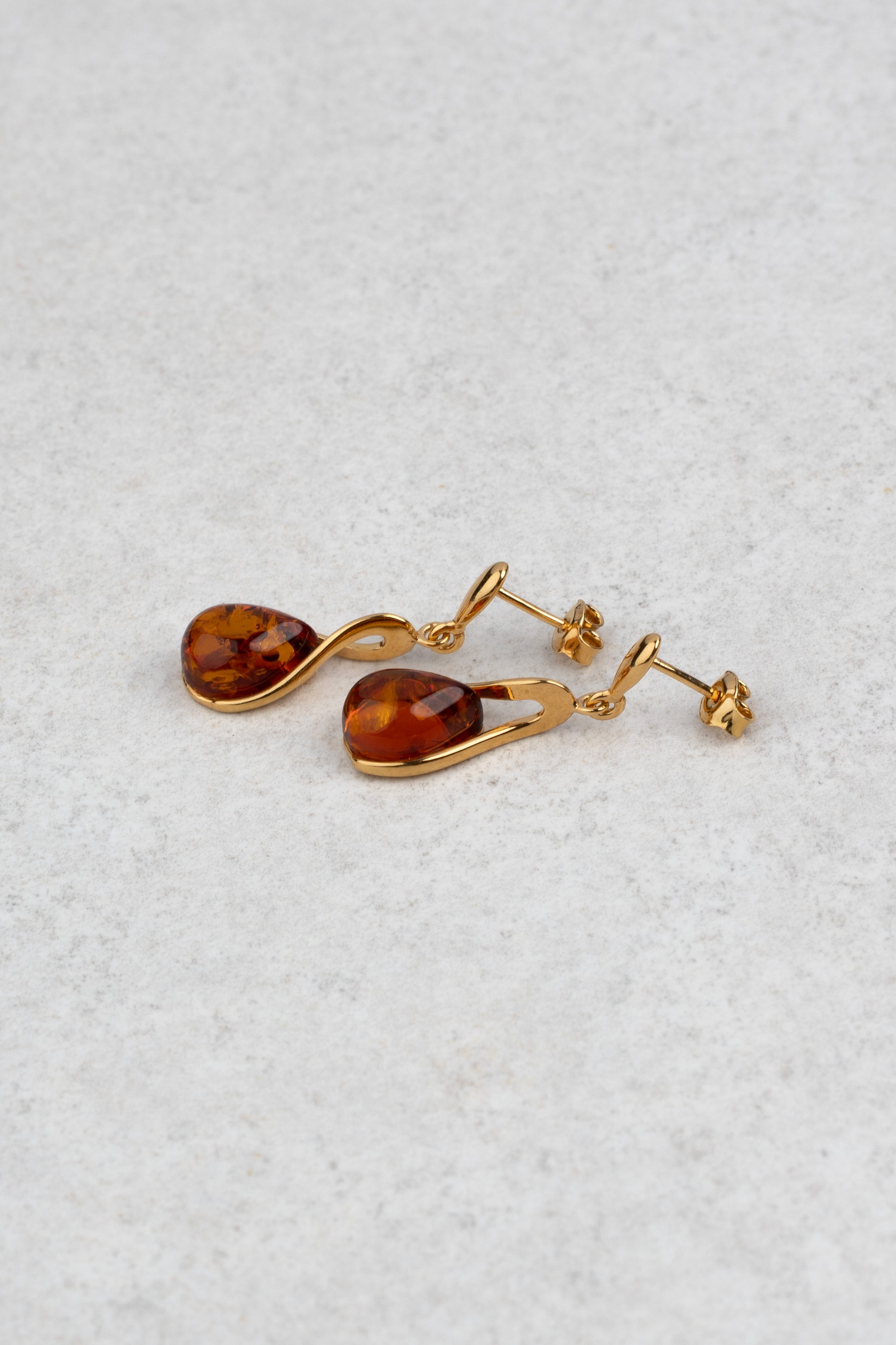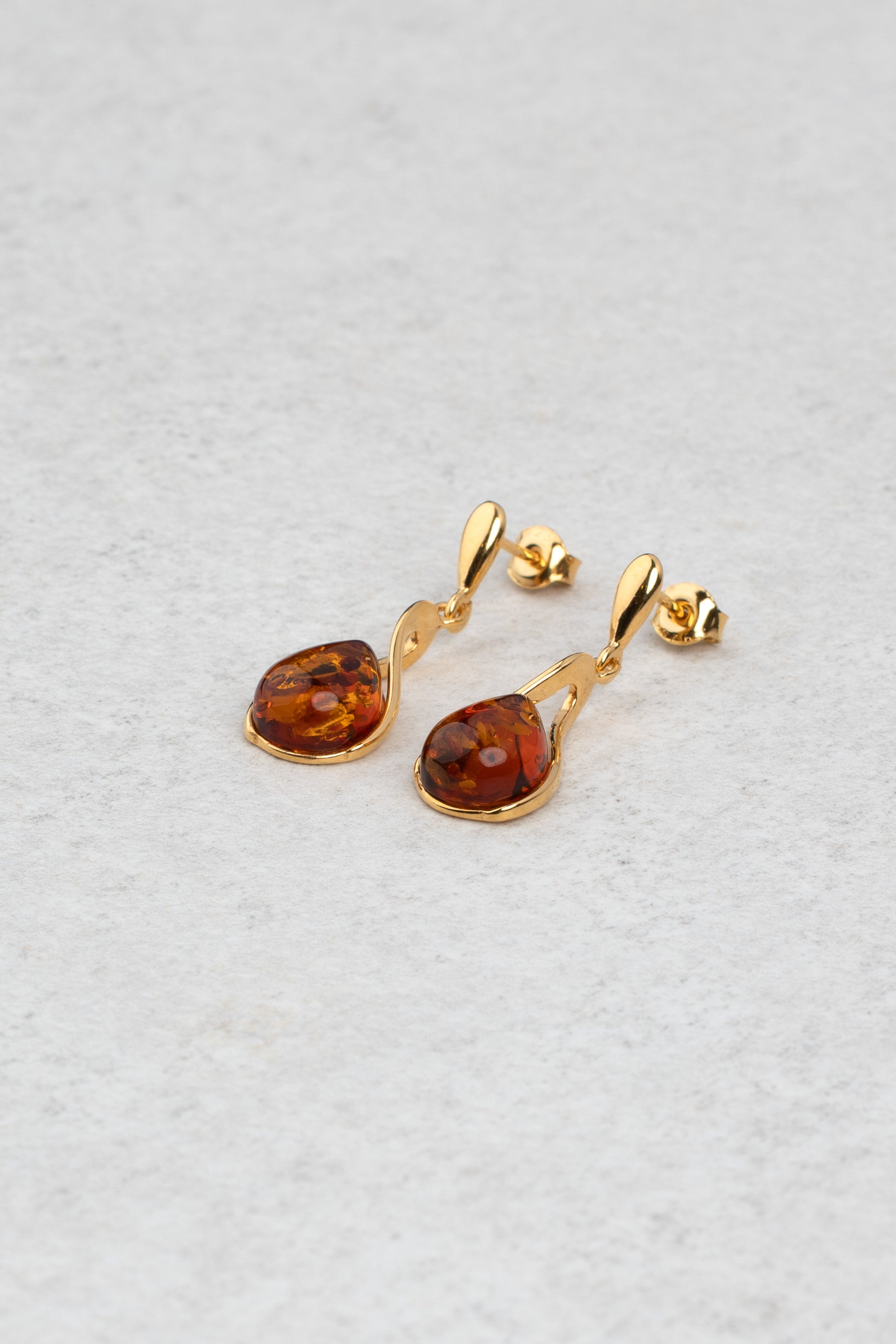 Paauksuoti gintariniai auskarai su medaus spalvos gintaru „Pax Ignita“