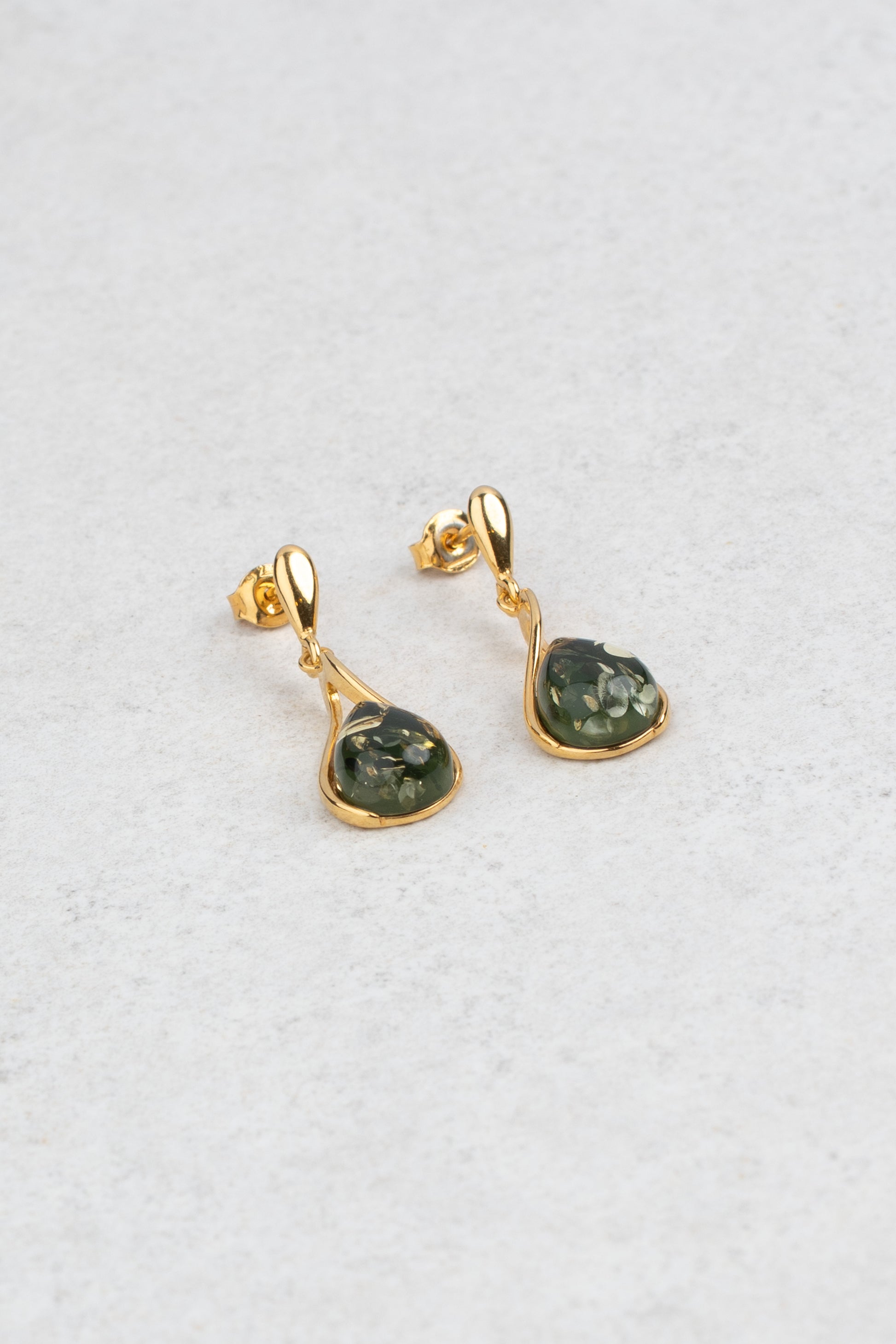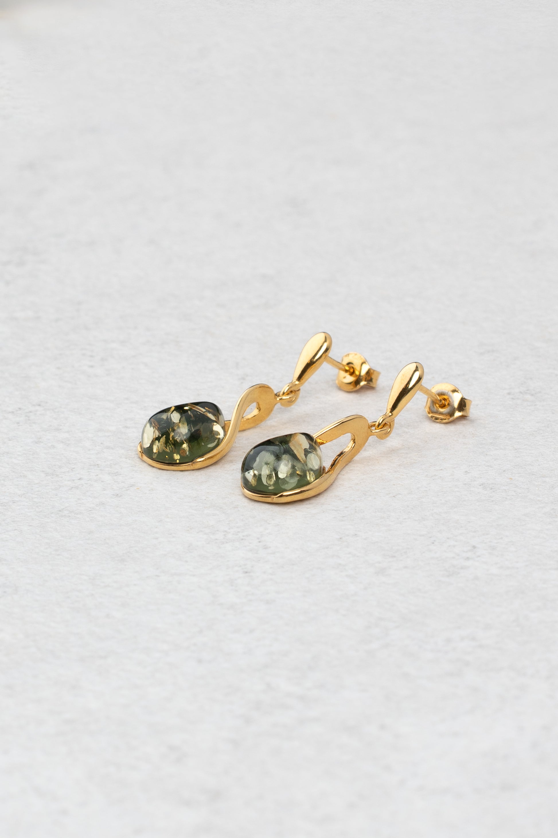 Paauksuoti gintariniai auskarai su žaliuoju Baltijos gintaru „Folium Viride“