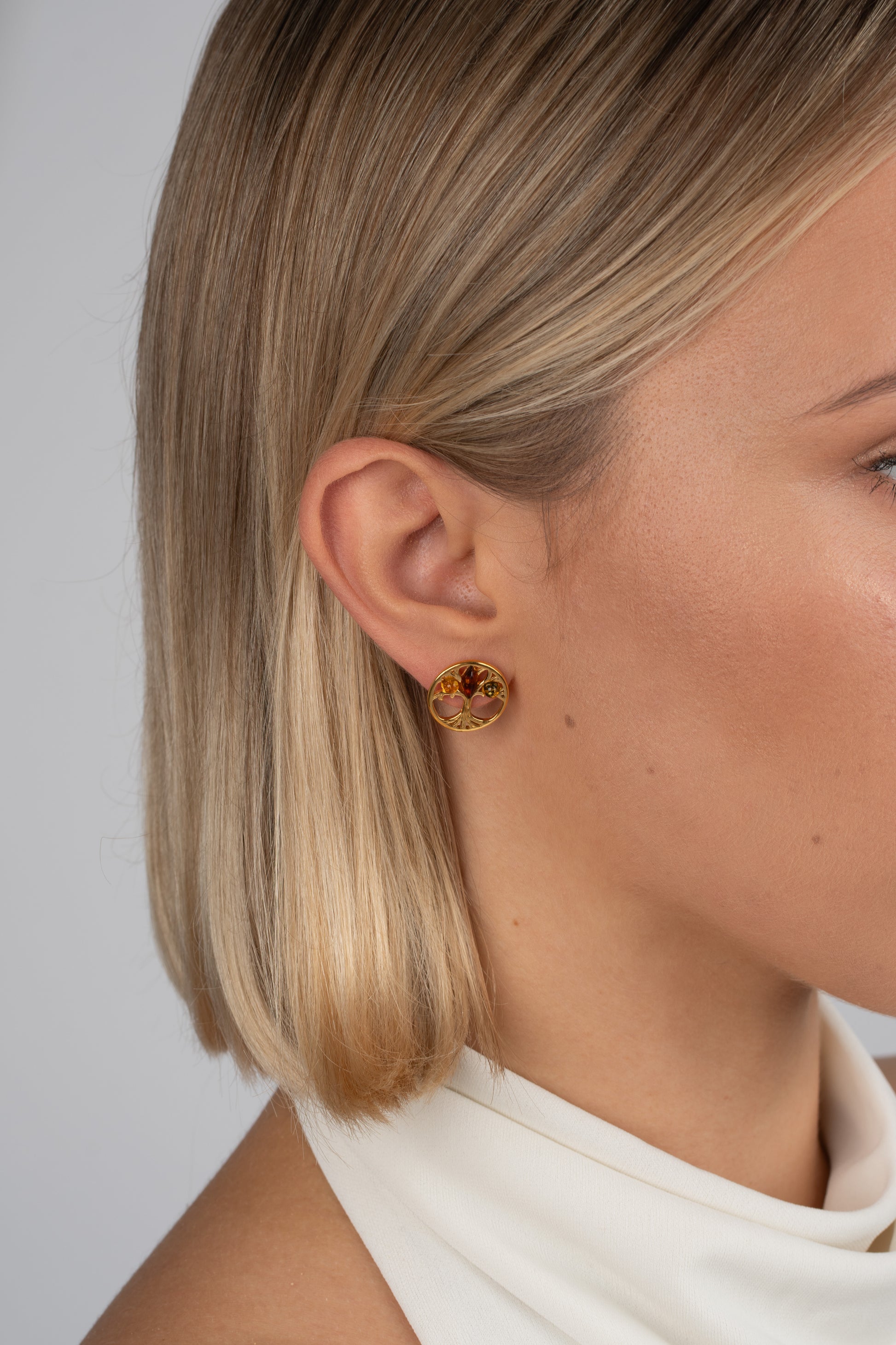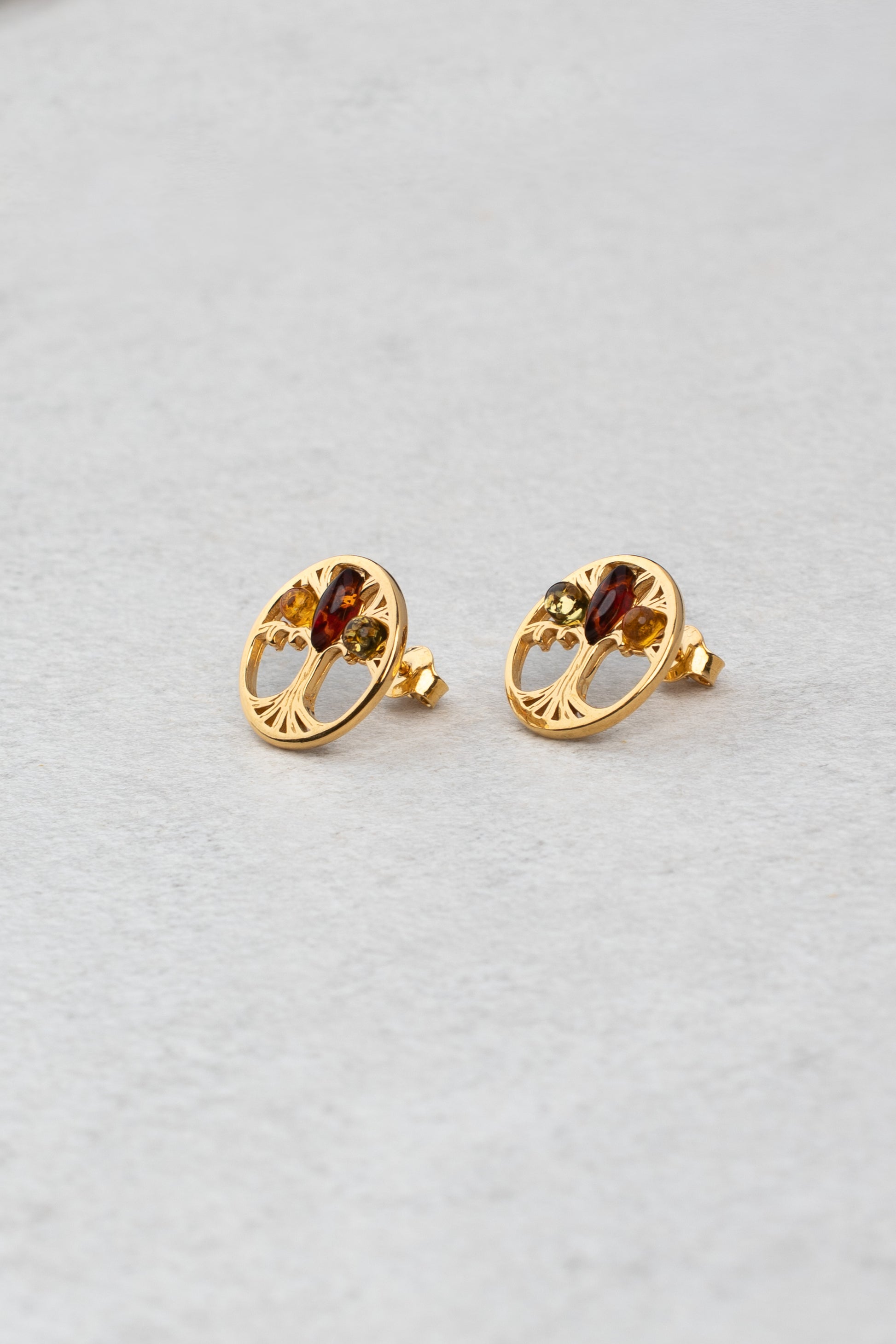 Paauksuoti gintariniai auskarai su įvairiaspalviu Baltijos gintaru „Vita Lucida“