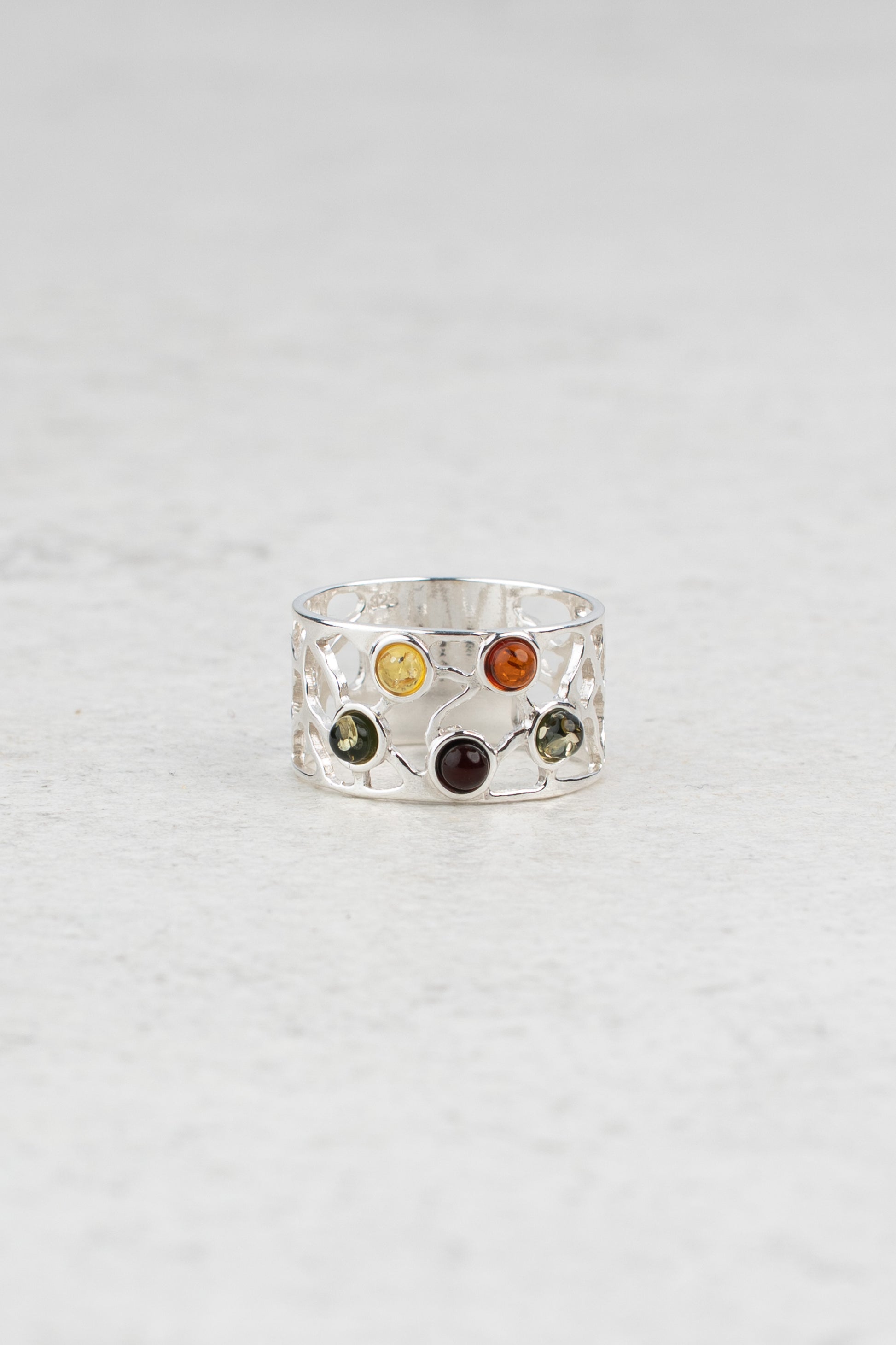 Sidabrinis gintarinis žiedas su įvairiaspalviu gintaru „Regia Vita Argentum“