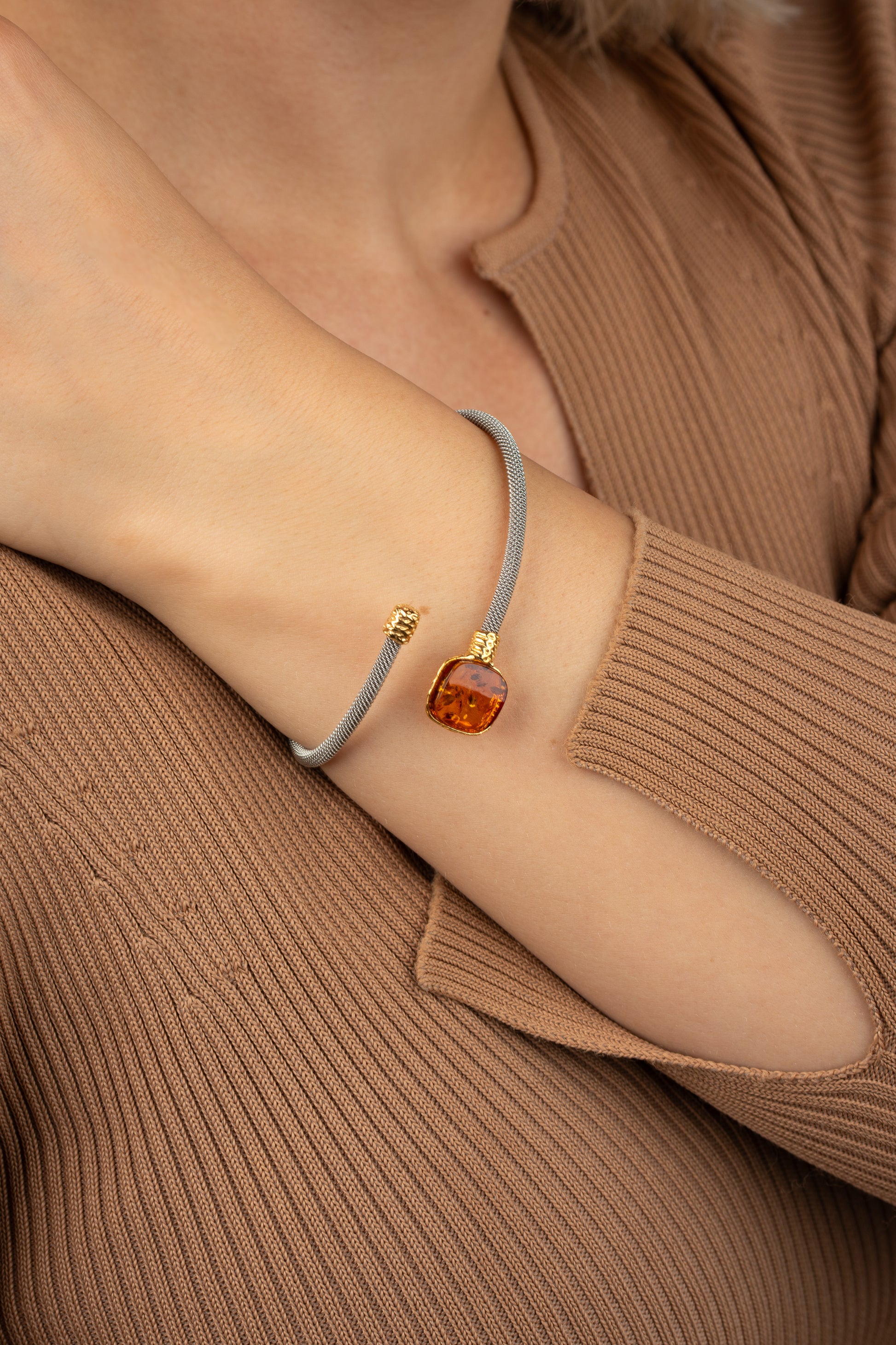 Sidabro Apyrankė su Medaus Spalvos Gintaru „Serenum Ignis“